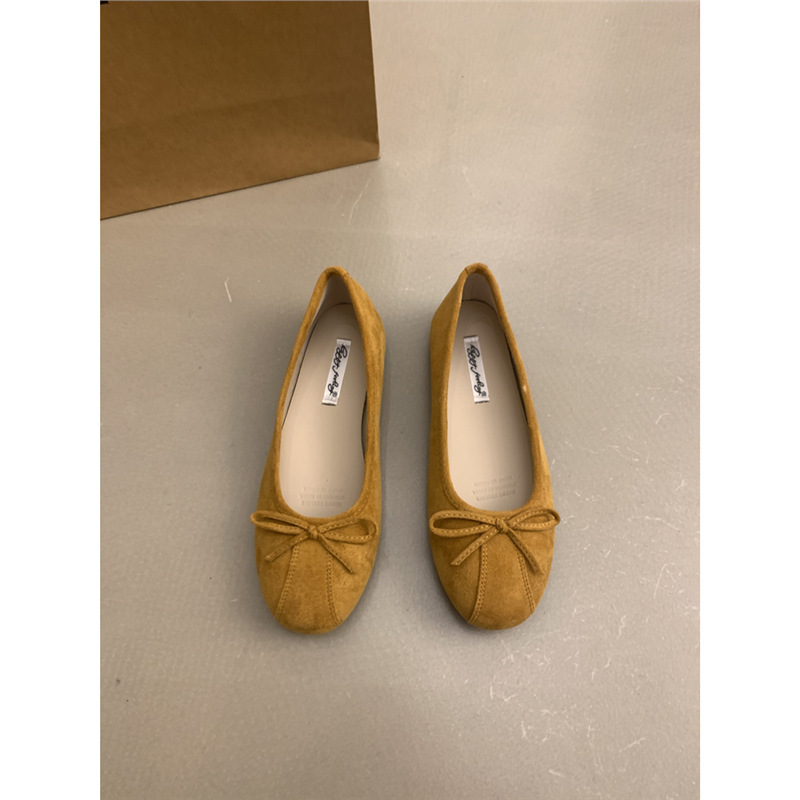 양가죽 버전! 2025 봄 프렌치 블루 스웨이드 아름다운 작은 신발 기질 플랫 발레 이브닝 슈즈 여성용스토어 가기