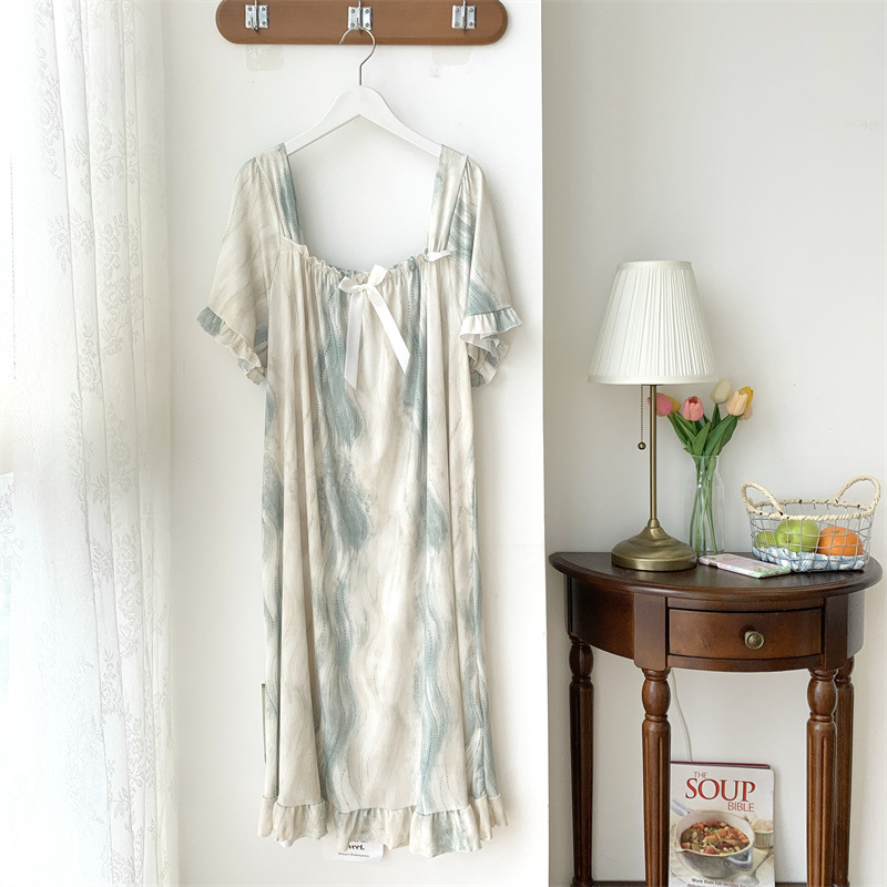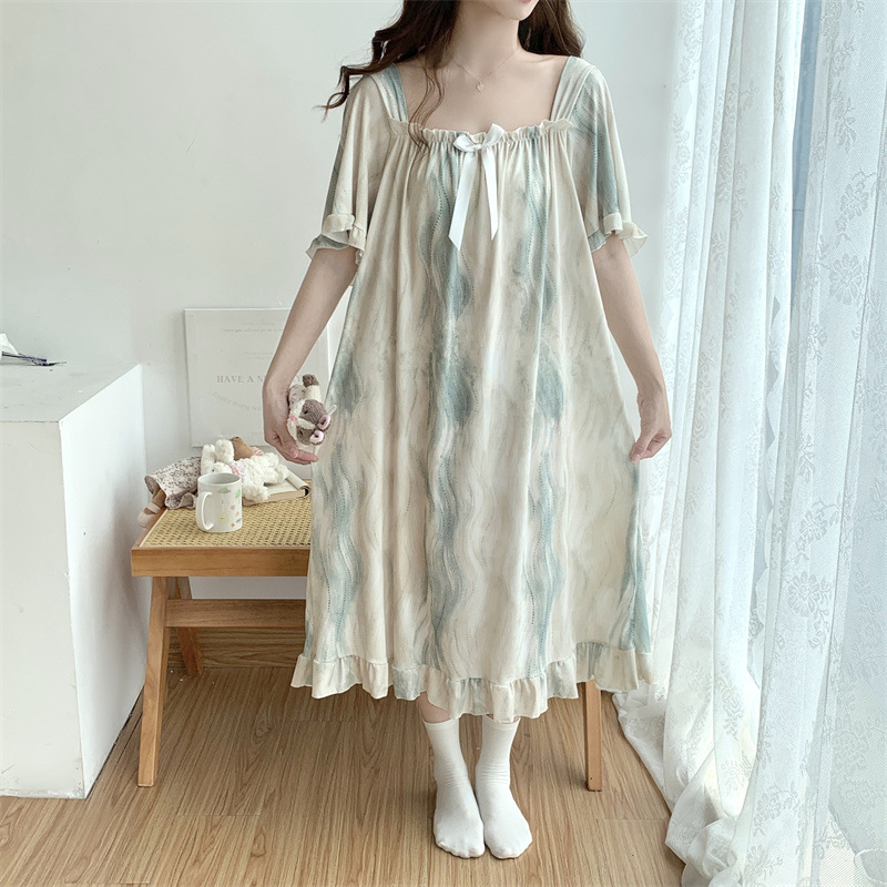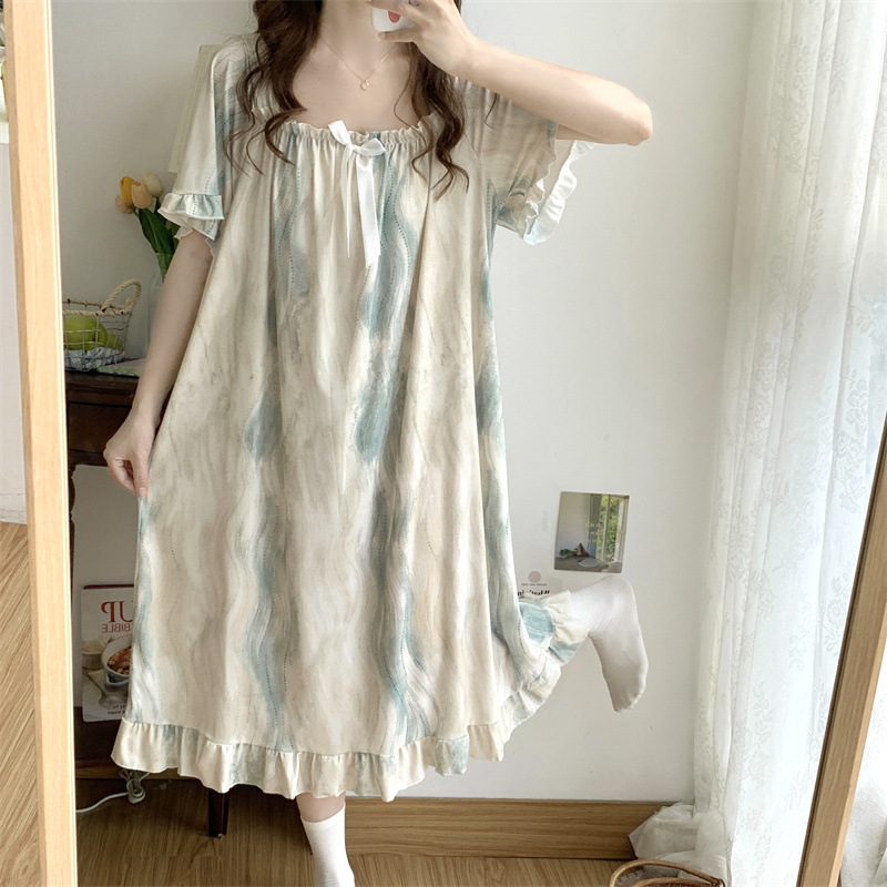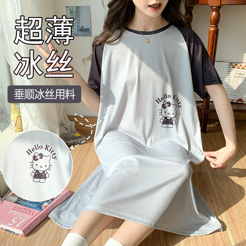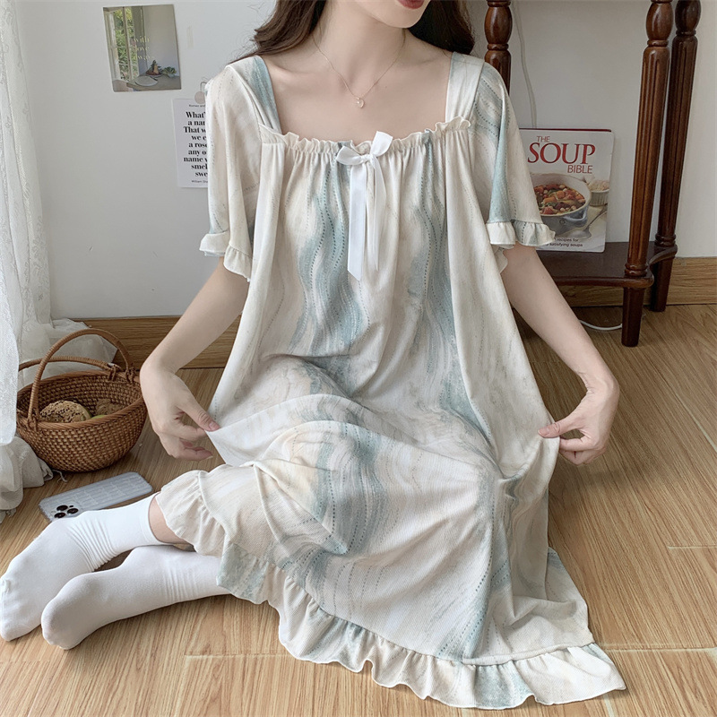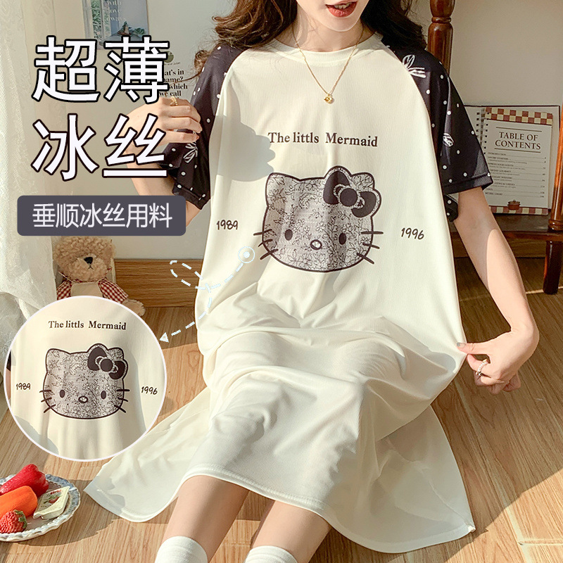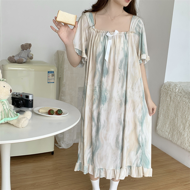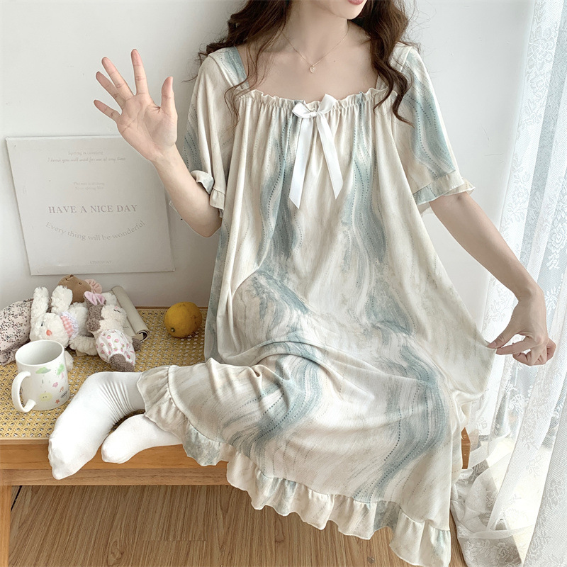 반팔 아이스 실크 잠옷 여름 150.00kg 플러스 사이즈 느슨한 얇은 통통녀 공주 잠옷 달콤한 무릎 원피스스토어 가기