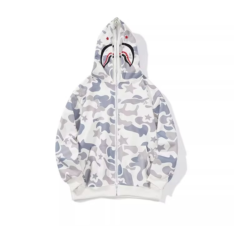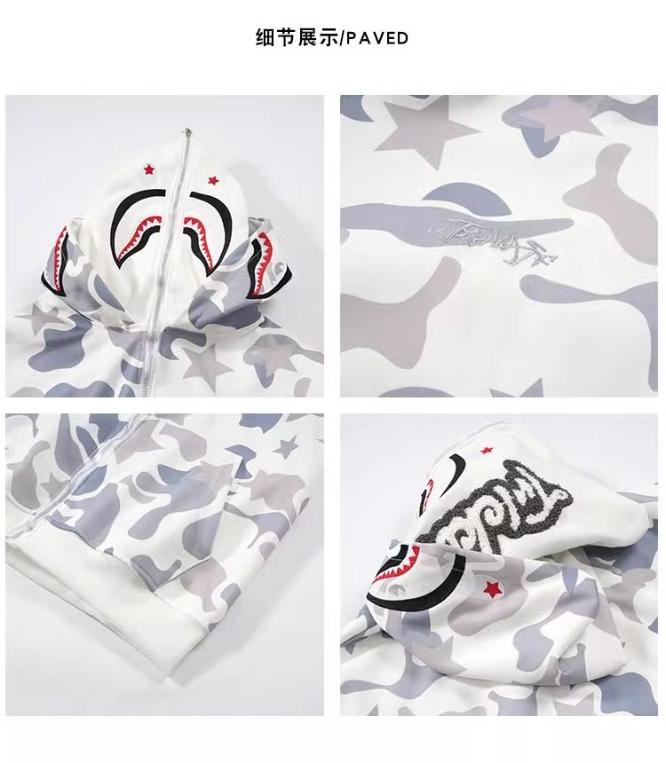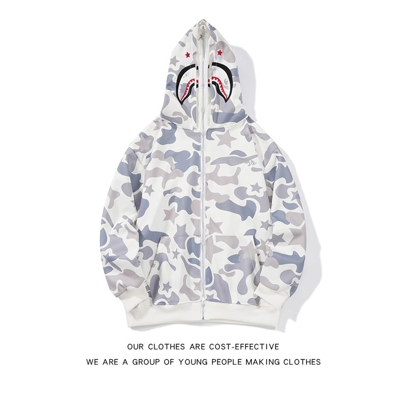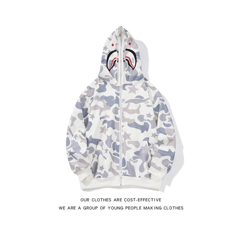 남성용 샤크 더블 레이어 후드 티셔츠 봄, 가을 미국 힙합 하이 스트리트 트렌디 헤비급 2025 새로운 위장 재킷스토어 가기
