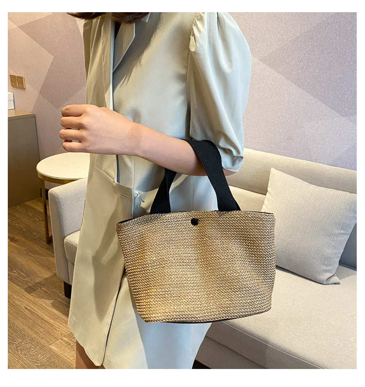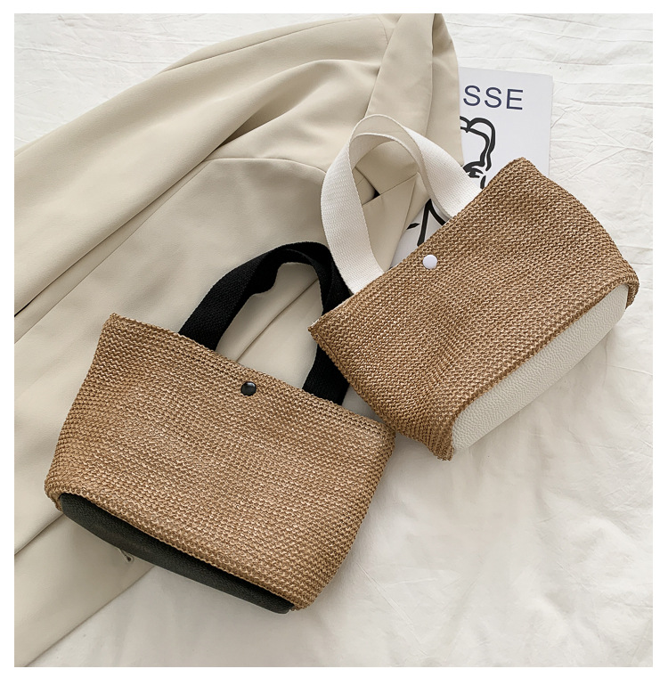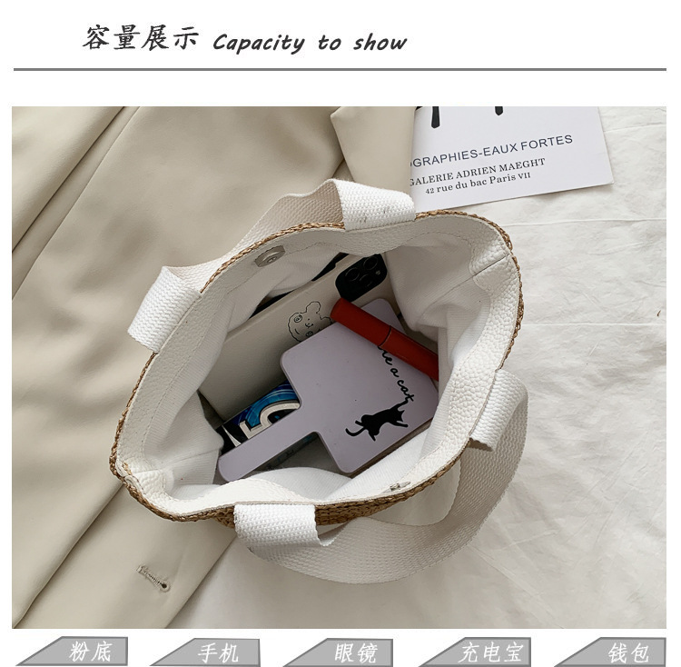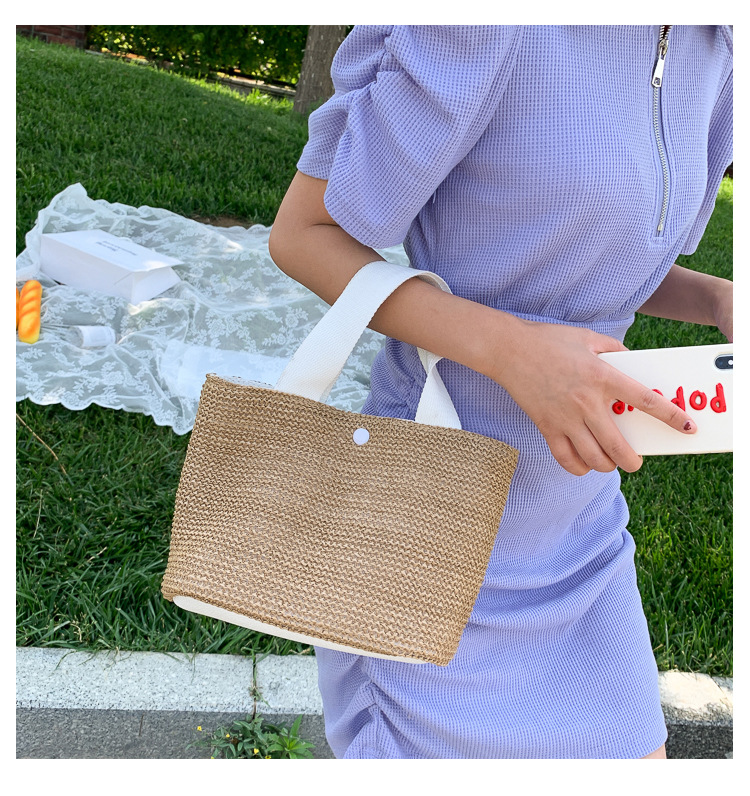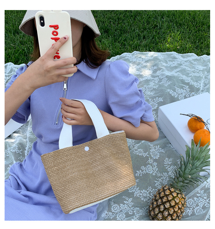 해변 휴가 가방 2025 여름 새로운 유행 목가적 스타일 짠 여성 가방 해변 캐주얼 소녀의 음식 바구니 휴대용스토어 가기