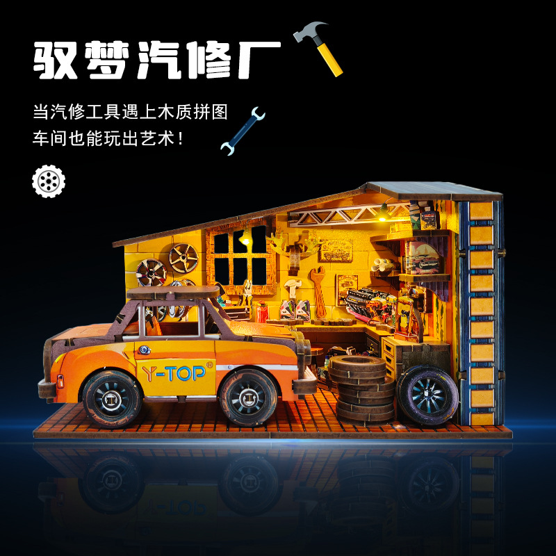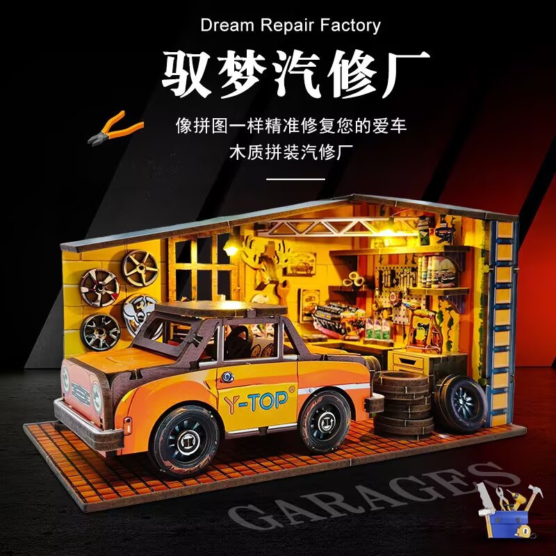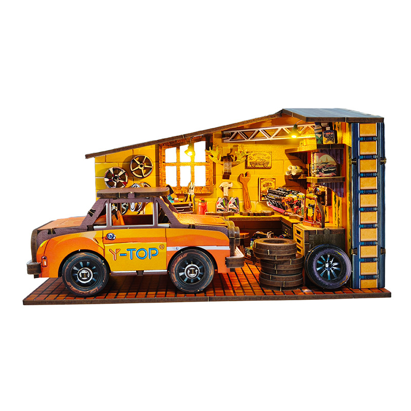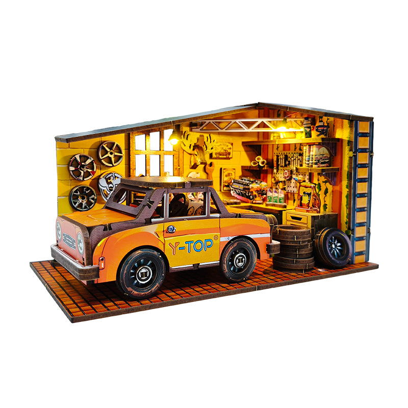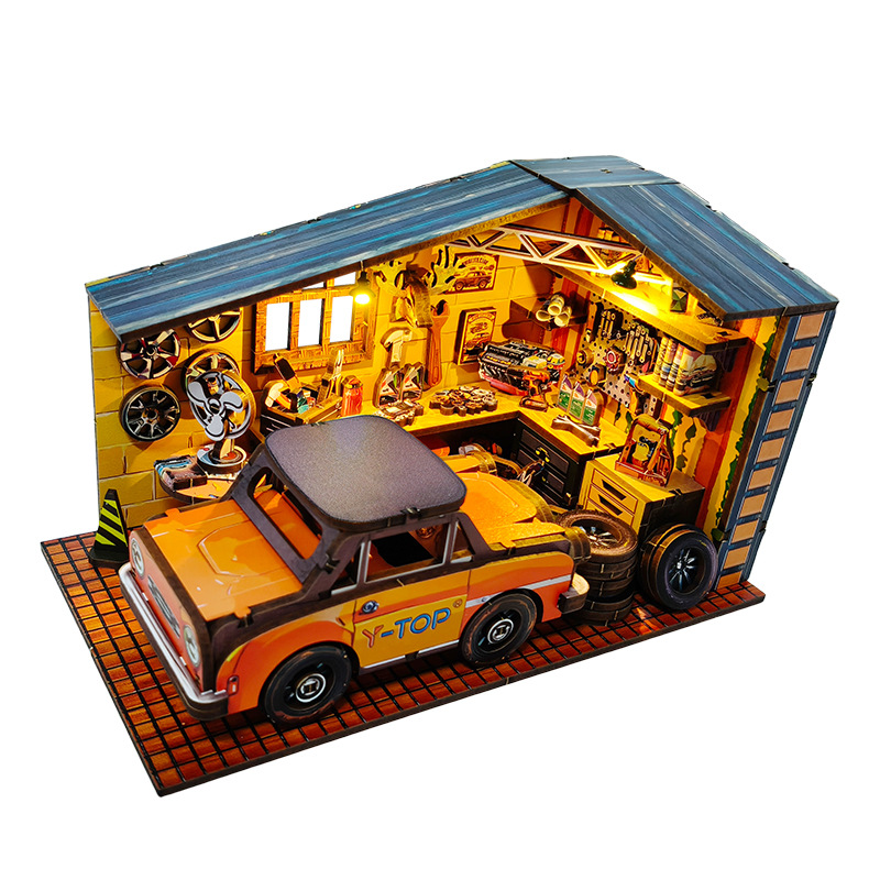 자동차 차고 접합 3 차원 건물 블록 장식품 수제 DIY 오두막 모델 책 스탠드 선물 소년 장면스토어 가기