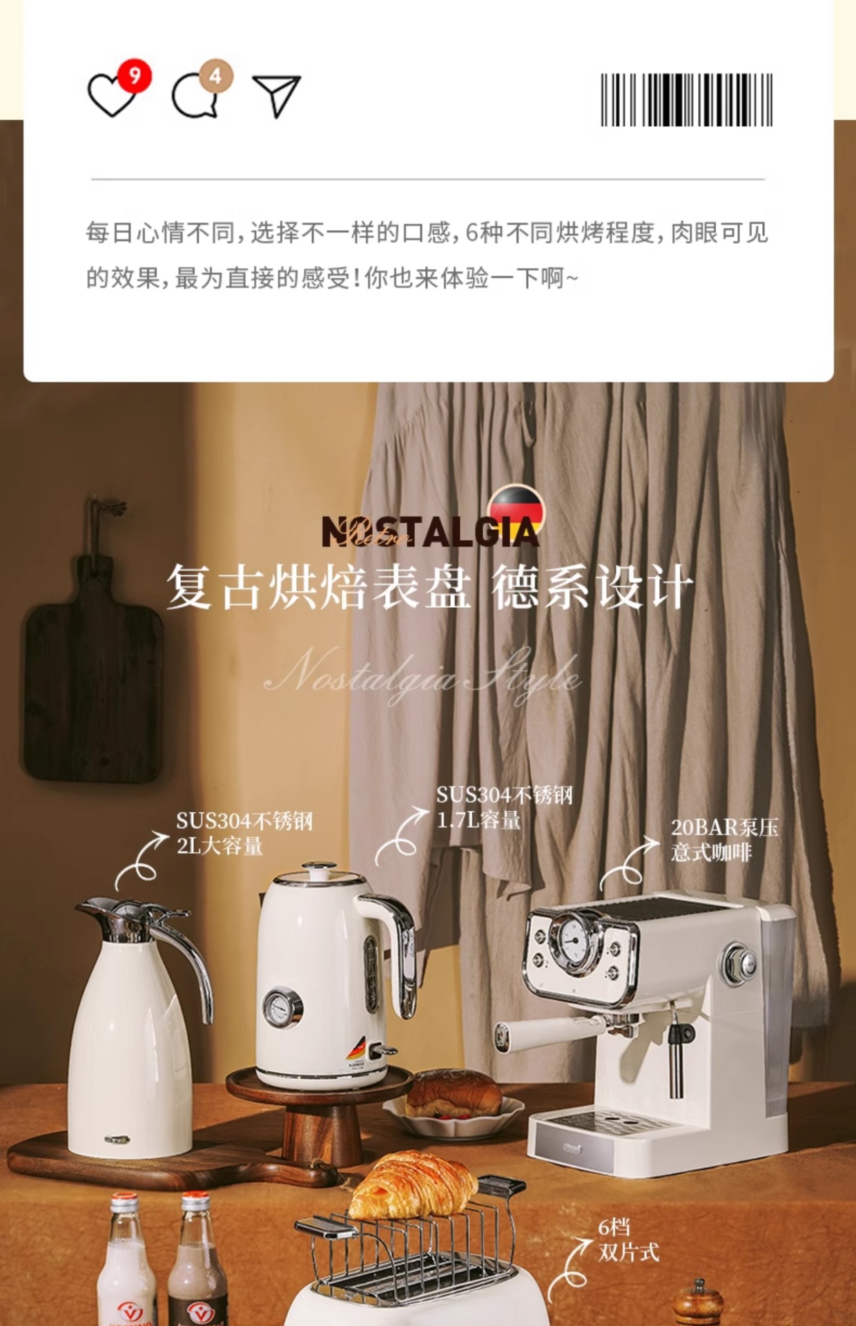 • 피아노 화이트 [고급 토스터 + 주전자 + 보온병 + 커피 머신] + 무료 샌드위치