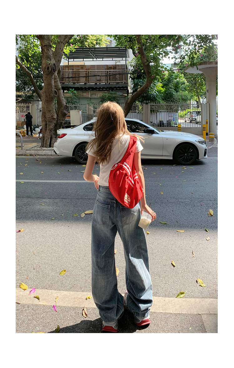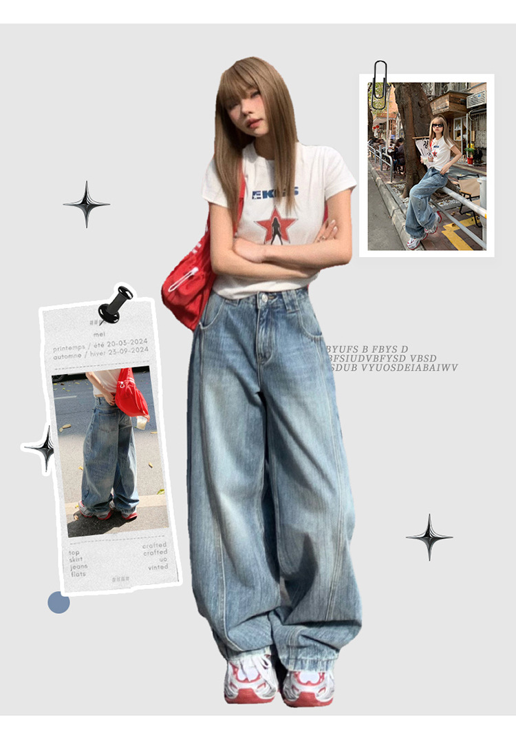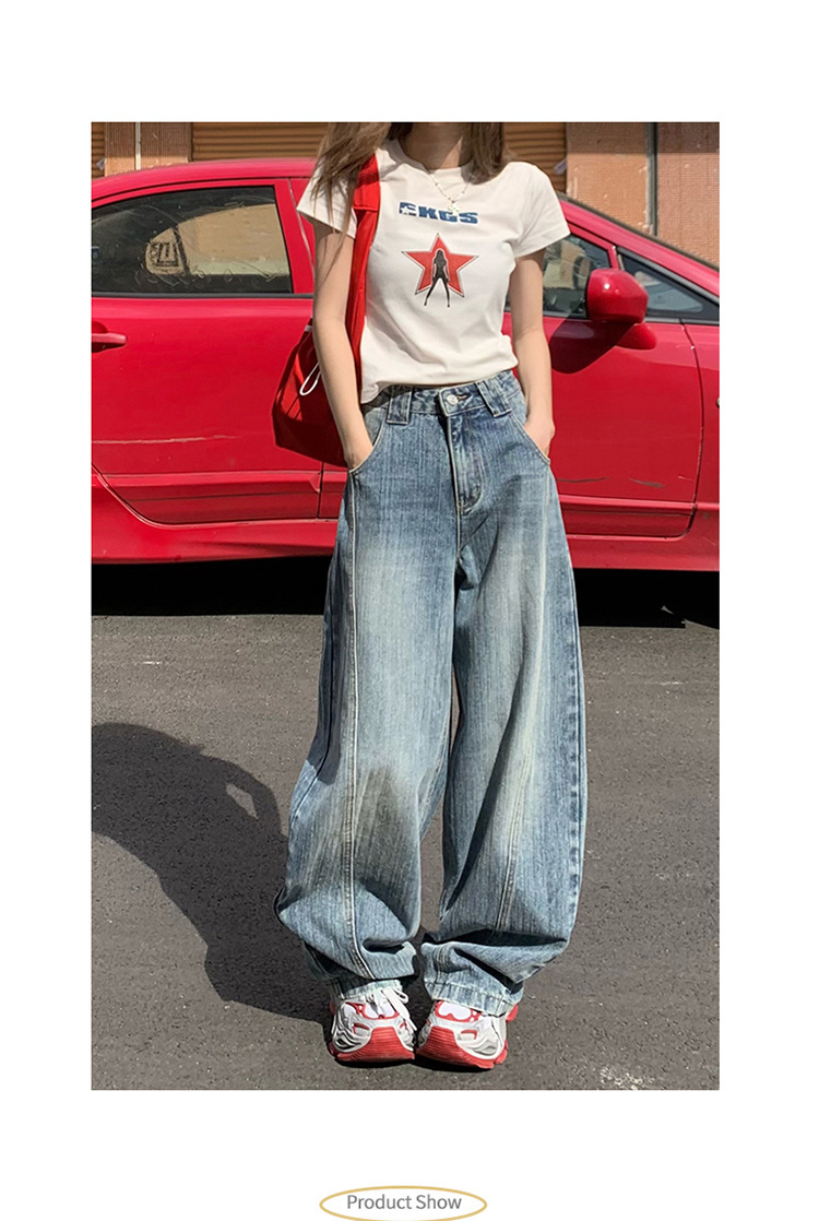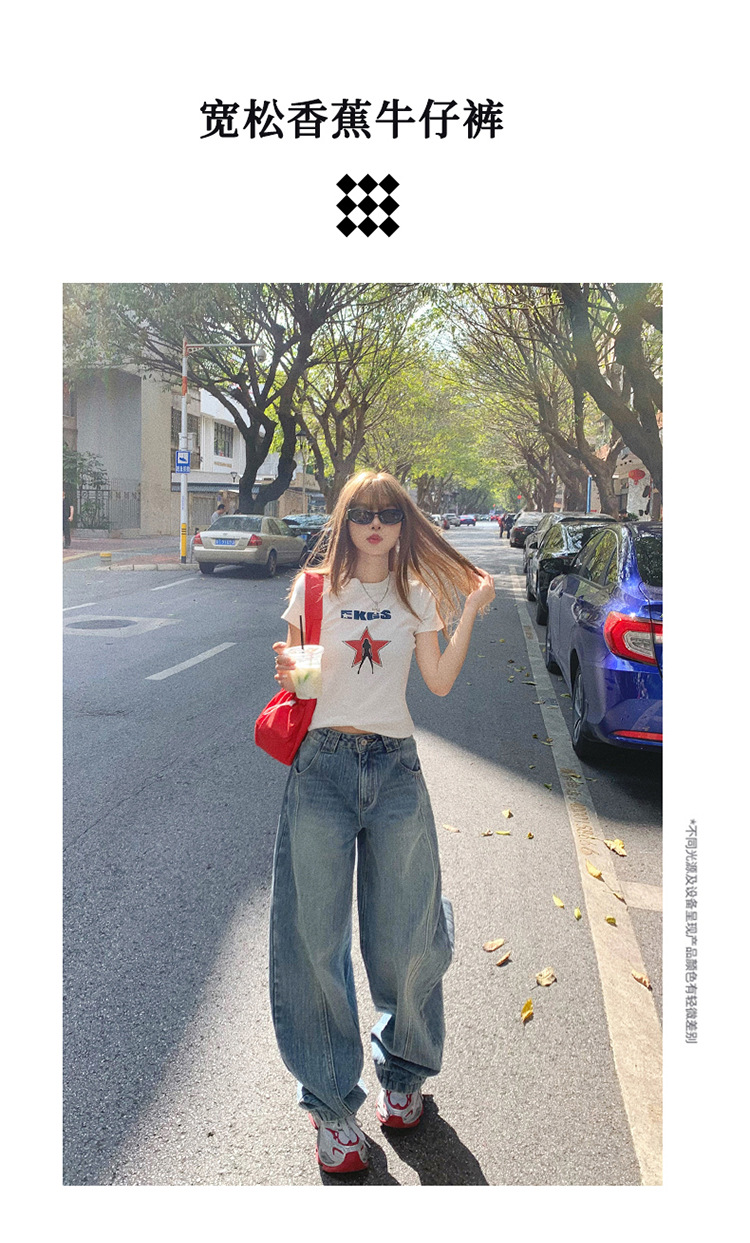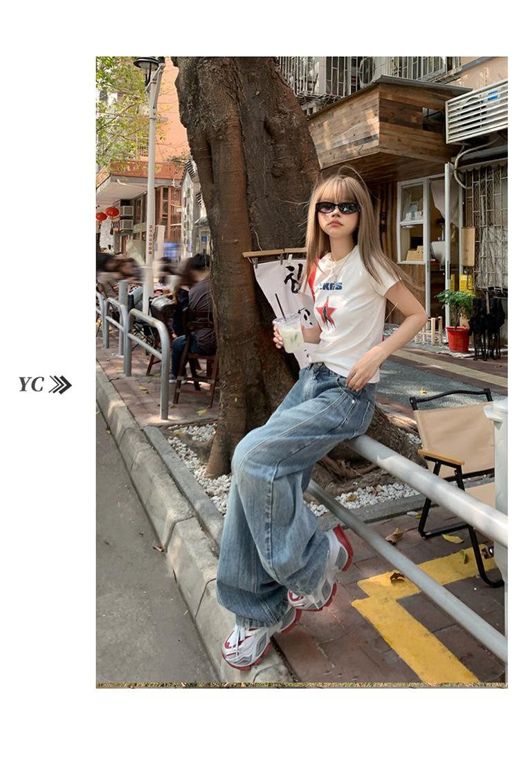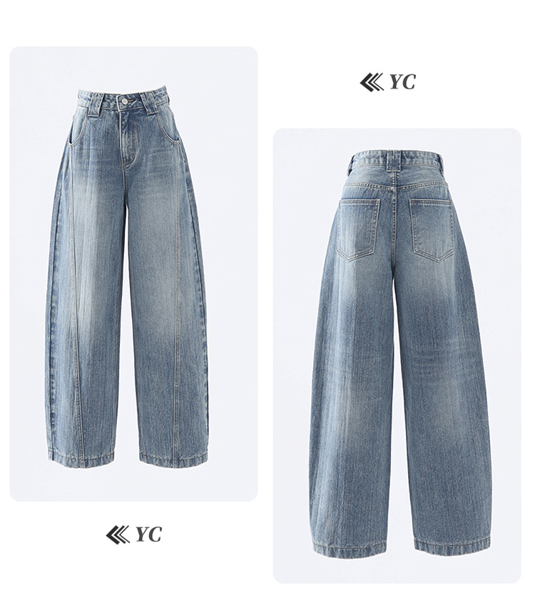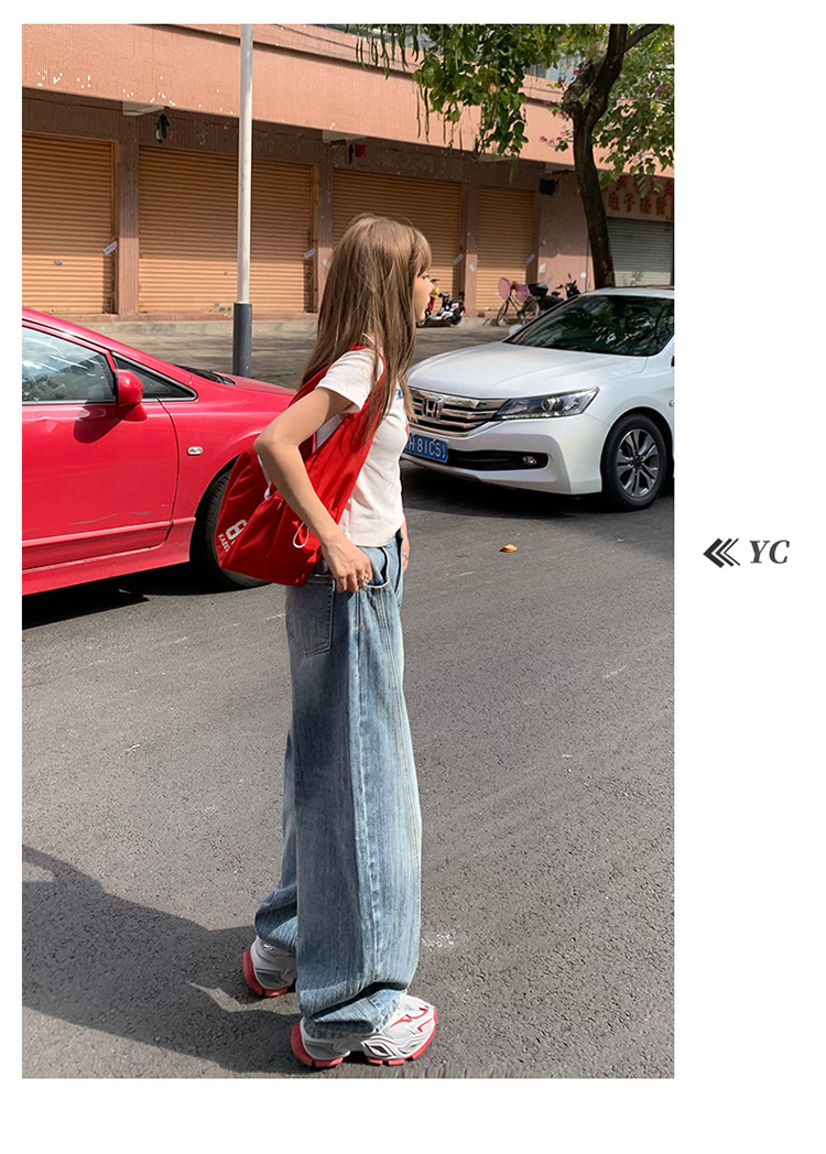 YC & 미국 레트로 높은 허리 느슨한 바나나 바지 조커 넓은 다리 바지 봄과 여름 하이 스트리트 낫 바지 청바지 여성스토어 가기