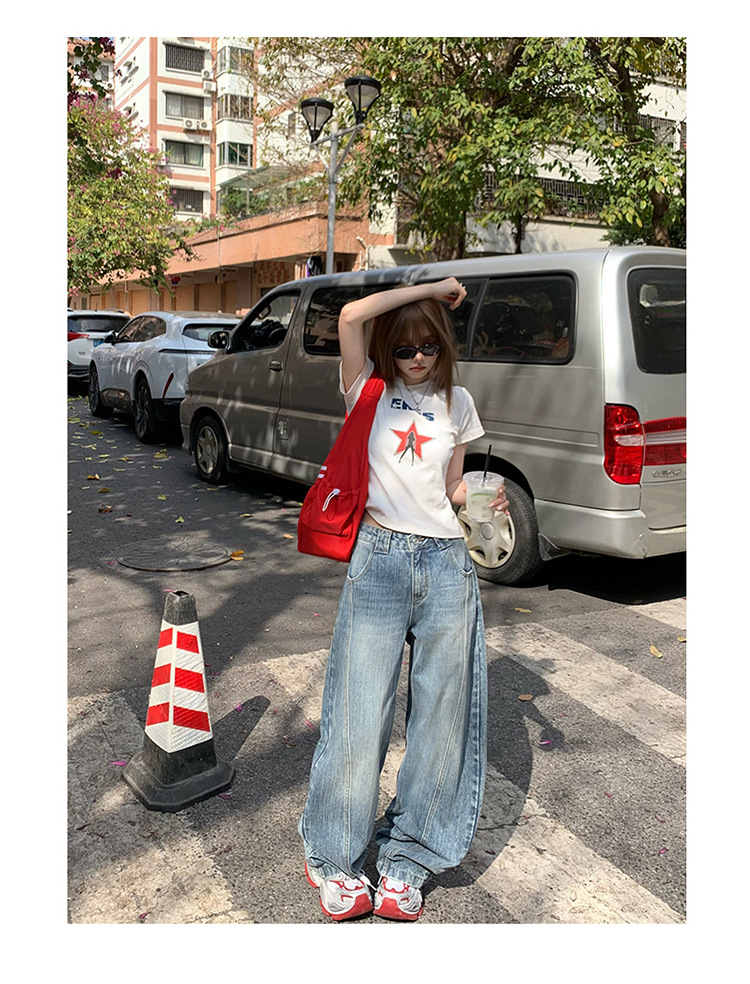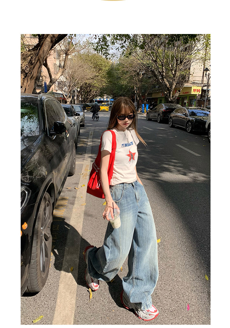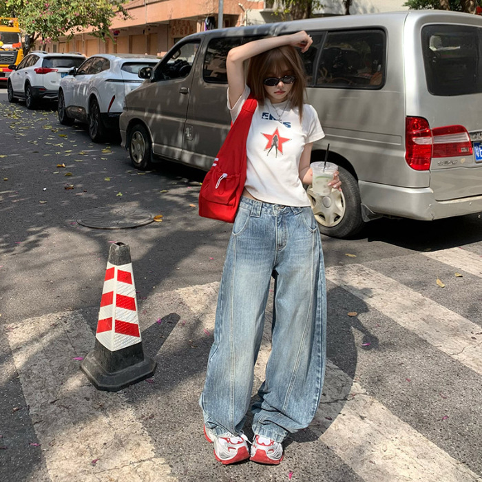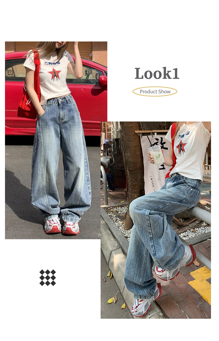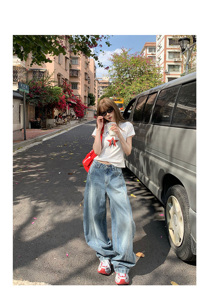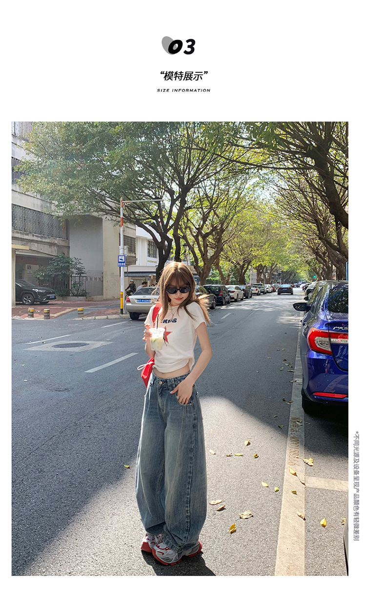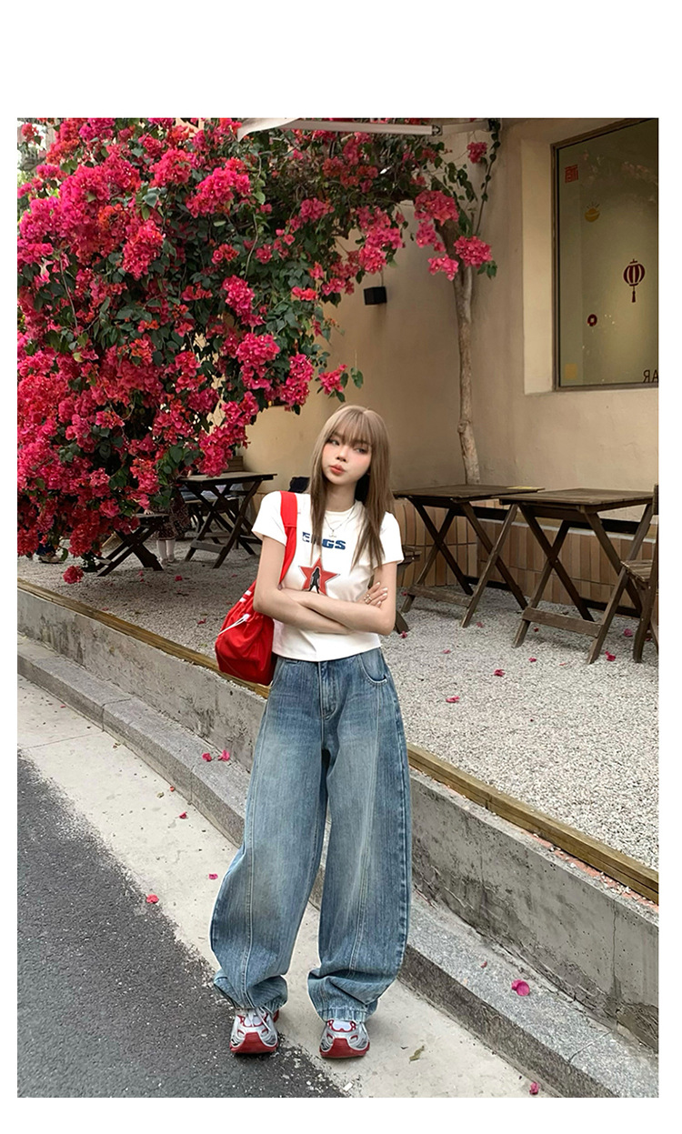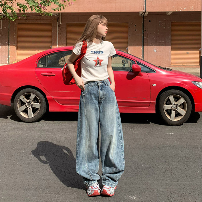 YC & 미국 레트로 높은 허리 느슨한 바나나 바지 조커 넓은 다리 바지 봄과 여름 하이 스트리트 낫 바지 청바지 여성스토어 가기