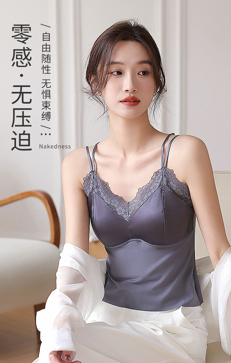 새로운 프랑스 단조 표면 슬링 레이스 아름다운 백 조끼 여성의 작은 가슴 푸시 업 스틸 링 여성용 통기성 내부 조끼