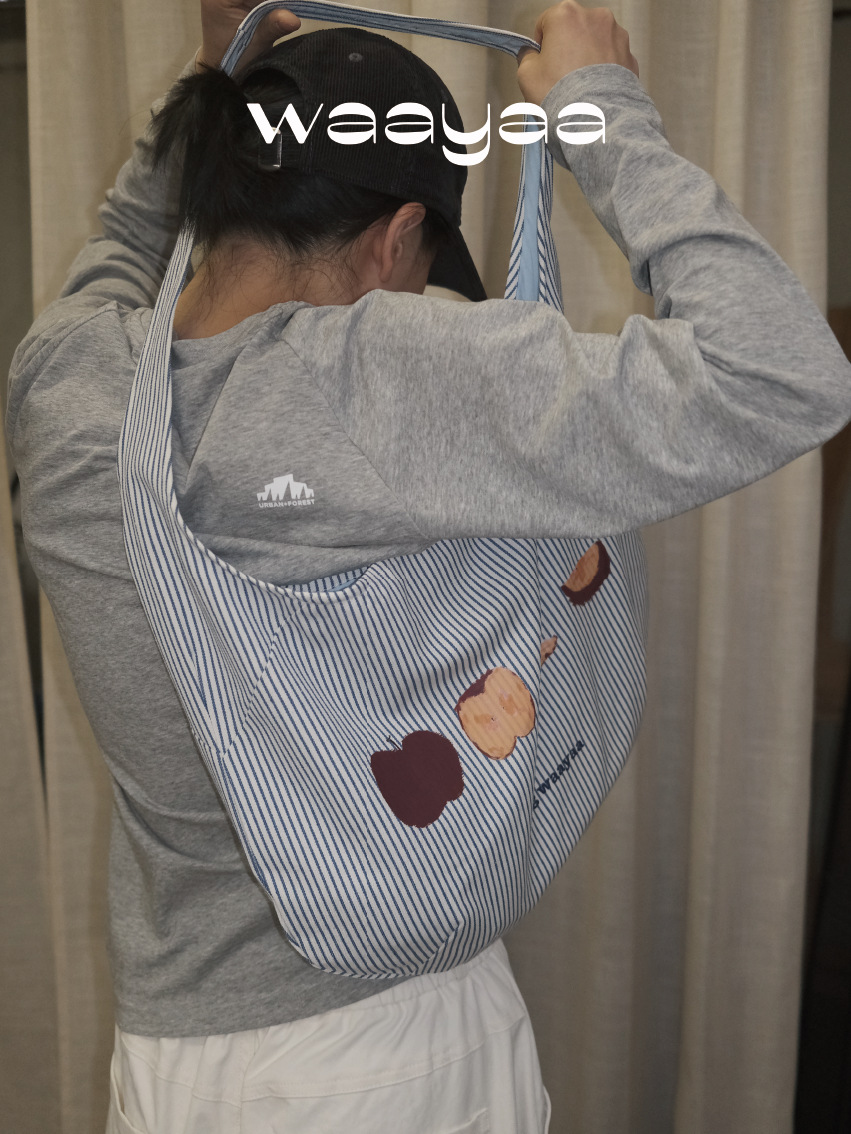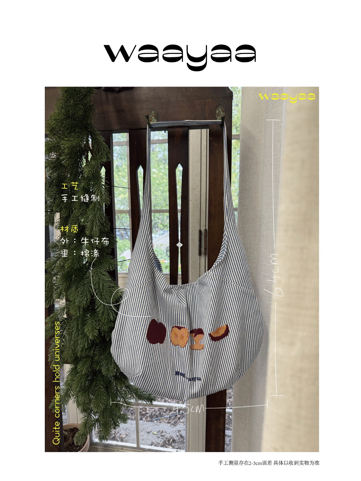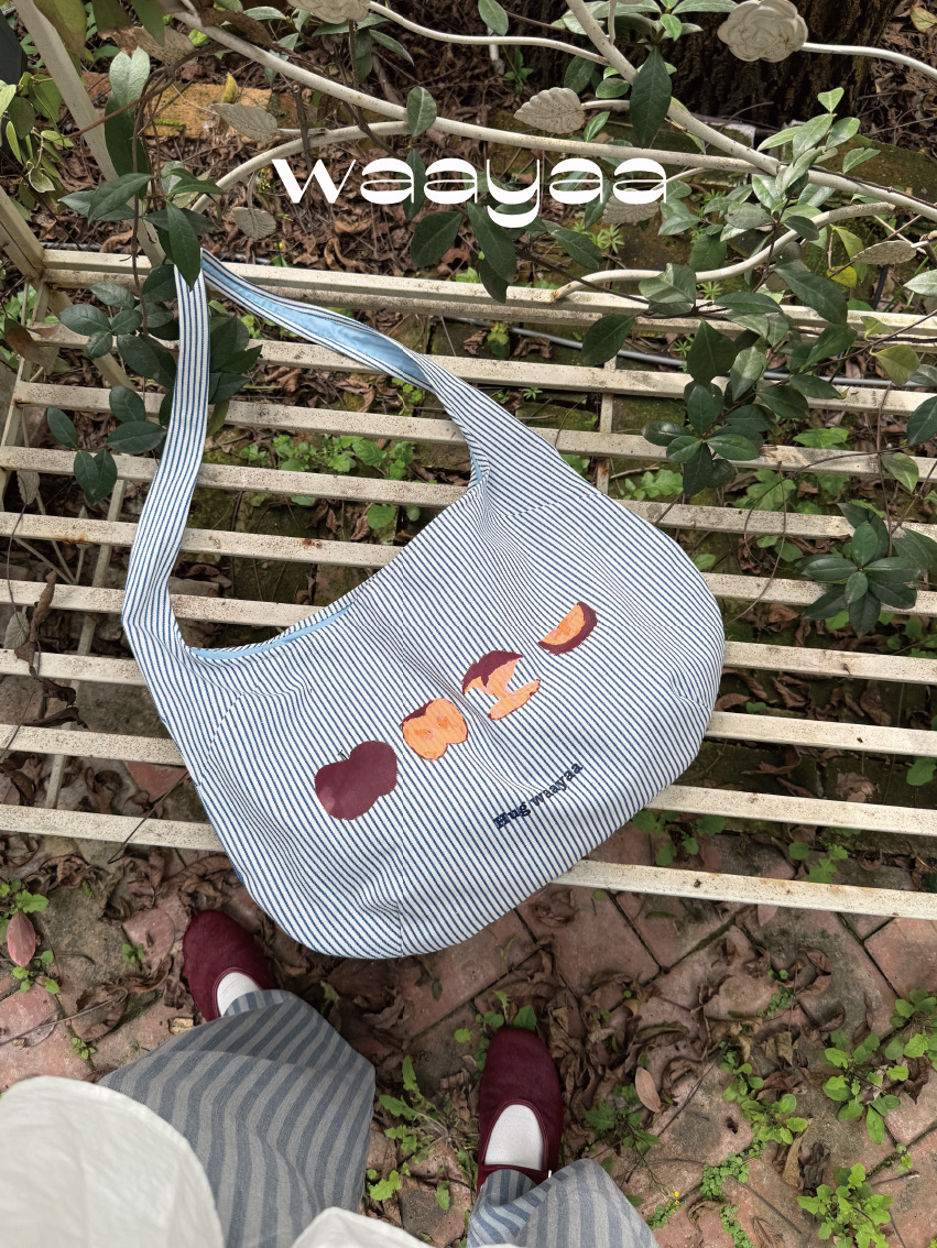 Waayaa Niche 원래 일본 그림 재미 애플 어깨 크로스 바디 캔버스 가방 소녀 선물스토어 가기