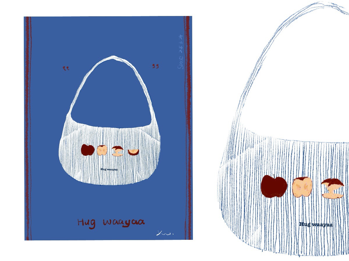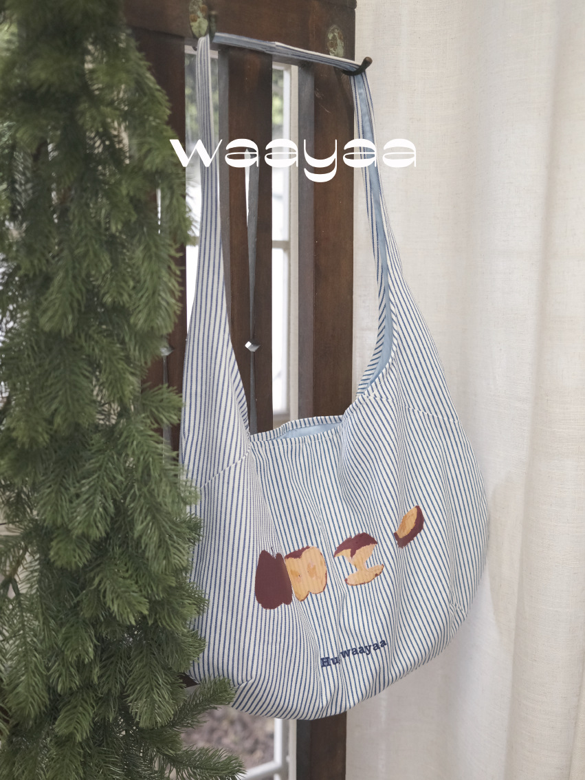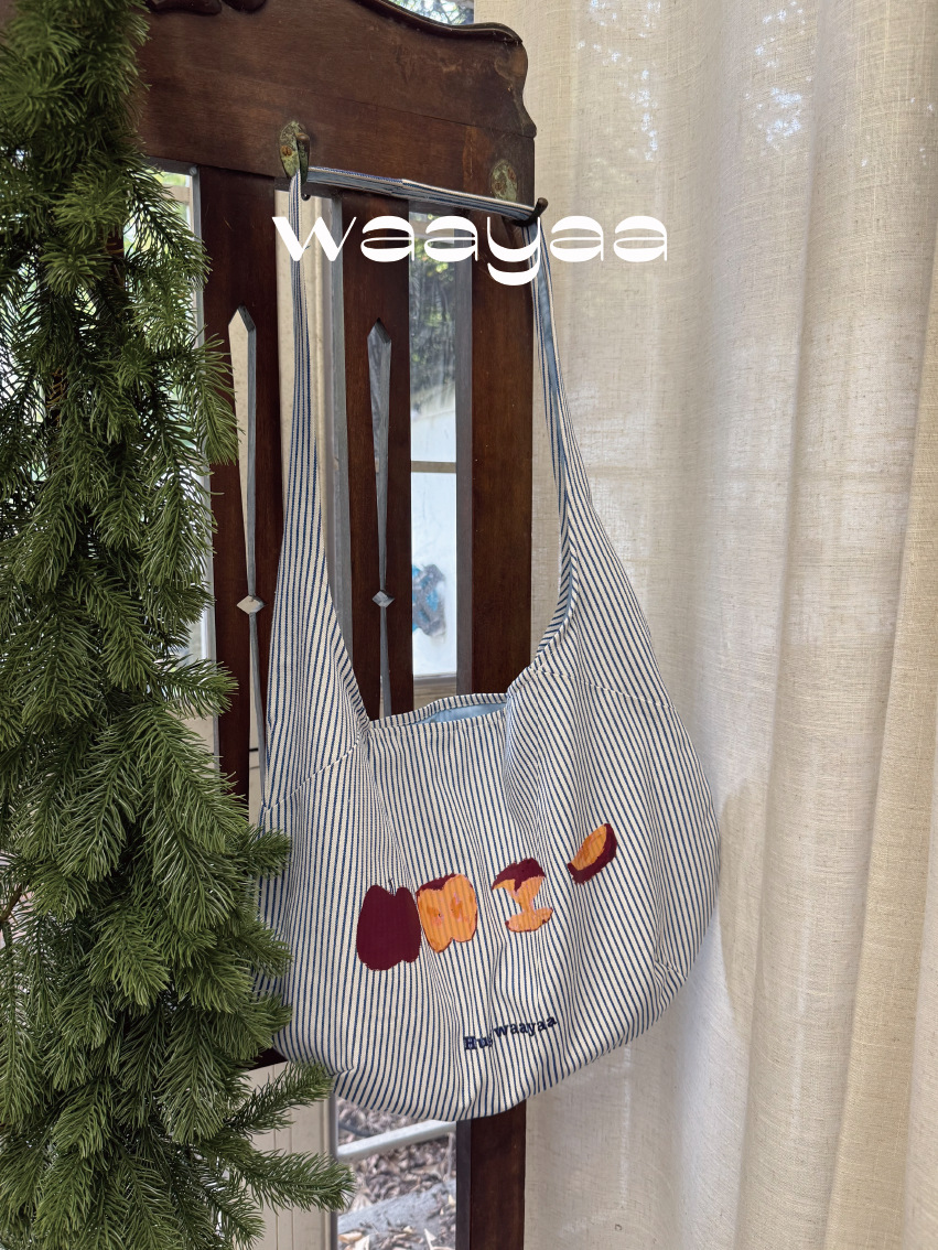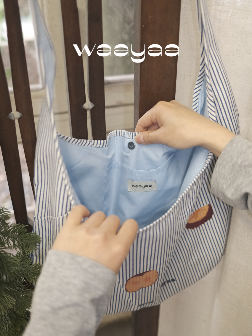 Waayaa Niche 원래 일본 그림 재미 애플 어깨 크로스 바디 캔버스 가방 소녀 선물스토어 가기