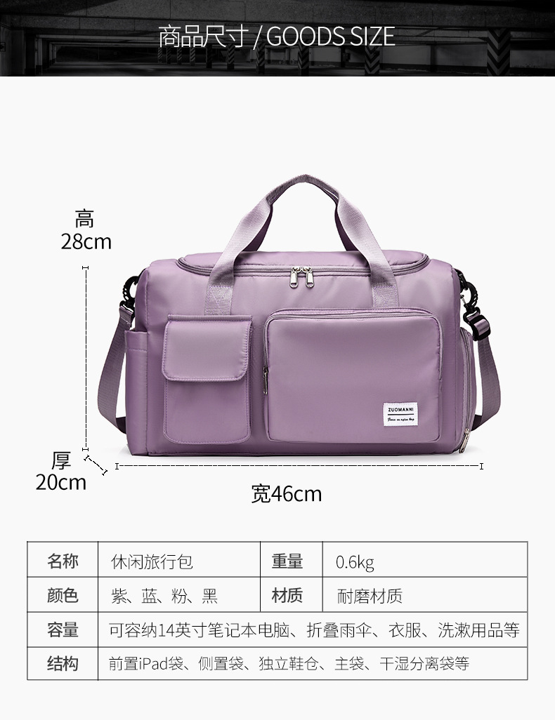 피트니스 가방, 건식 및 습식 분리 여행 가방, 신발 수납 공간, 수하물 가방, 다기능 수영 훈련 가방, 어깨 스포츠 가방