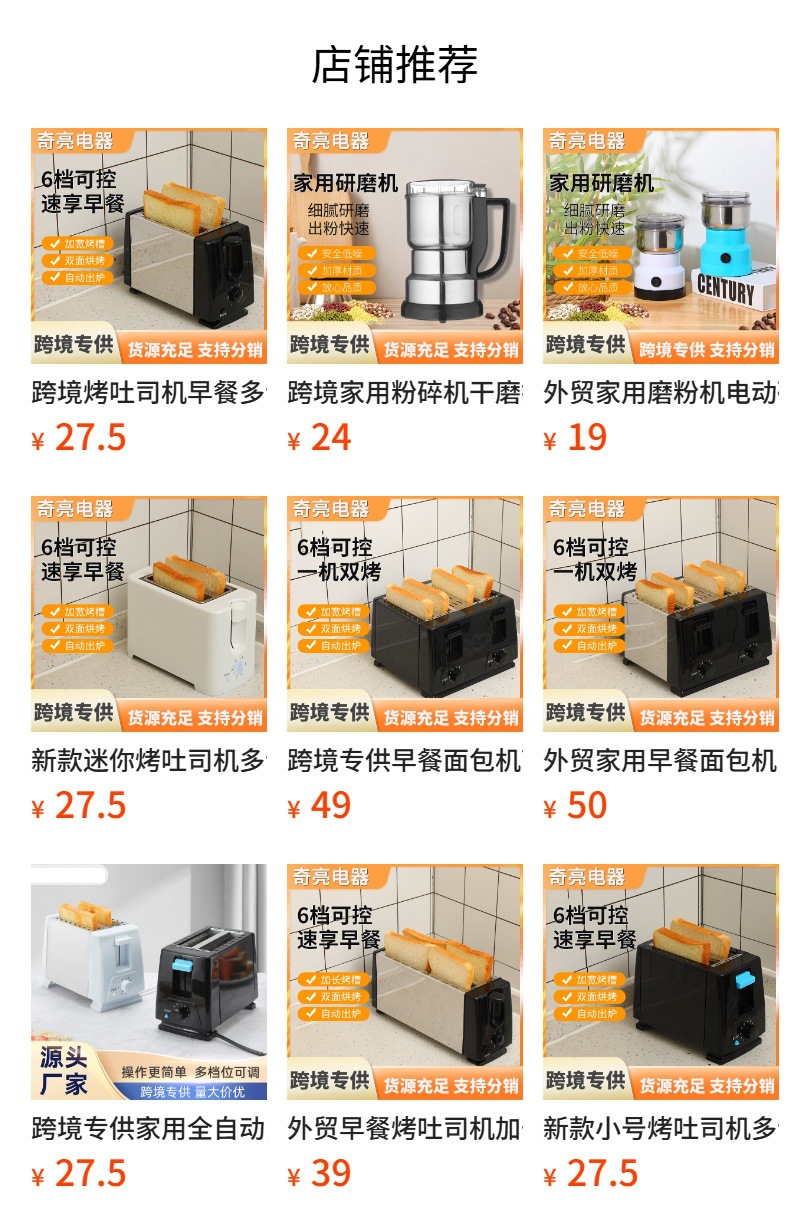 새로운 소형 토스터 토스터 샌드위치 아침 식사 기계 주방 가정용 빵 기계 소형 전기 국경 간스토어 가기