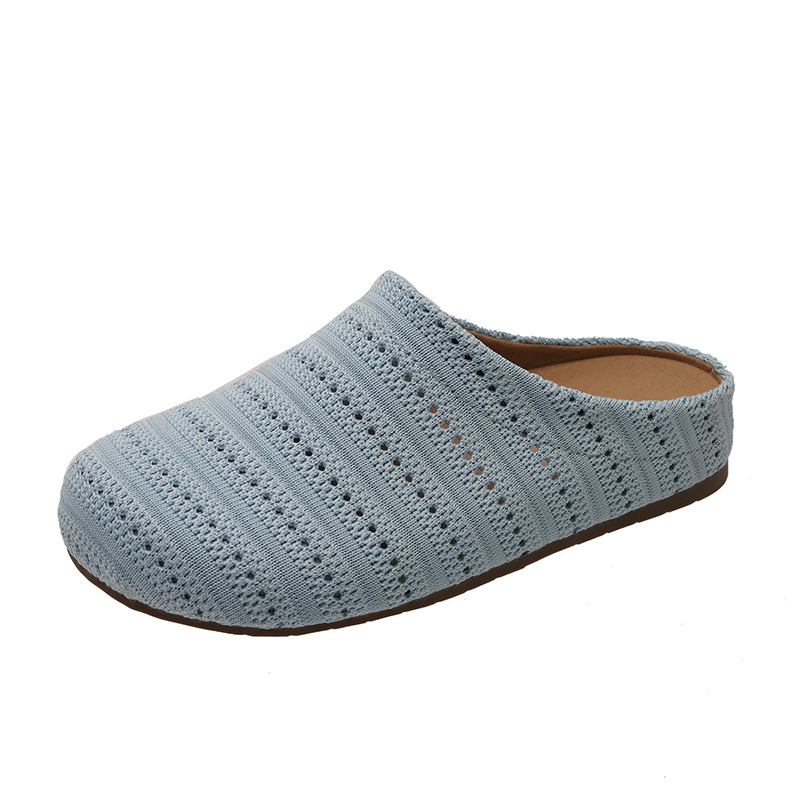 여성을위한 짠 발가락 반 슬리퍼 2025 여름 해변 부드러운 바닥 게으른 슬립 온 플랫 밑창 뮬 샌들