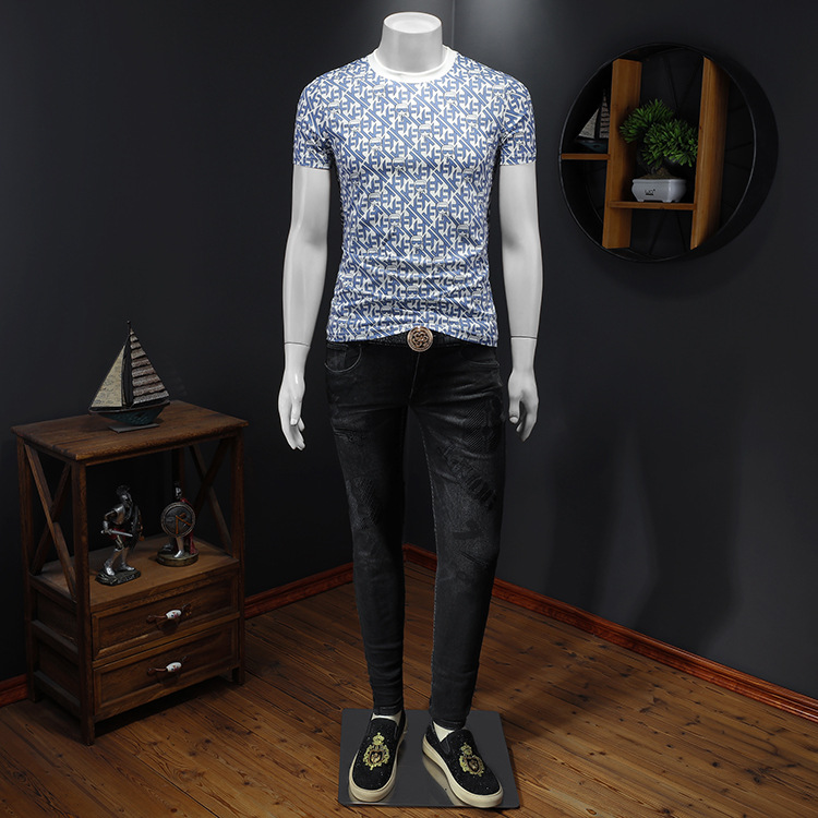 유럽 역 2025 새로운 여름 캐주얼 남성 라운드 넥 반팔 티셔츠 대형 고품질 반팔 풀오버 베이스스토어 가기