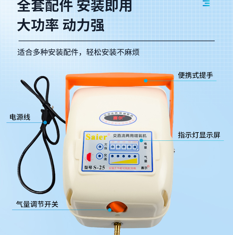 Sailiba 산소 발생기 휴대용 물고기 산소 펌프 야외 충전식 이중 목적 AC 및 DC 고출력 산소 펌프스토어 가기