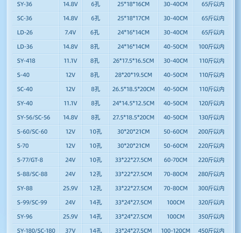 • SY-260X 16홀 디스플레이 리튬 배터리 300kg마리