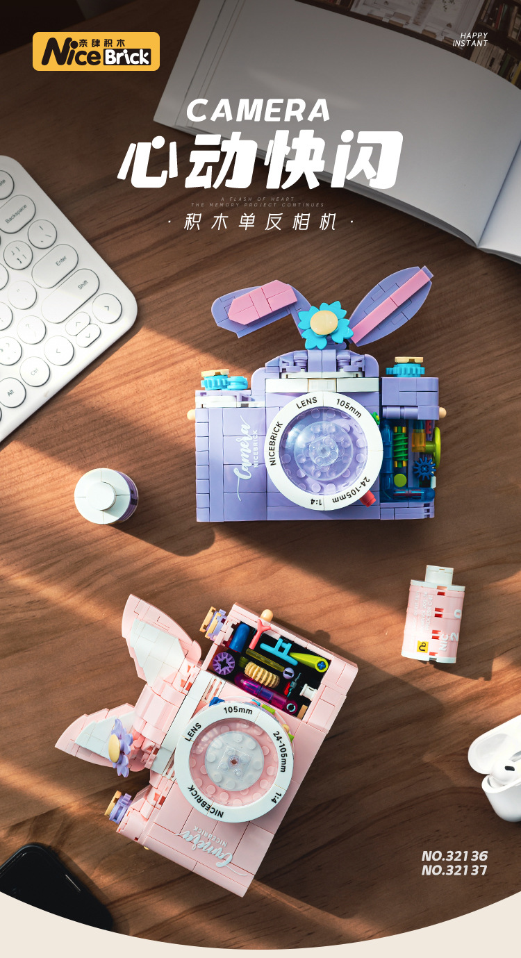 2025 새로운 중국 건물 블록 Kulomi Retro DSLR 디지털 카메라 어린이 조립 장식품 선물