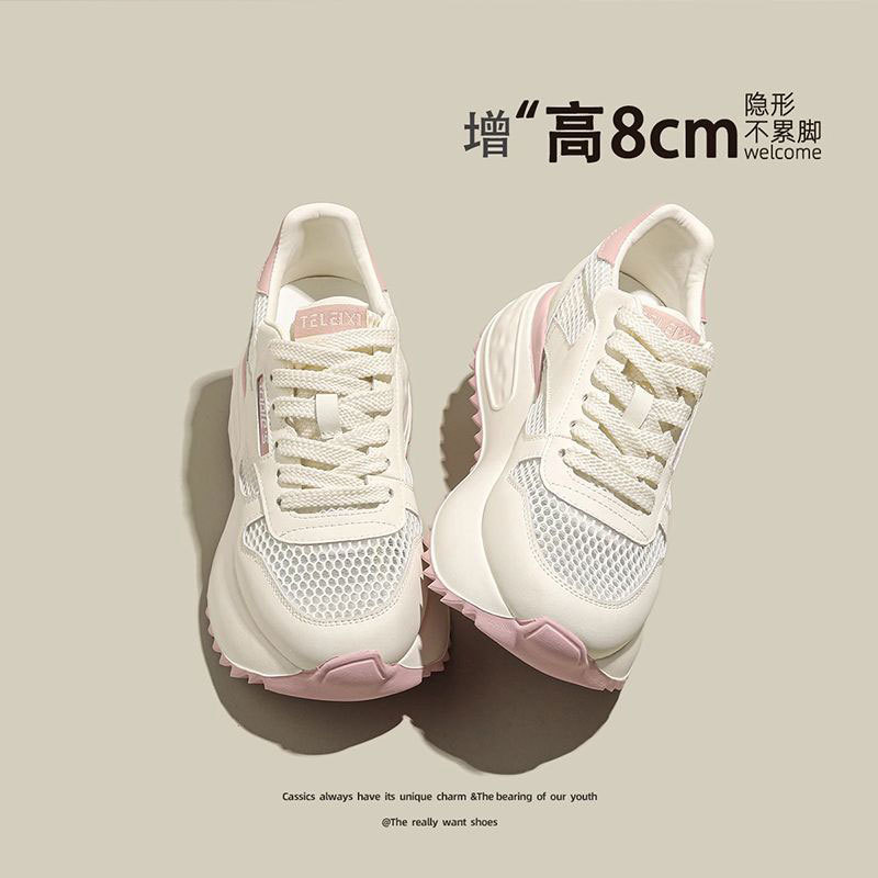 여자 두꺼운 밑창 운동화 2025 새로운 메쉬 통기성 캐주얼 포레스트 검프 신발 증가 올 매치 화이트 신발 토레 신발스토어 가기