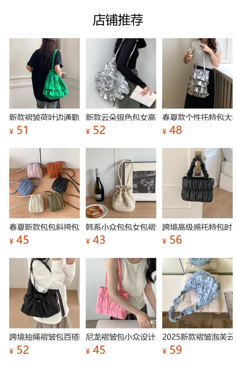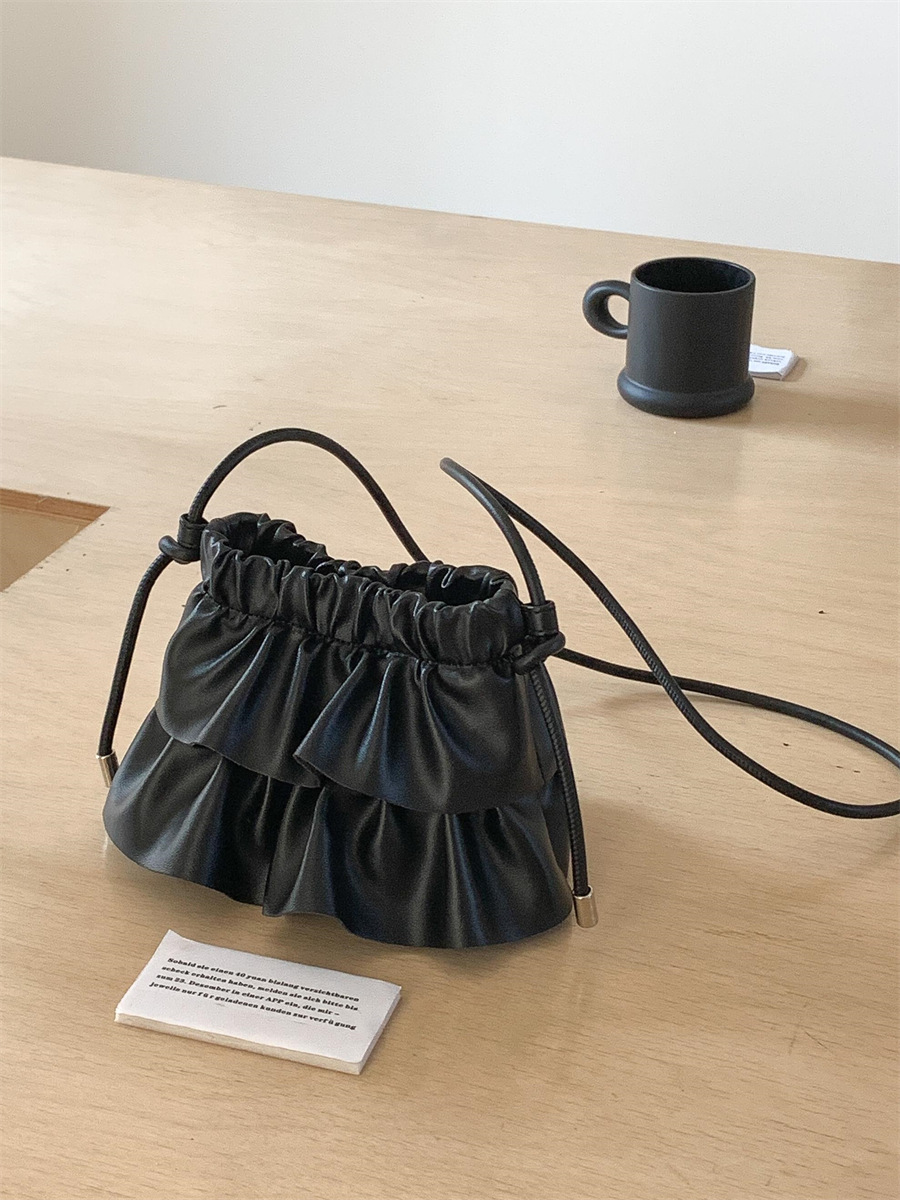 새로운 주름진 간단한 어깨 가방 여성의 2025 년 봄과 여름 독특한 유행 부드러운 가죽 주름 가방 크로스 바디 백스토어 가기