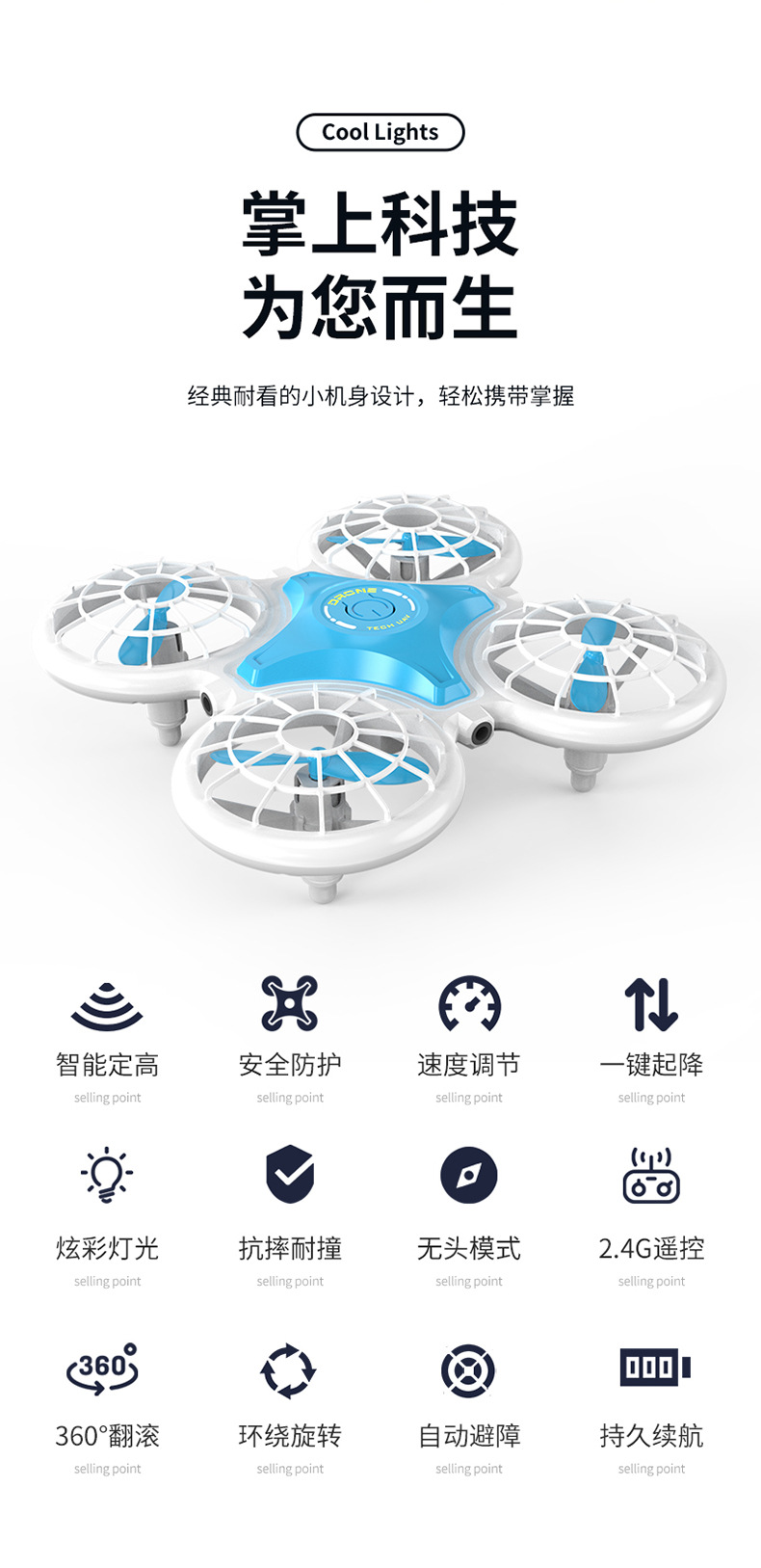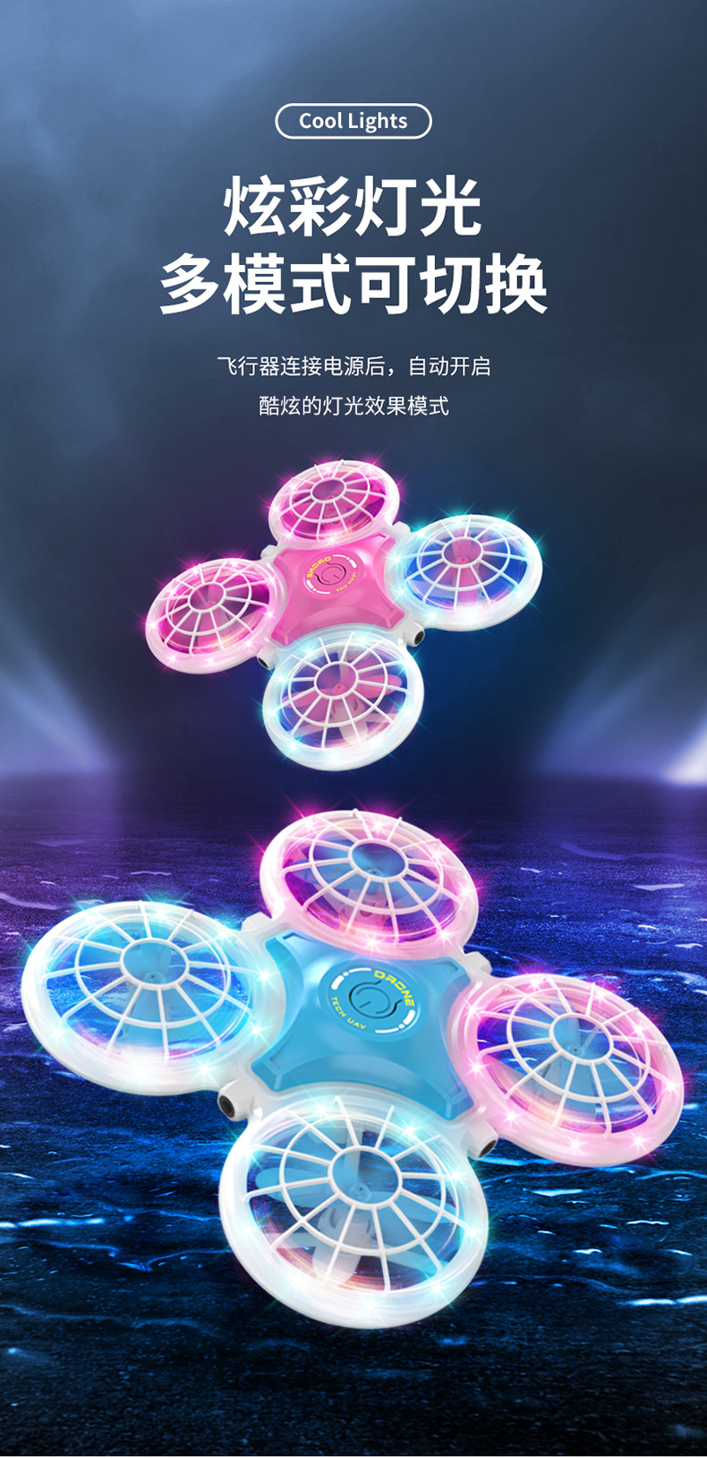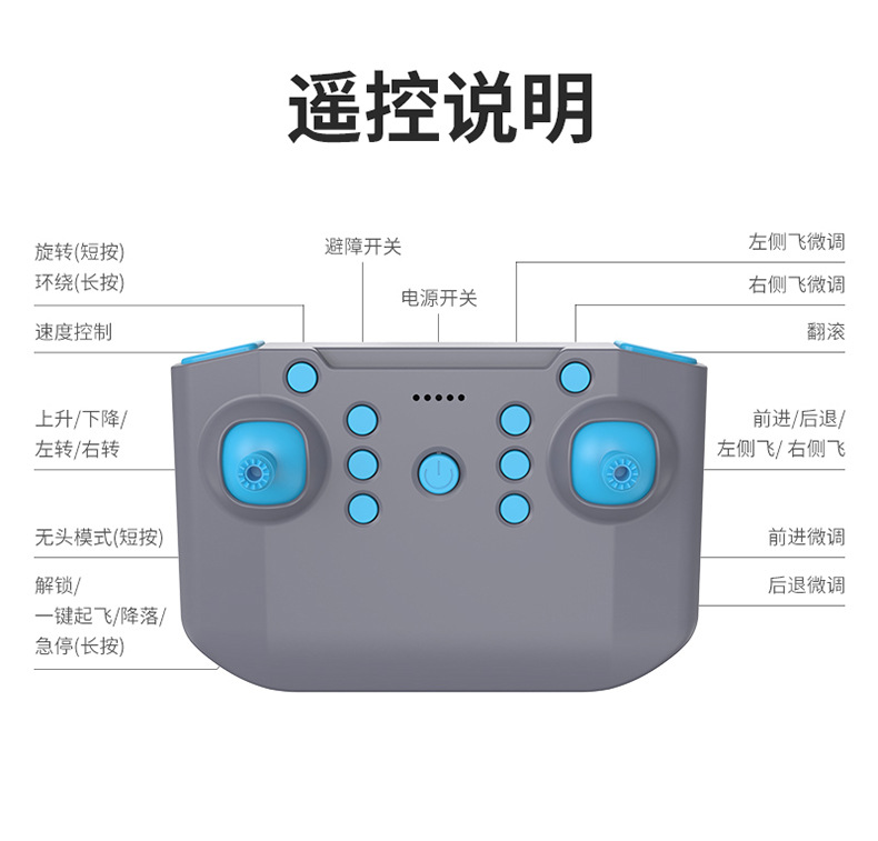 • (파란색) 업그레이드 버전 + 두꺼워진 몸체 + 색상이 변하는 조명 + 4면 장애물 회피 + 원버튼 리프팅 + 공중부양 비행