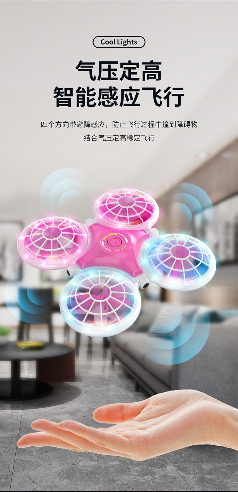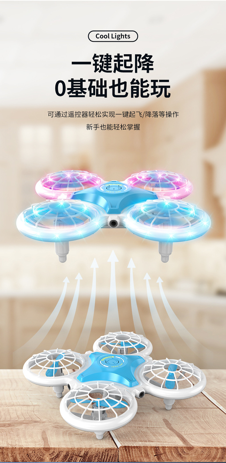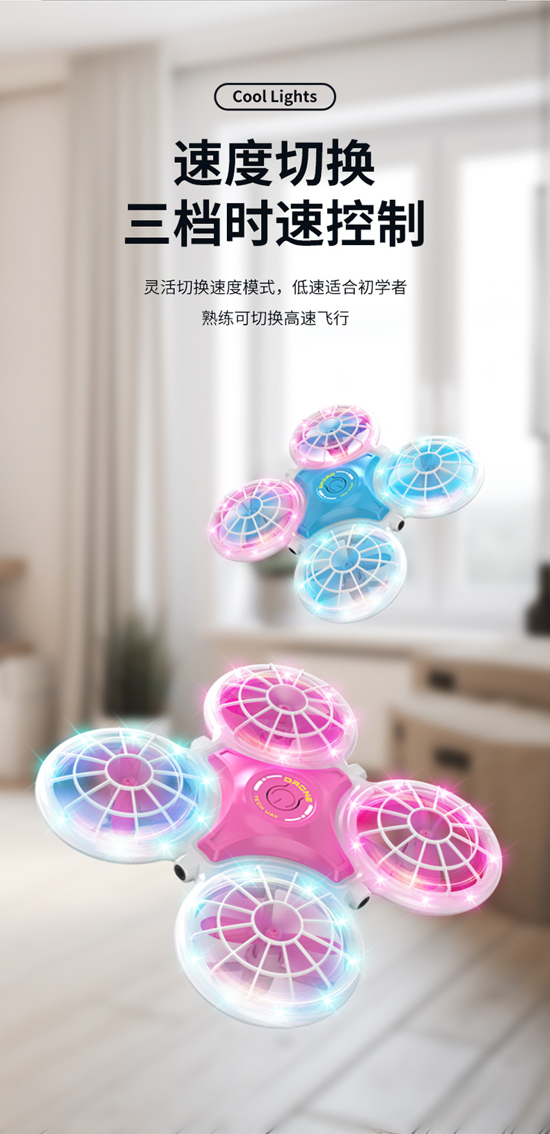 • (파란색) 업그레이드 버전 + 두꺼워진 몸체 + 색상이 변하는 조명 + 4면 장애물 회피 + 원버튼 리프팅 + 공중부양 비행
