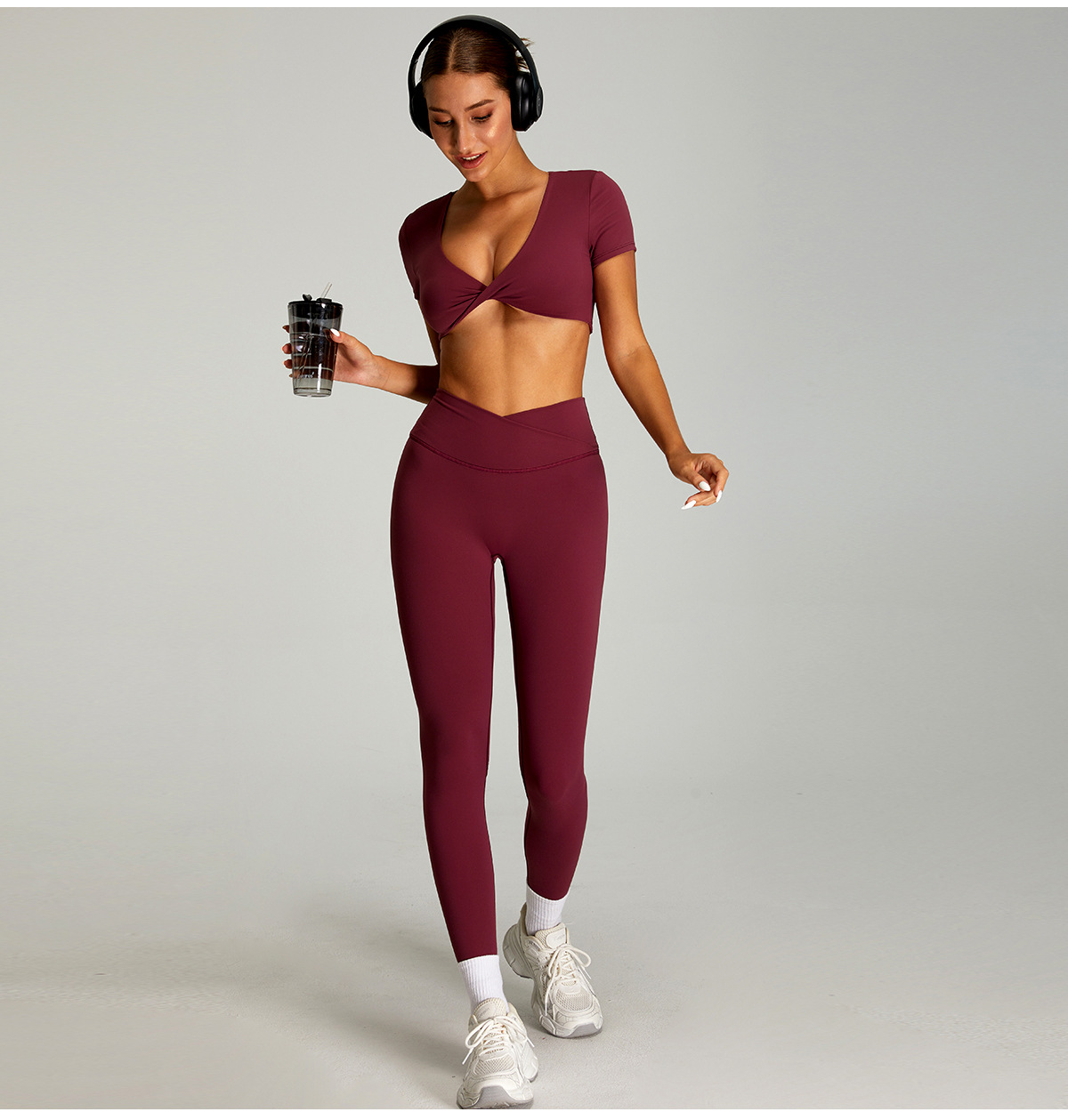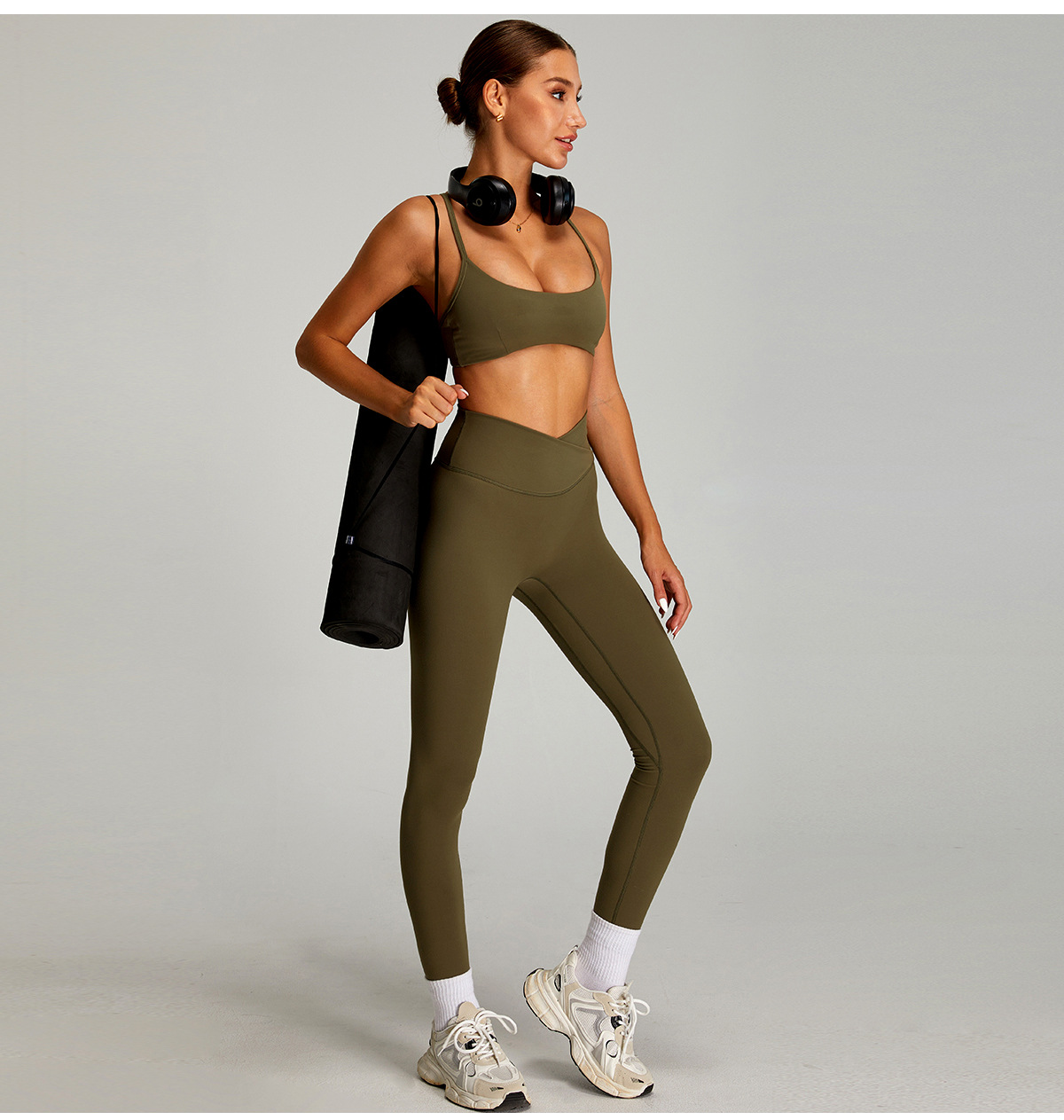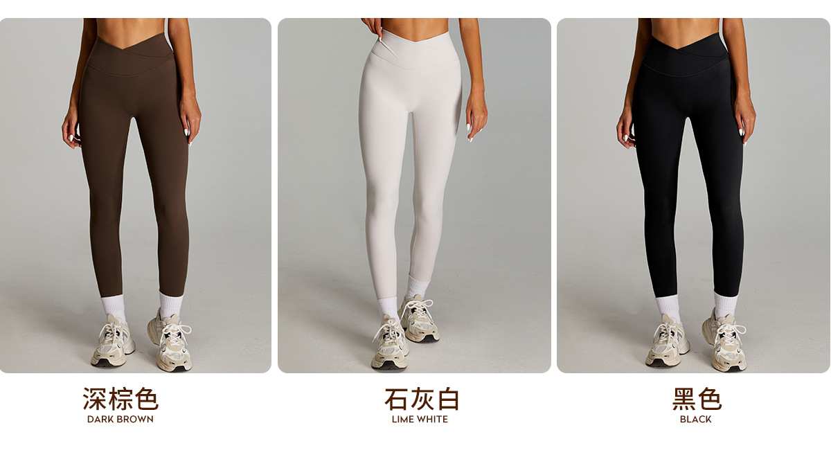 여성을 위한 새로운 스타일의 속건성 피트니스 팬츠, 야외 런닝 스포츠 스타킹, 크로스 웨이스트 허리 컨트롤, 엉덩이 리프팅 요가 팬츠