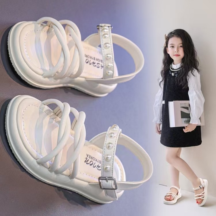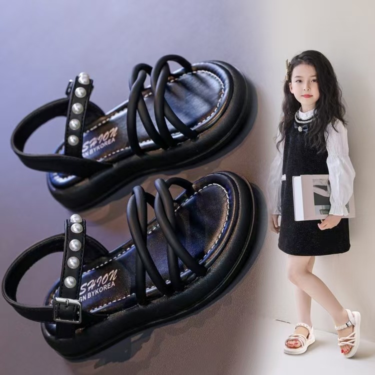 여자 샌들 2025 여름 새로운 스타일 어린이 어린 소녀 공연 공주 신발 큰 어린이 부드러운 바닥 초등학교 여자스토어 가기