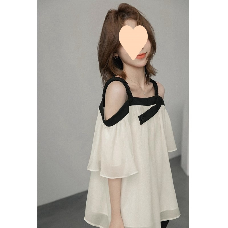 플러스 사이즈 150kg 여름 여성을 위한 달콤한 오프 숄더 대비 색상 쉬폰 셔츠 루즈한 기질 반팔 셔츠 탑 2스토어 가기