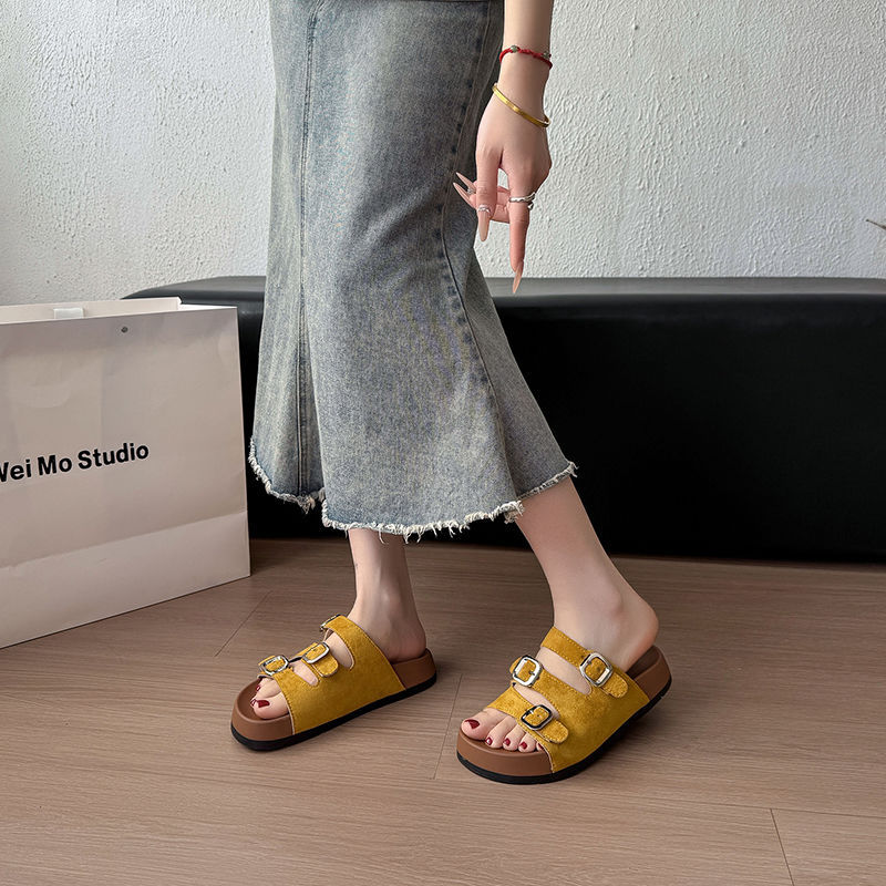 인터넷 연예인 인기 미끄럼 방지 두꺼운 밑창 여성용 샌들 2025 여름 신작 가볍고 캐주얼하며 다재다능한 슬리퍼스토어 가기