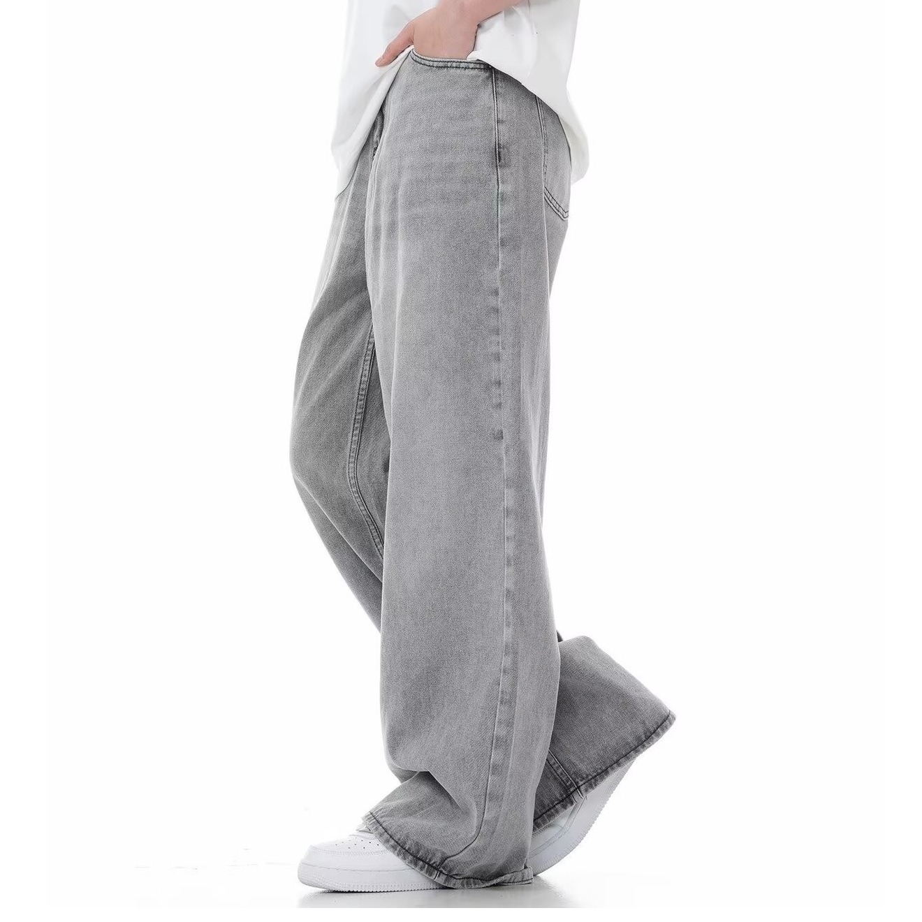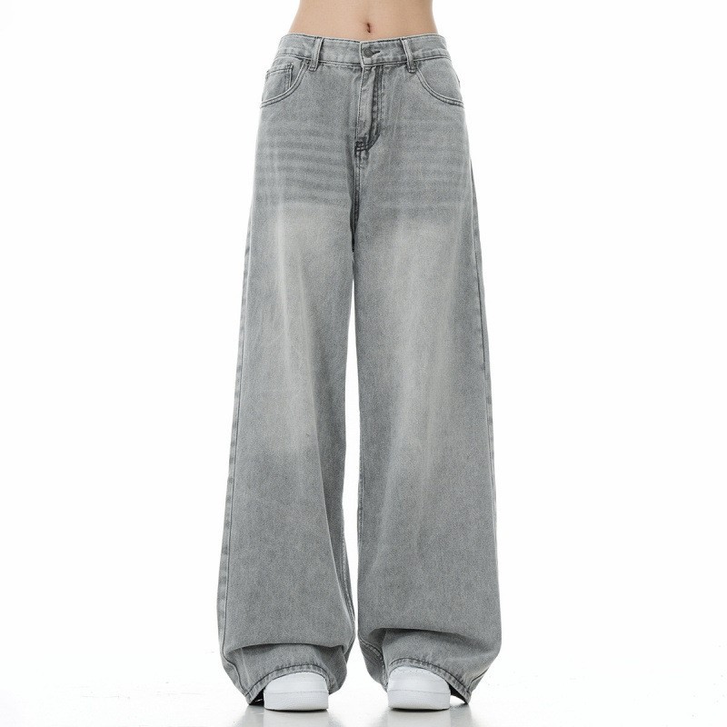 아메리칸 스타일 레트로 시멘트 그레이 하이 허리 청바지 여성의 봄과 가을 하이 스트리트 디자인 센스 루즈 슬리밍 좁은 스트레이트 팬츠스토어 가기