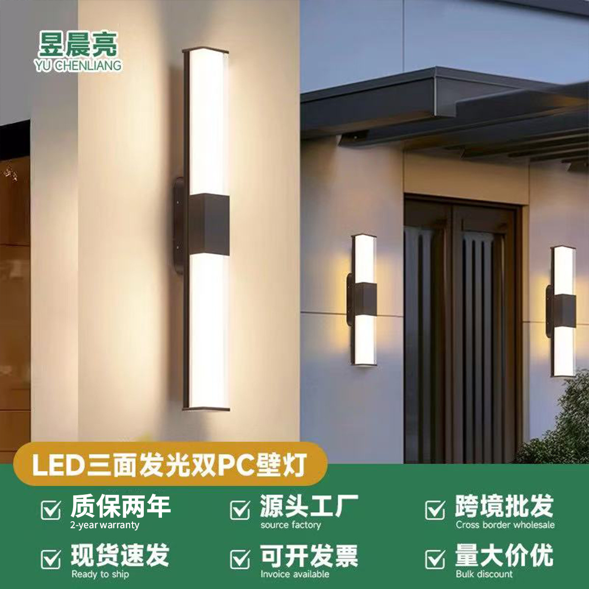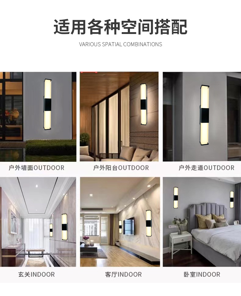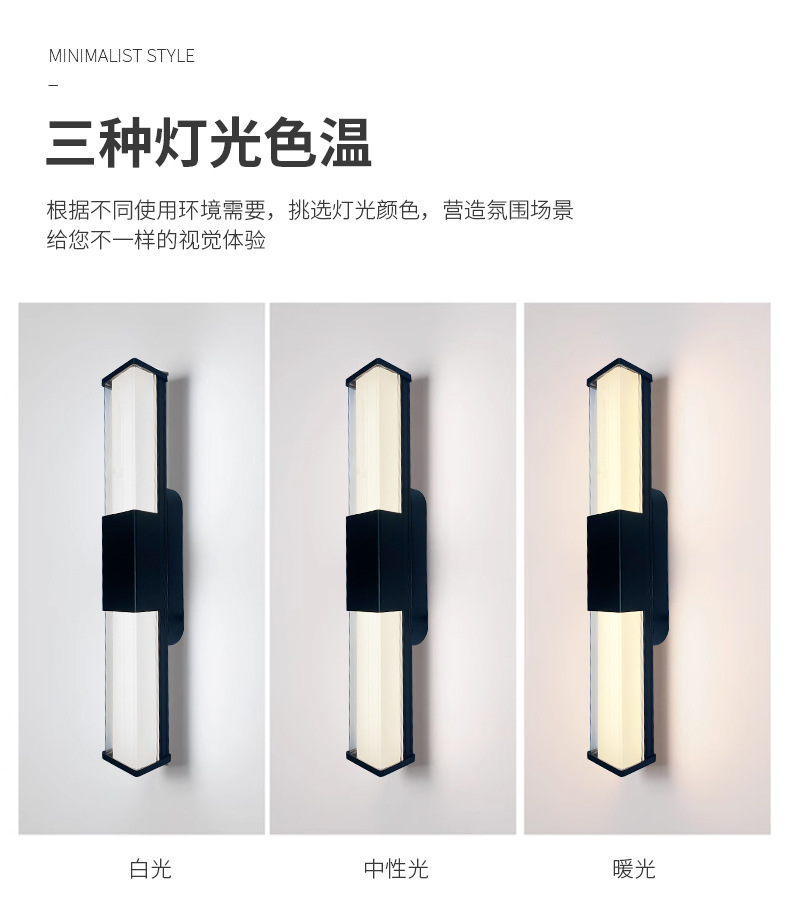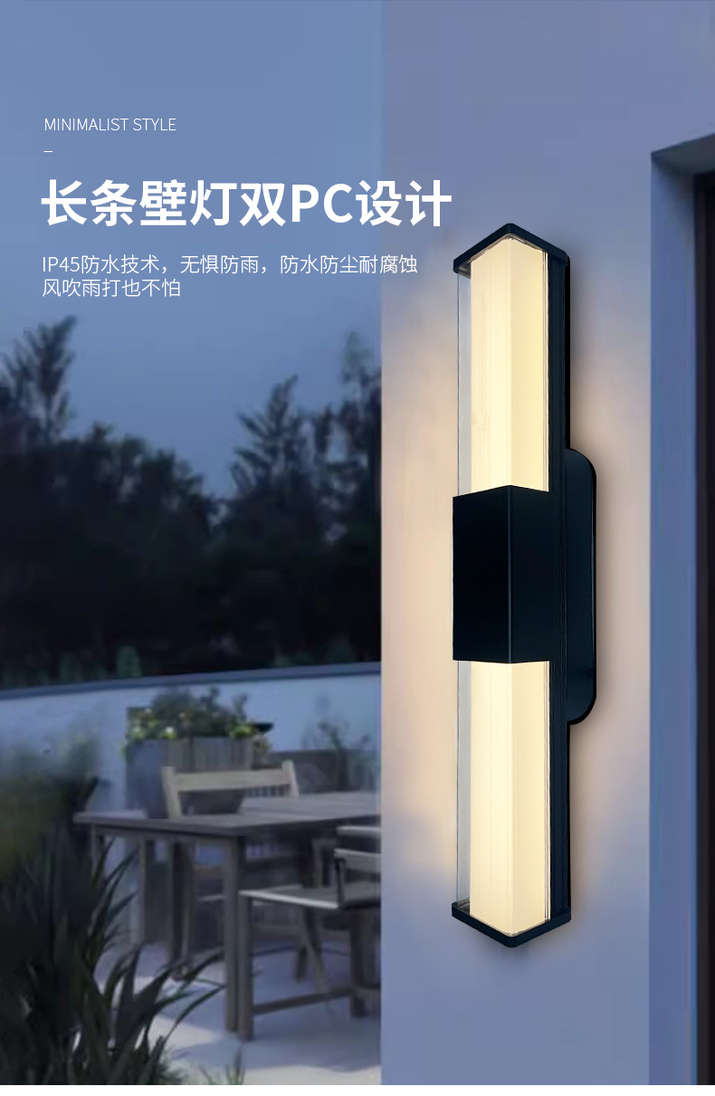 LED 야외 방수 삼면 발광형 긴 벽등, 마당, 복도, 통로, 빌라, 발코니, 침실, 침대 옆 벽등