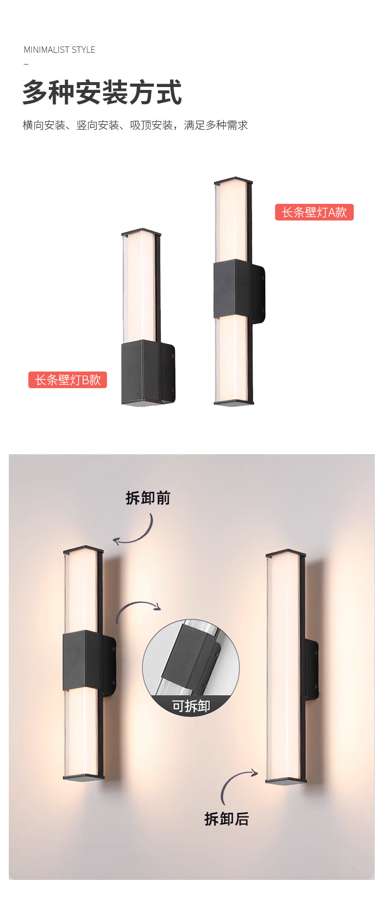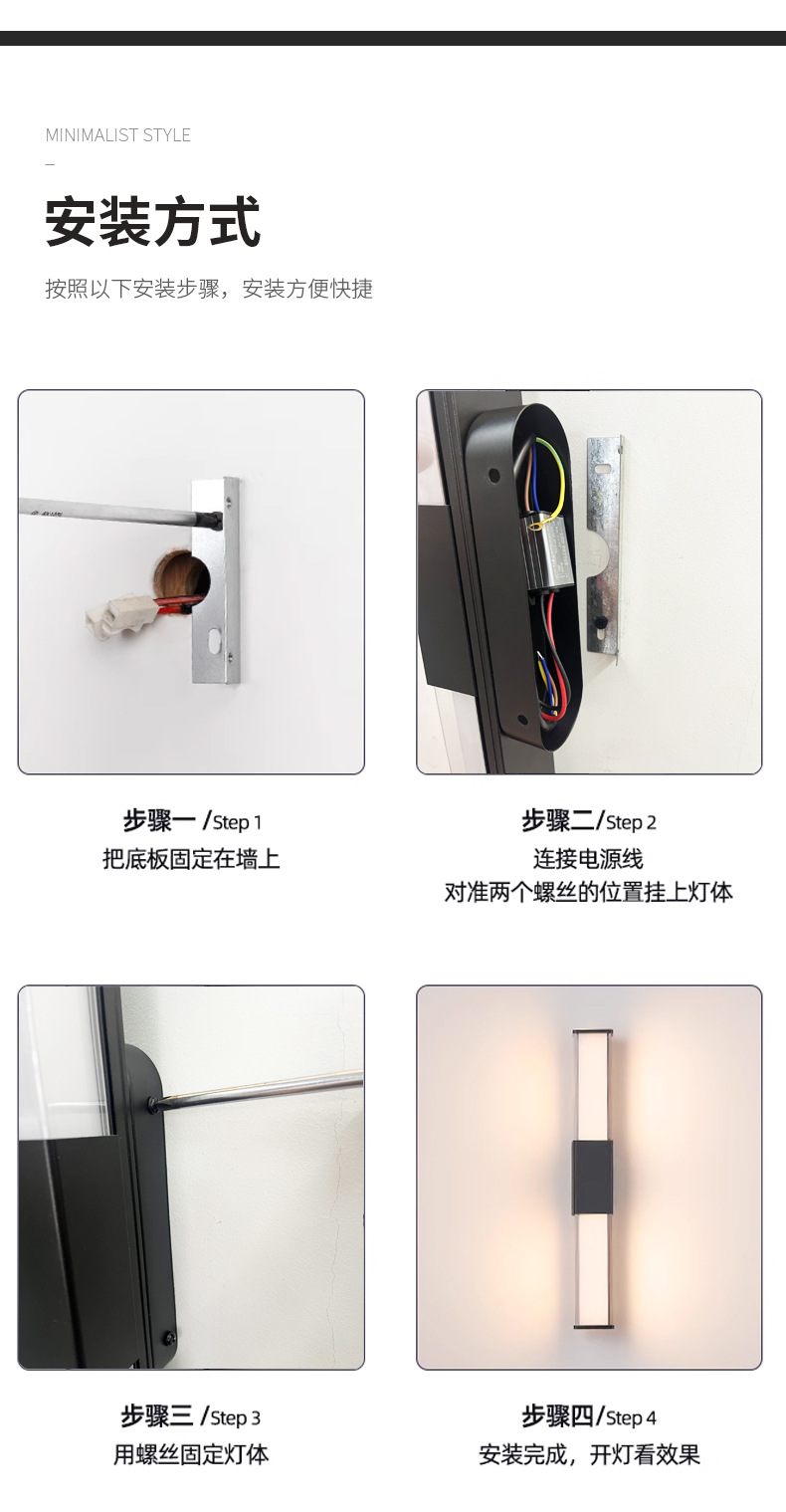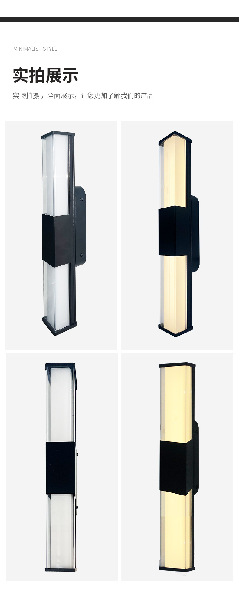 LED 야외 방수 삼면 발광형 긴 벽등, 마당, 복도, 통로, 빌라, 발코니, 침실, 침대 옆 벽등