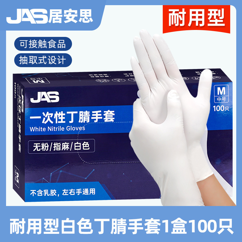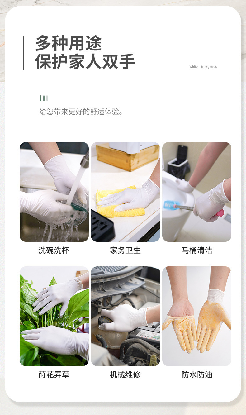 Juance 화이트 일회용 니트릴 장갑 고무 실험실 여성용 주방 내구성 방수 가정용 내마모성 작업스토어 가기