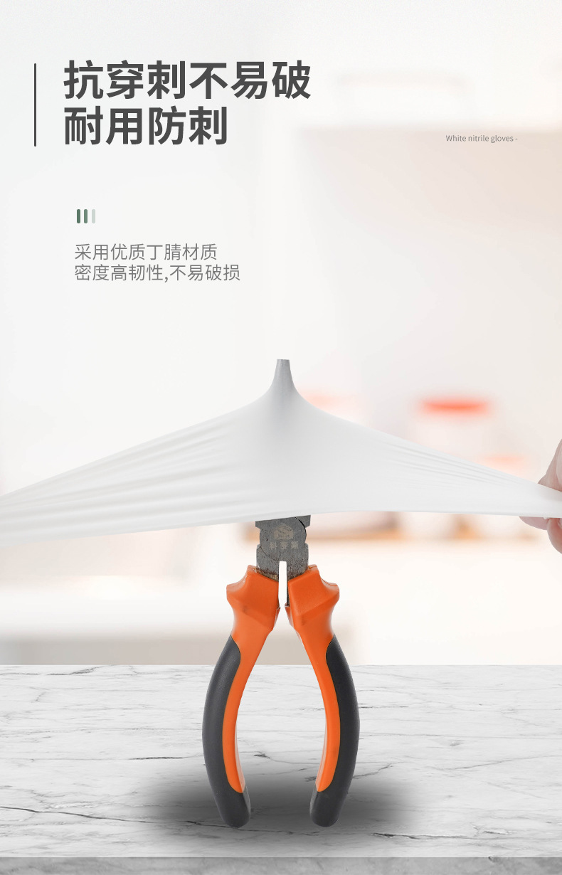 Juance 화이트 일회용 니트릴 장갑 고무 실험실 여성용 주방 내구성 방수 가정용 내마모성 작업