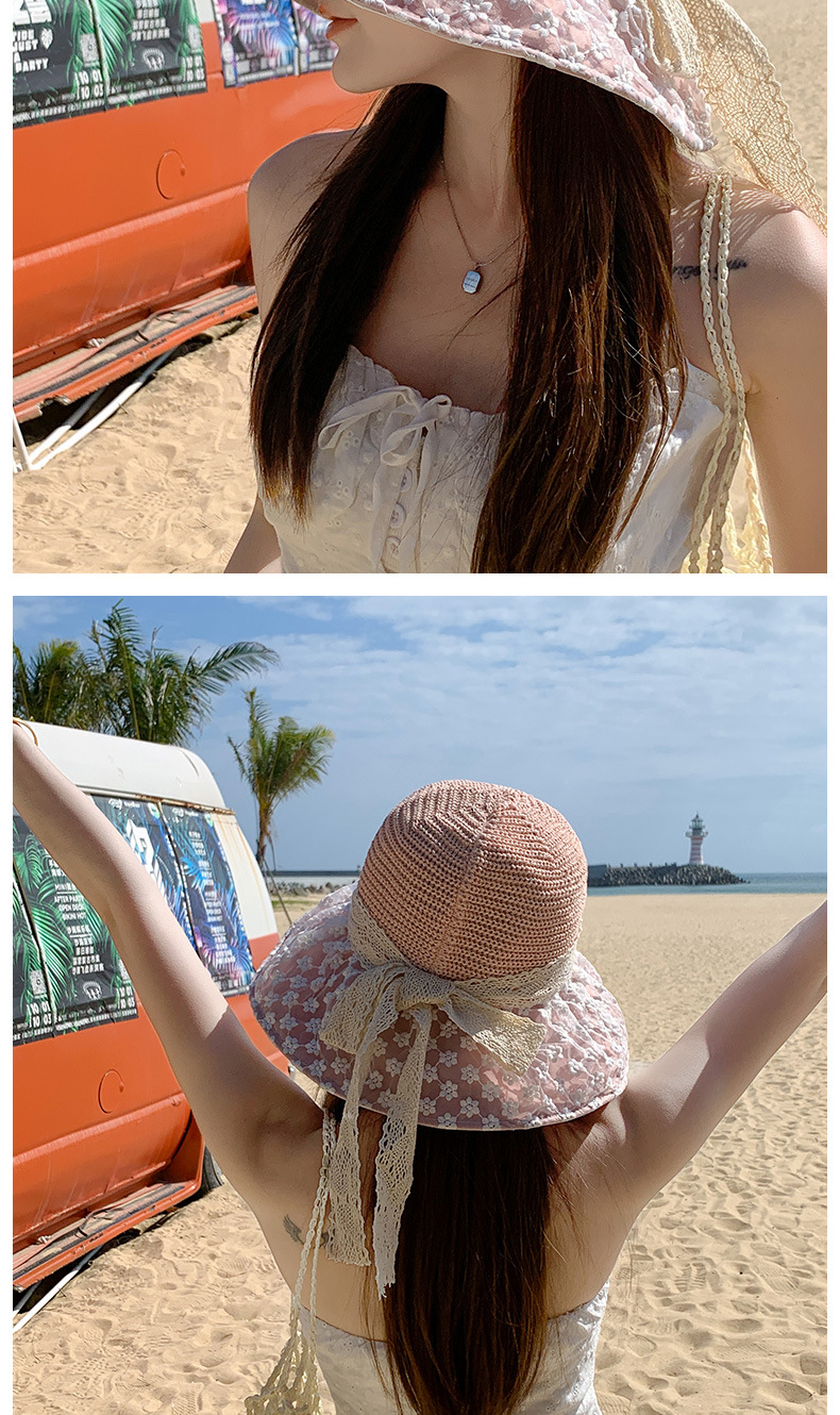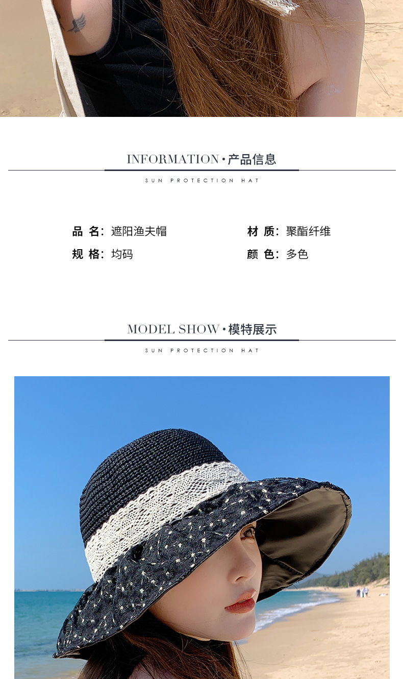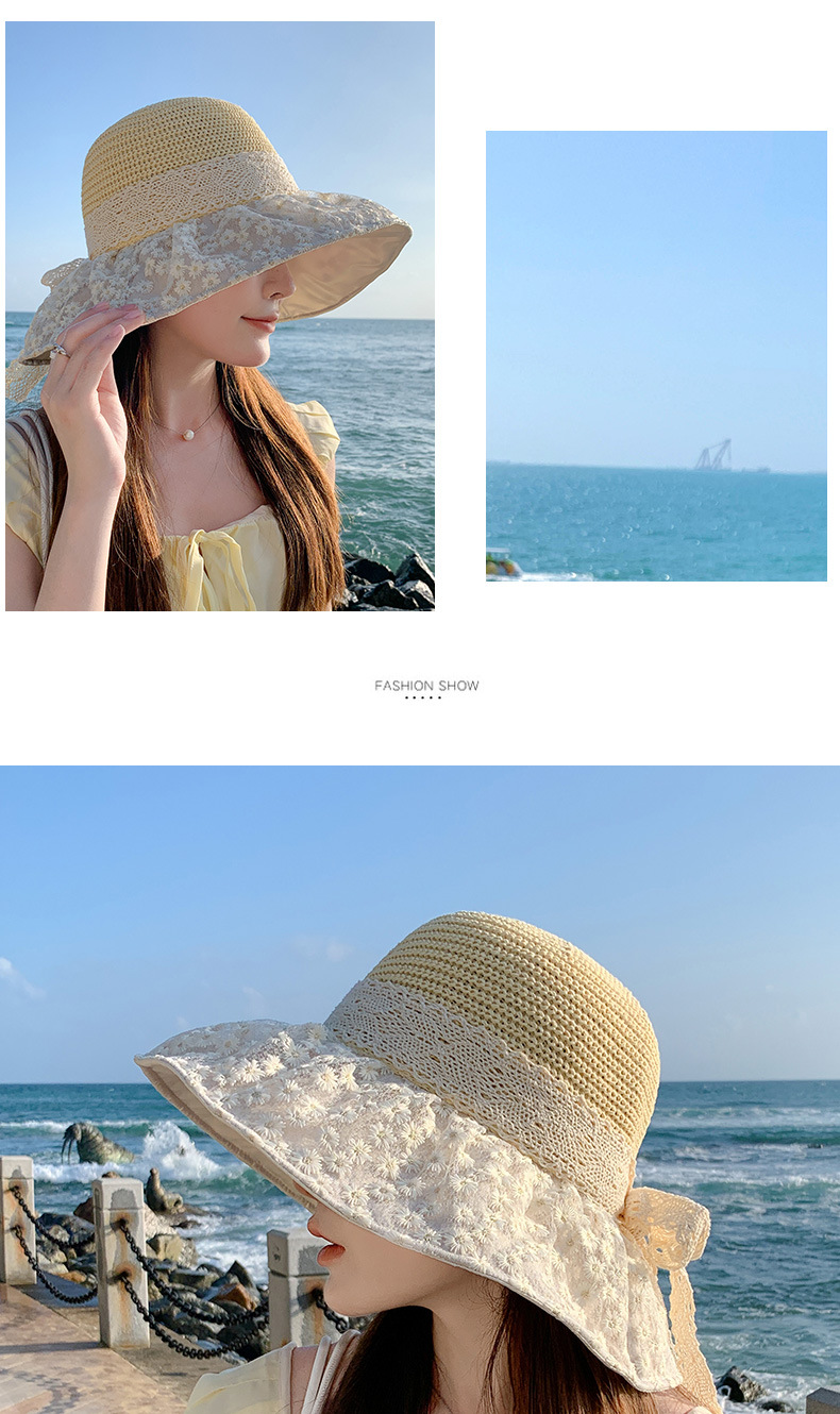 여성용 여름 태양 모자, 자외선 차단 및 자외선 차단 여성용 태양 모자, 야외 여행 레이스 보우 스플라이스 어부 모자스토어 가기
