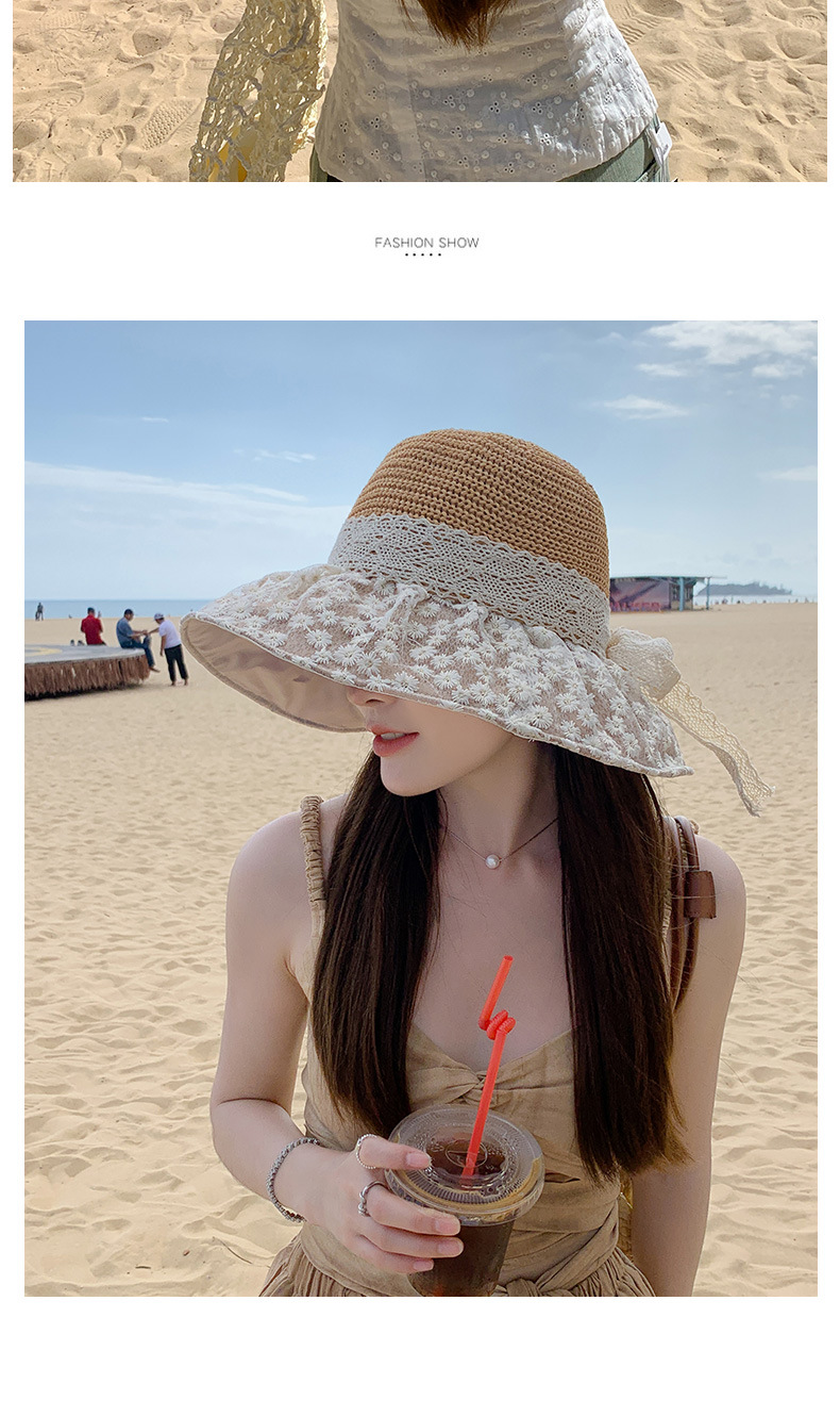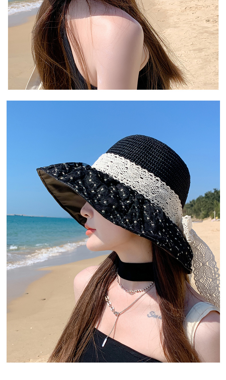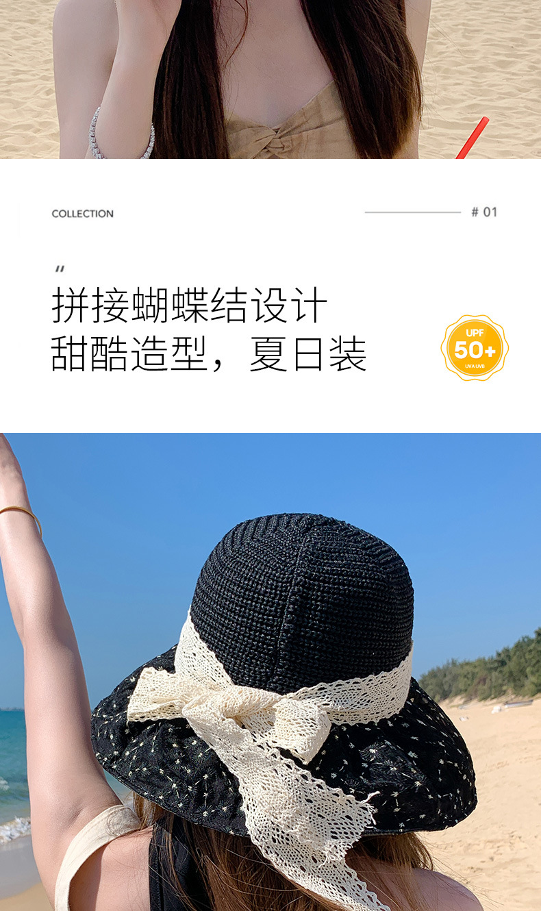 여성용 여름 태양 모자, 자외선 차단 및 자외선 차단 여성용 태양 모자, 야외 여행 레이스 보우 스플라이스 어부 모자스토어 가기