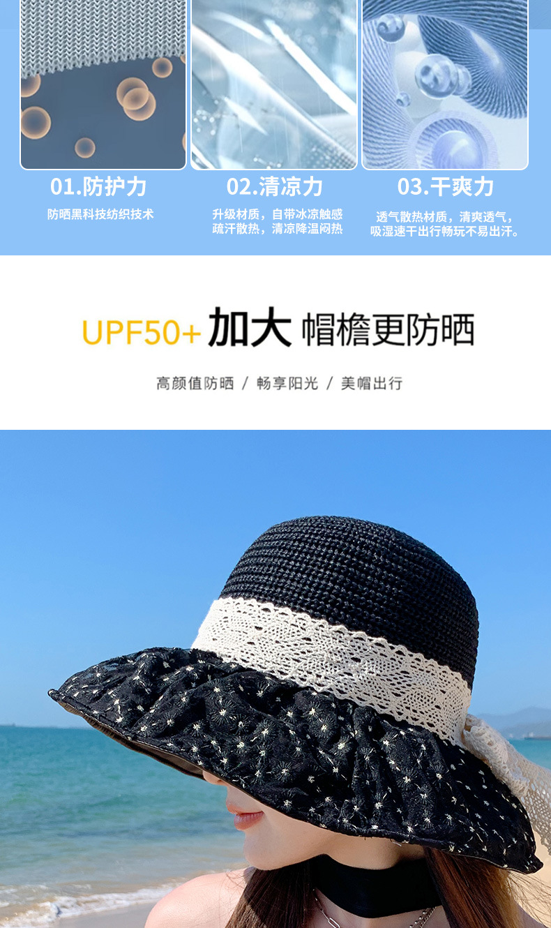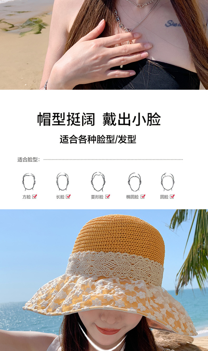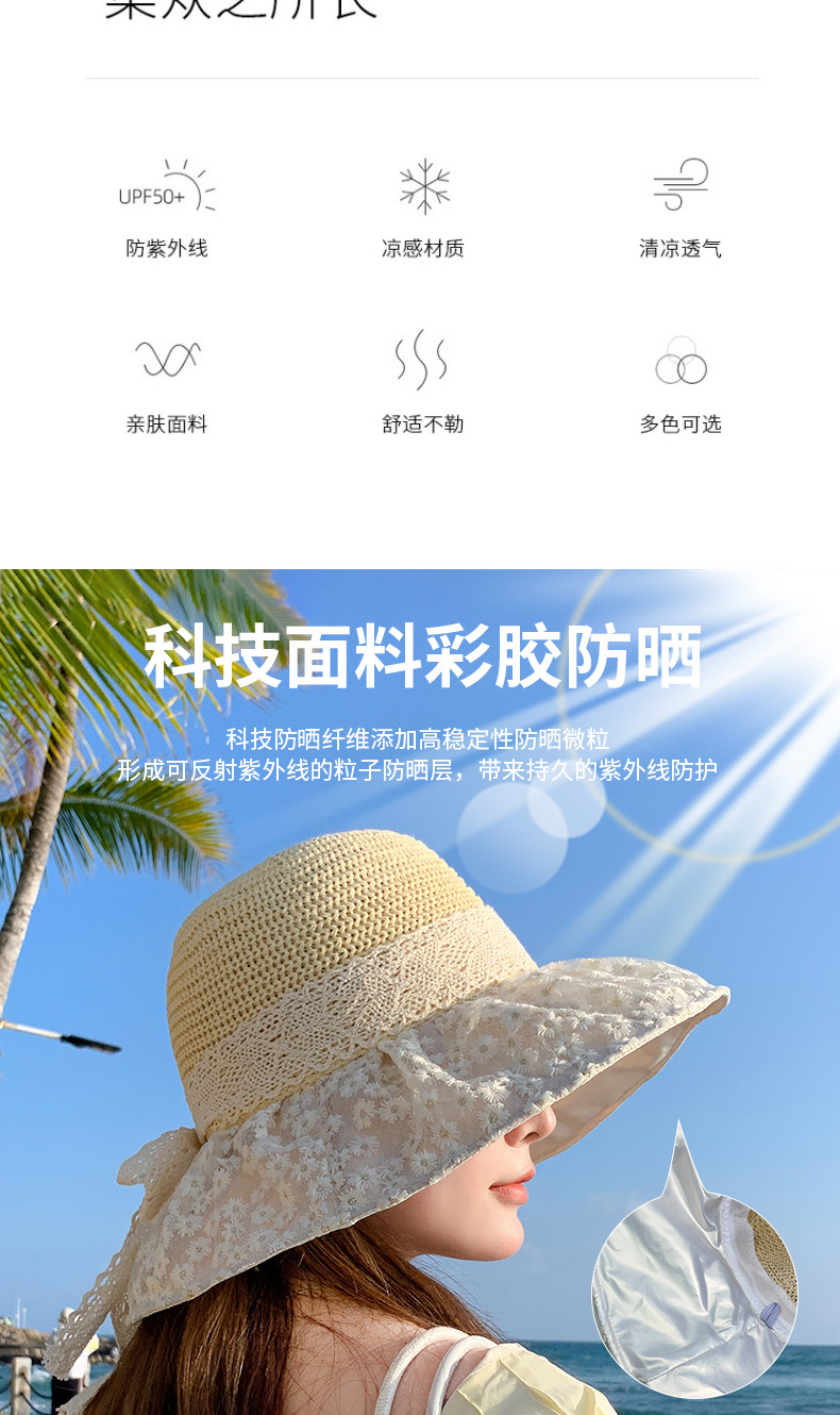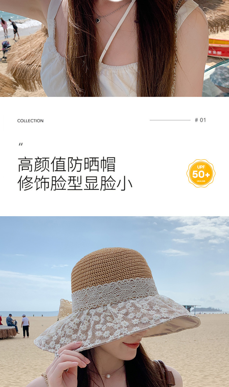 여성용 여름 태양 모자, 자외선 차단 및 자외선 차단 여성용 태양 모자, 야외 여행 레이스 보우 스플라이스 어부 모자