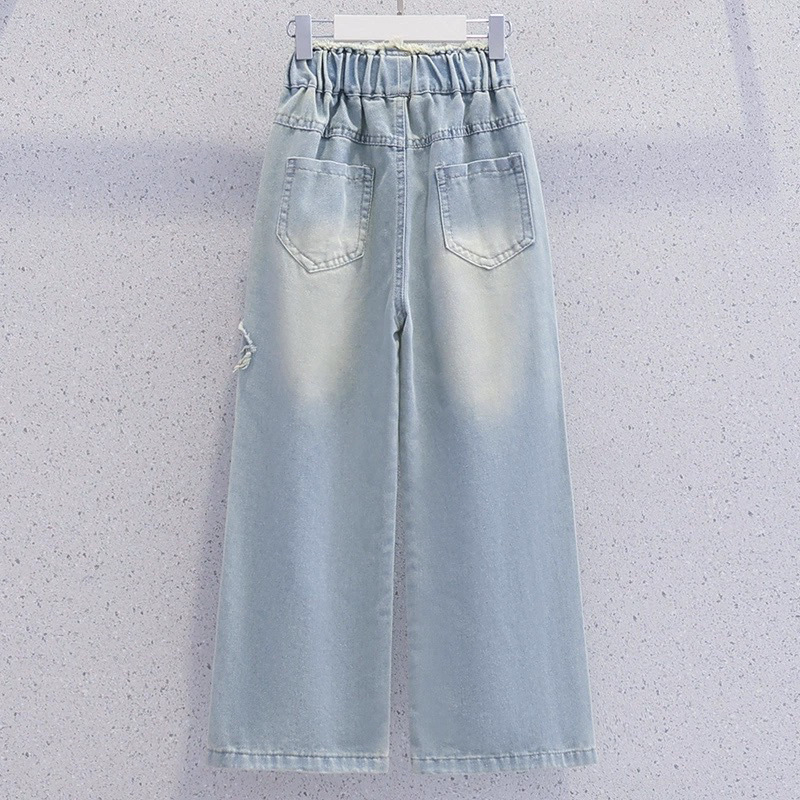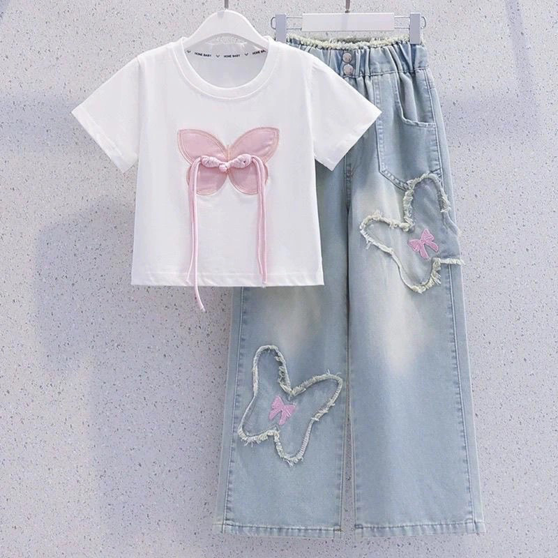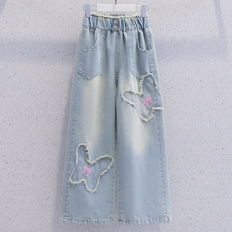 여아 정장, 얇은 청바지, 중대형 아동 패션, 나비 자수 바지, 아동용 다용도 아우터 바지스토어 가기
