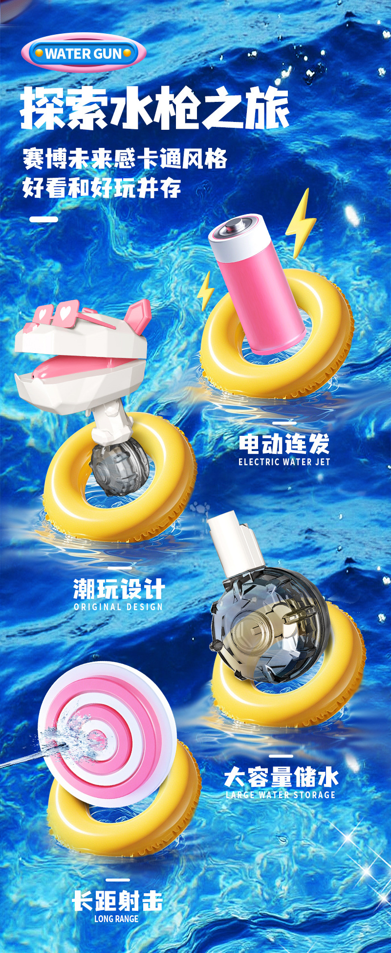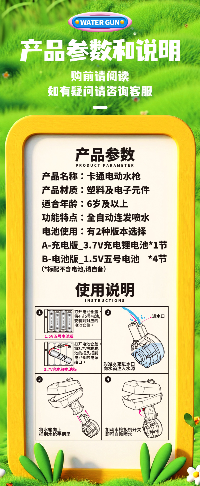 여름 만화 전기 지속적인 물 싸움 어린이 물 스프레이 총 소년과 소녀 2025 새로운 인터넷 축하 물 총 장난감스토어 가기
