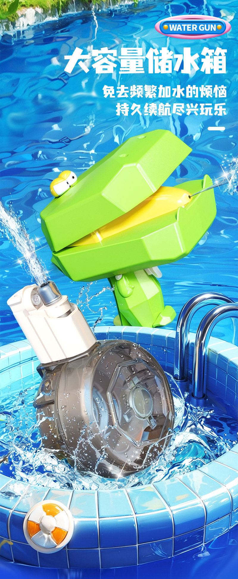 • 대형 드럼 카툰 물총 - 악어 그린 [충전식 모델]
