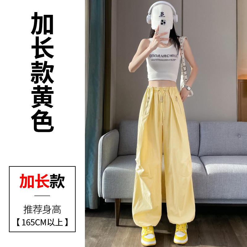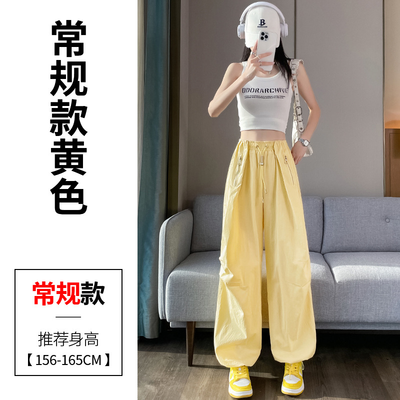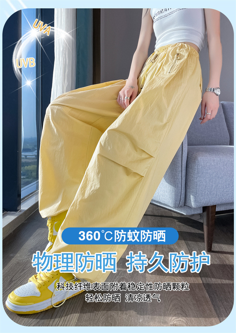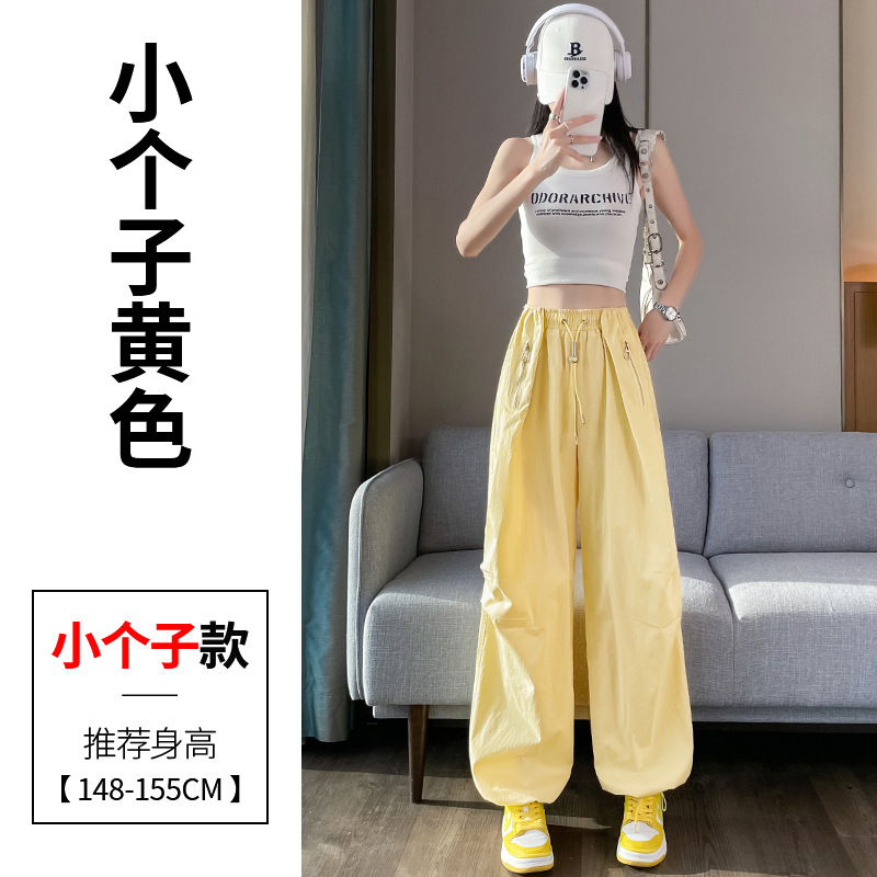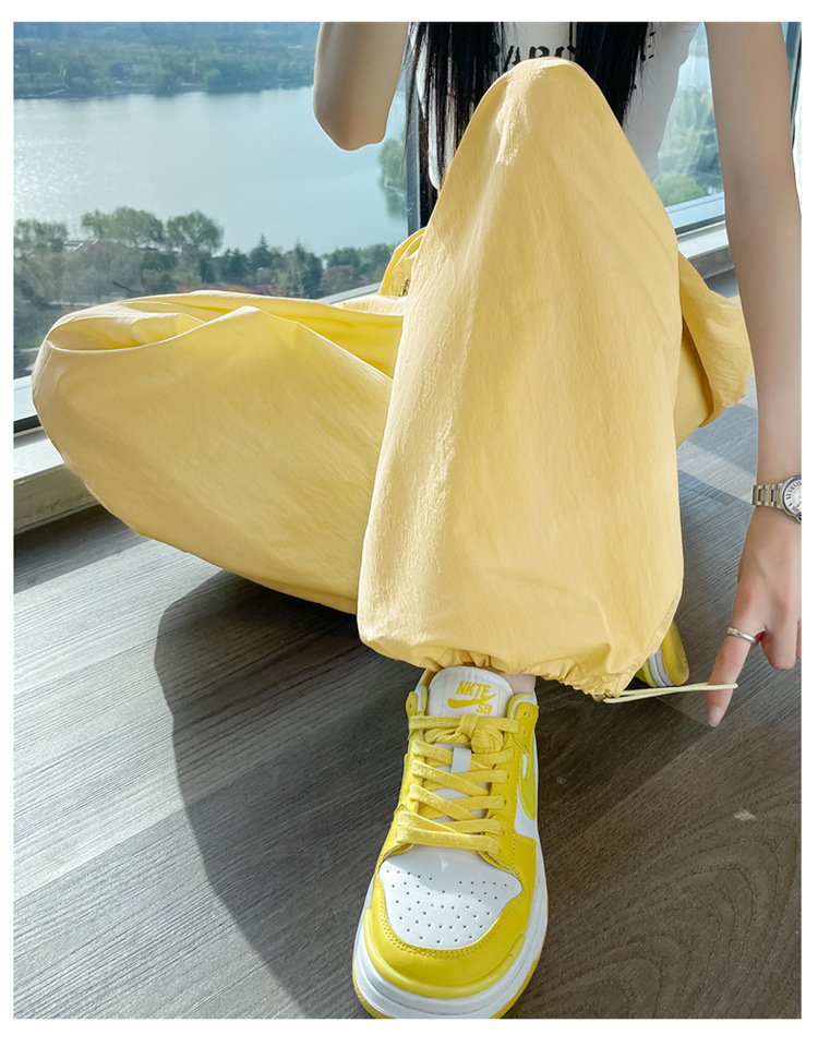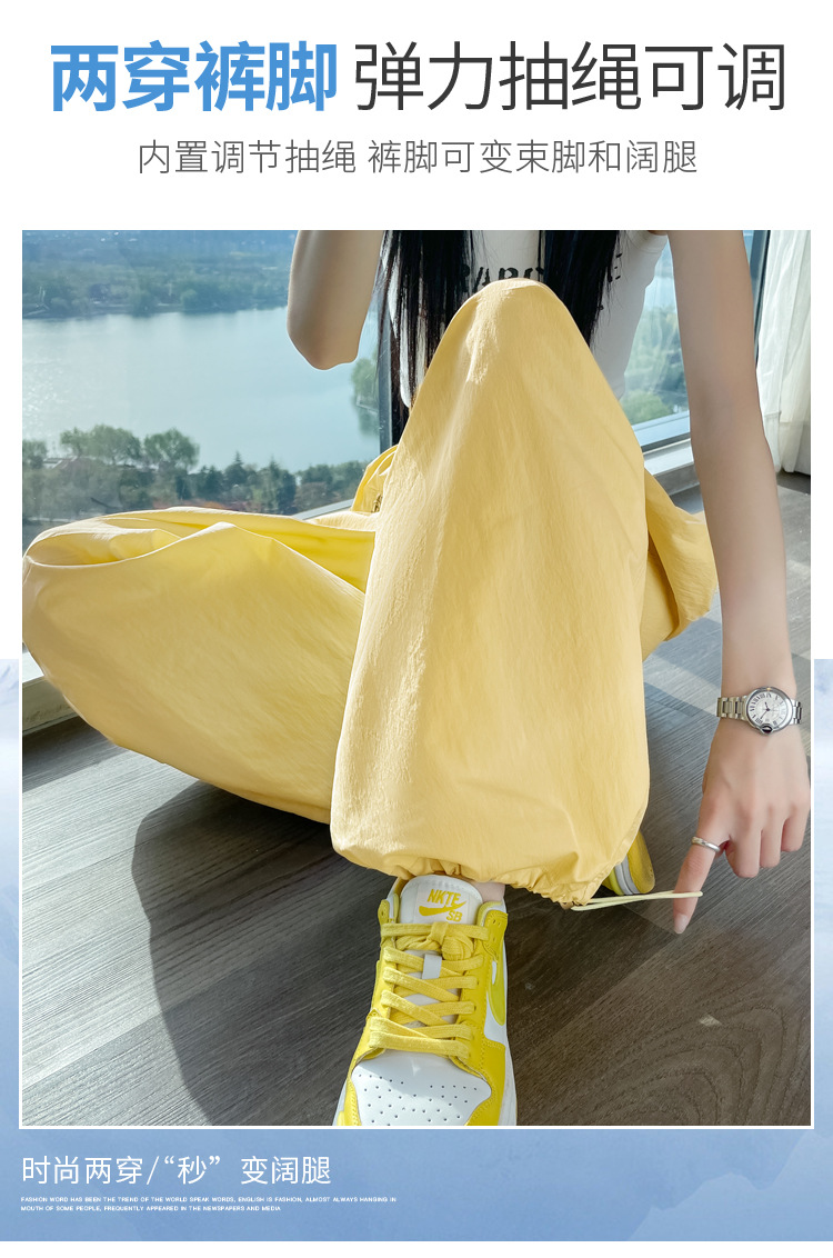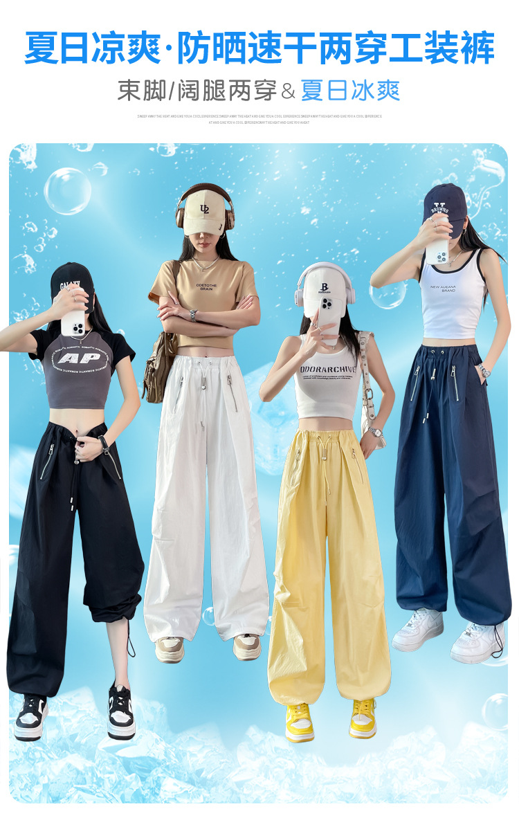 밀크 옐로우 아메리칸 스타일 툴링 바지 여성용 여름 얇은 짧은 충전 스포츠 빠른 건조 와이드 레그 등산 바지