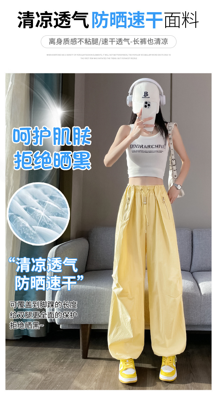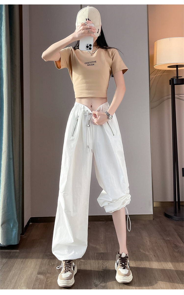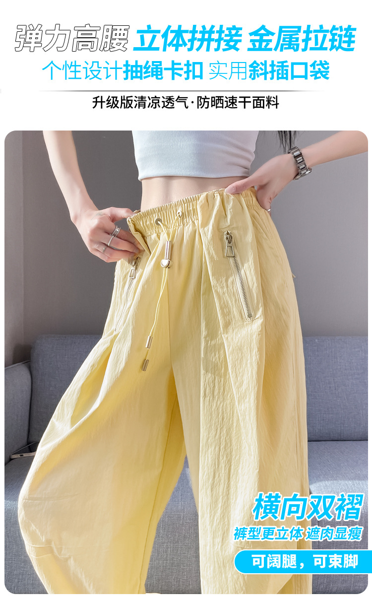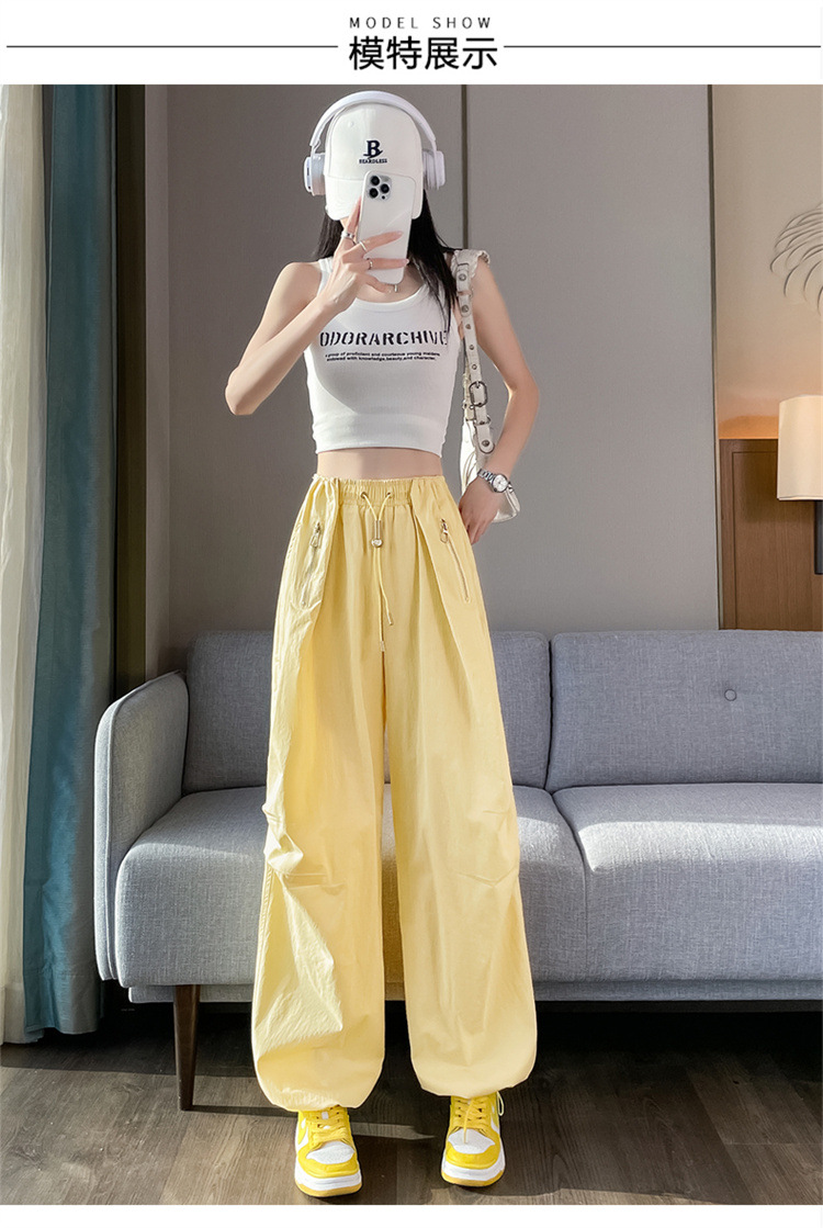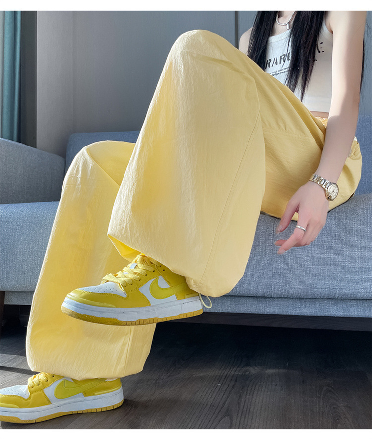 밀크 옐로우 아메리칸 스타일 툴링 바지 여성용 여름 얇은 짧은 충전 스포츠 빠른 건조 와이드 레그 등산 바지
