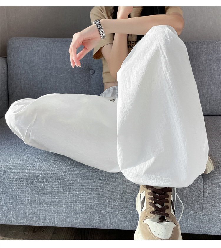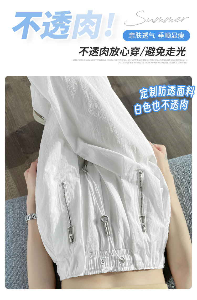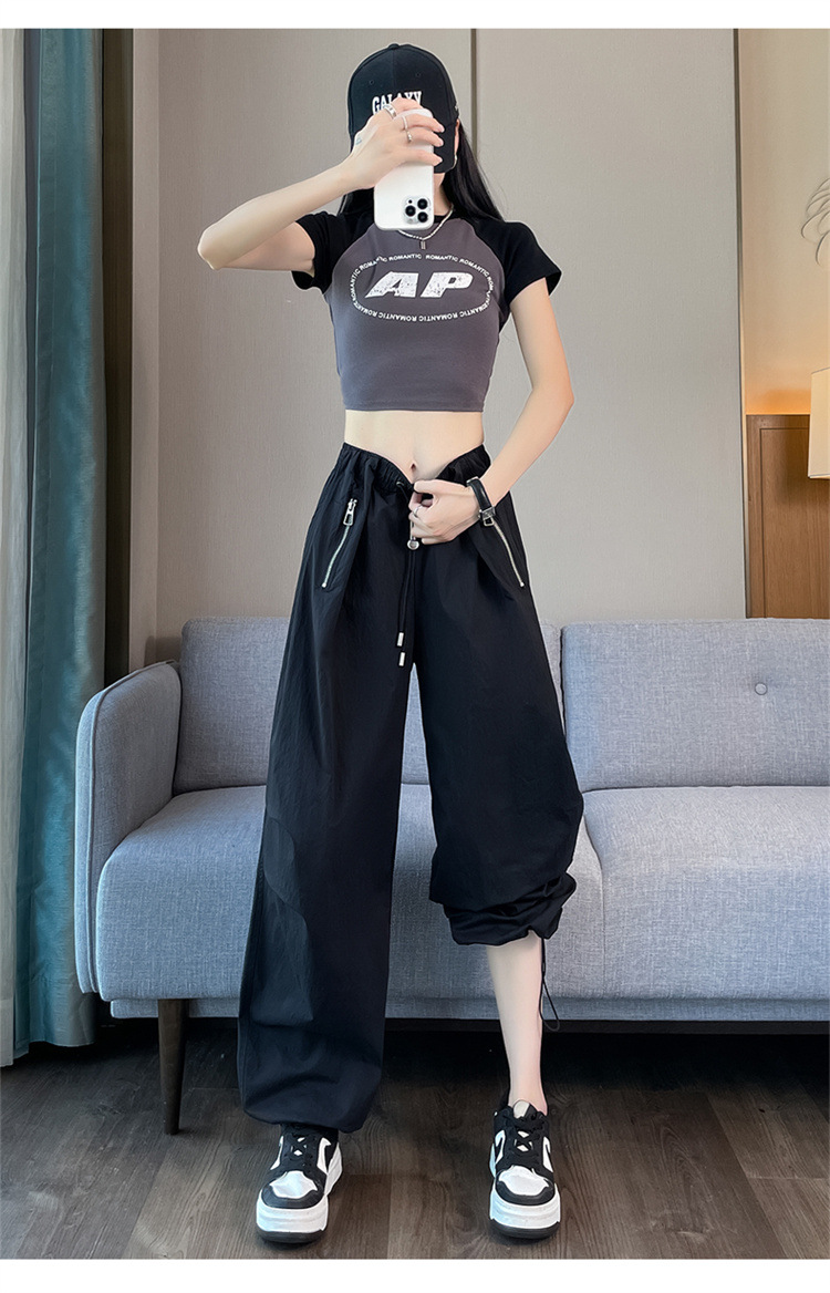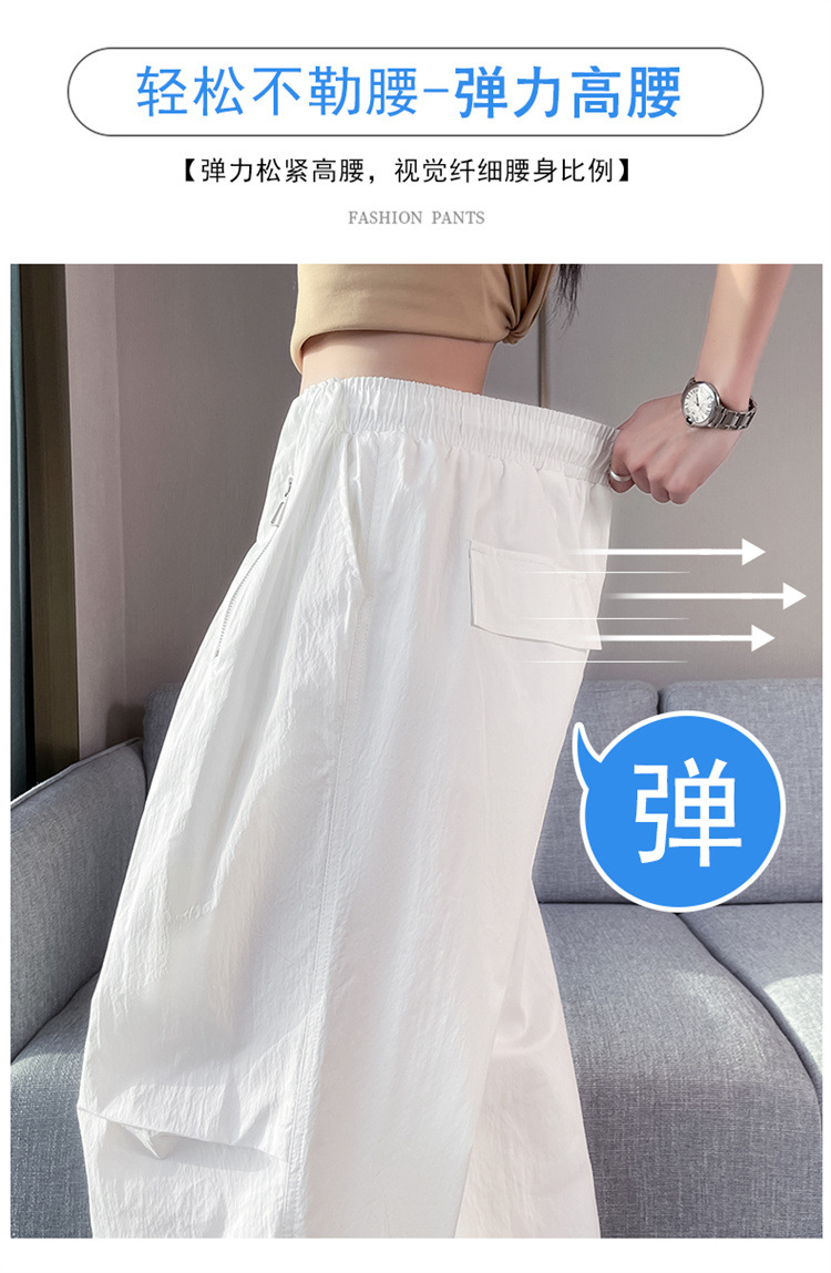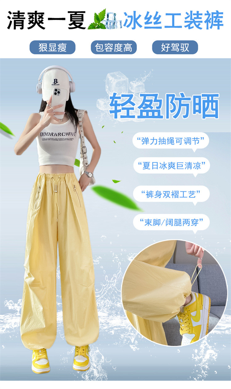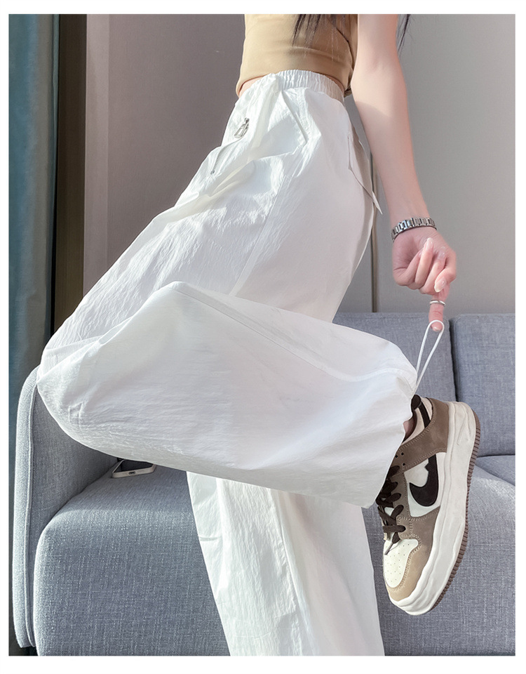 밀크 옐로우 아메리칸 스타일 툴링 바지 여성용 여름 얇은 짧은 충전 스포츠 빠른 건조 와이드 레그 등산 바지