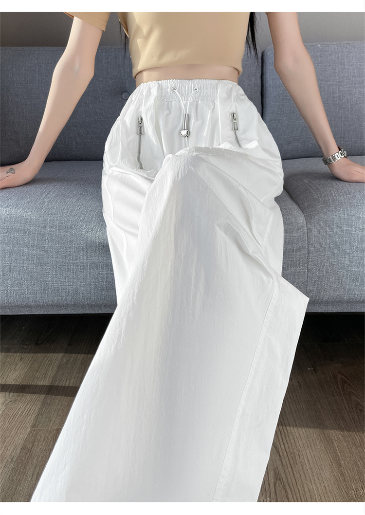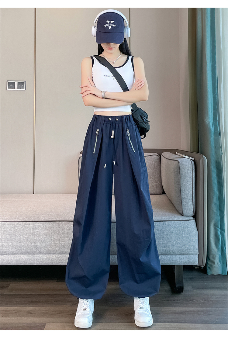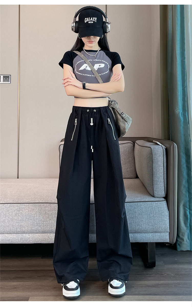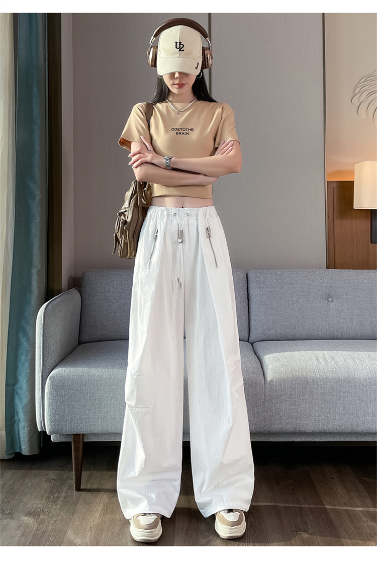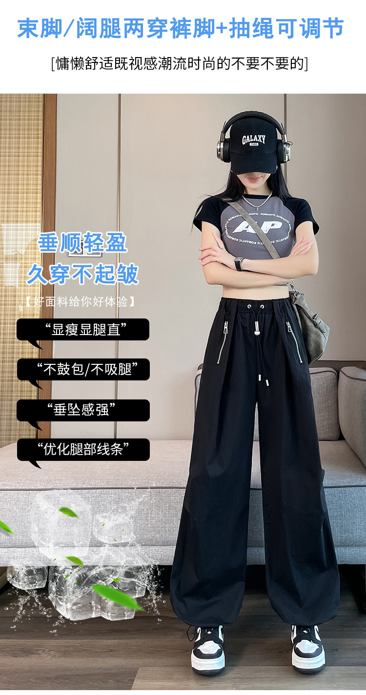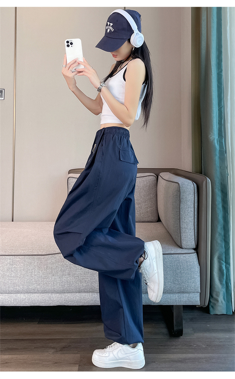 밀크 옐로우 아메리칸 스타일 툴링 바지 여성용 여름 얇은 짧은 충전 스포츠 빠른 건조 와이드 레그 등산 바지