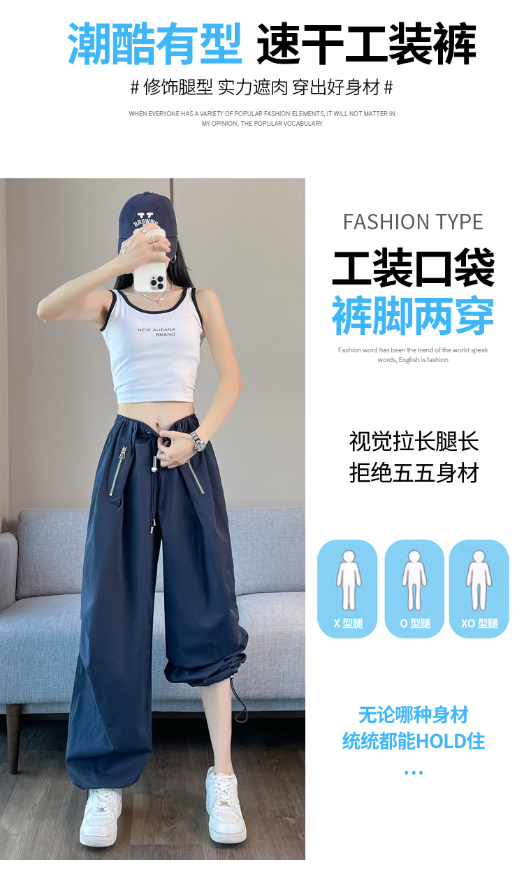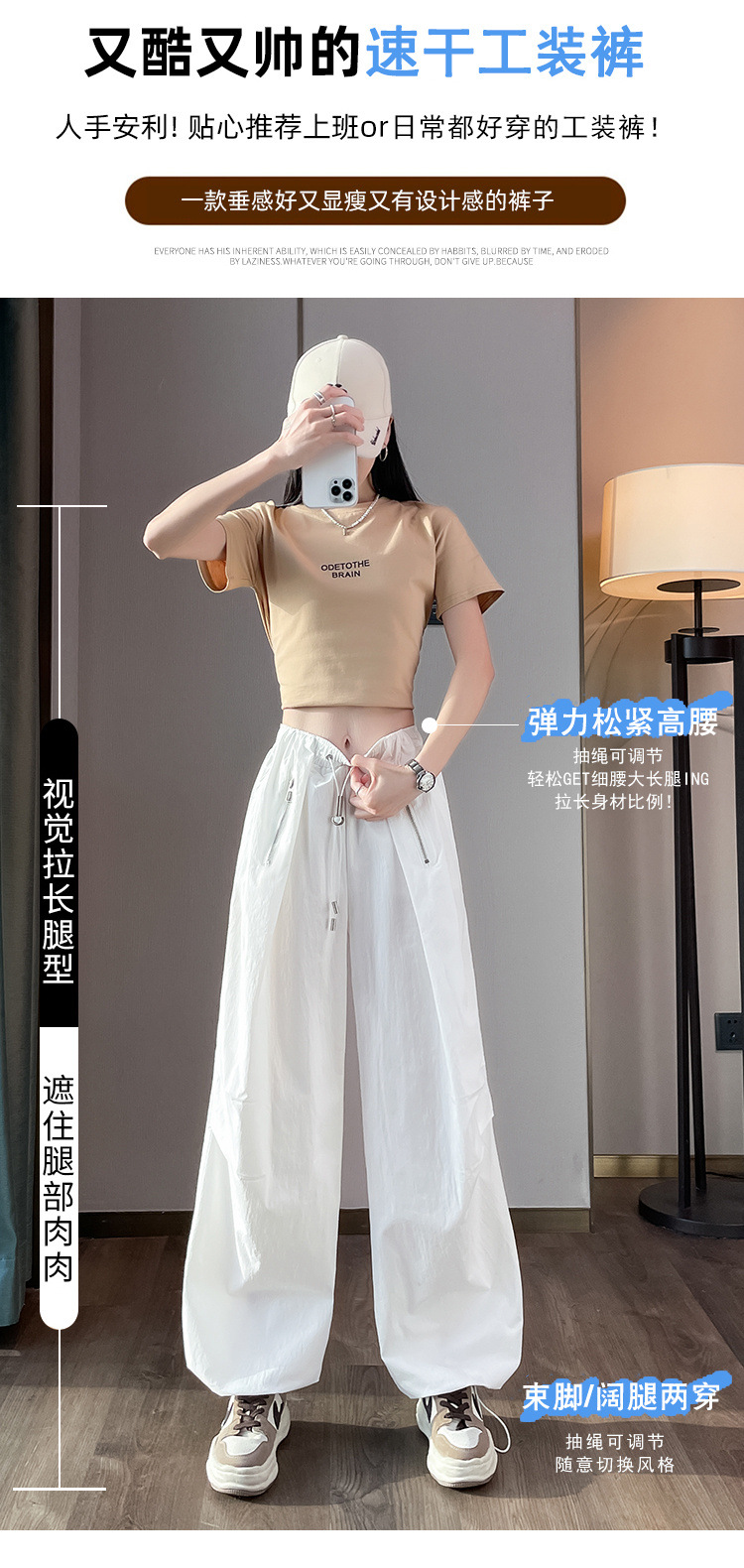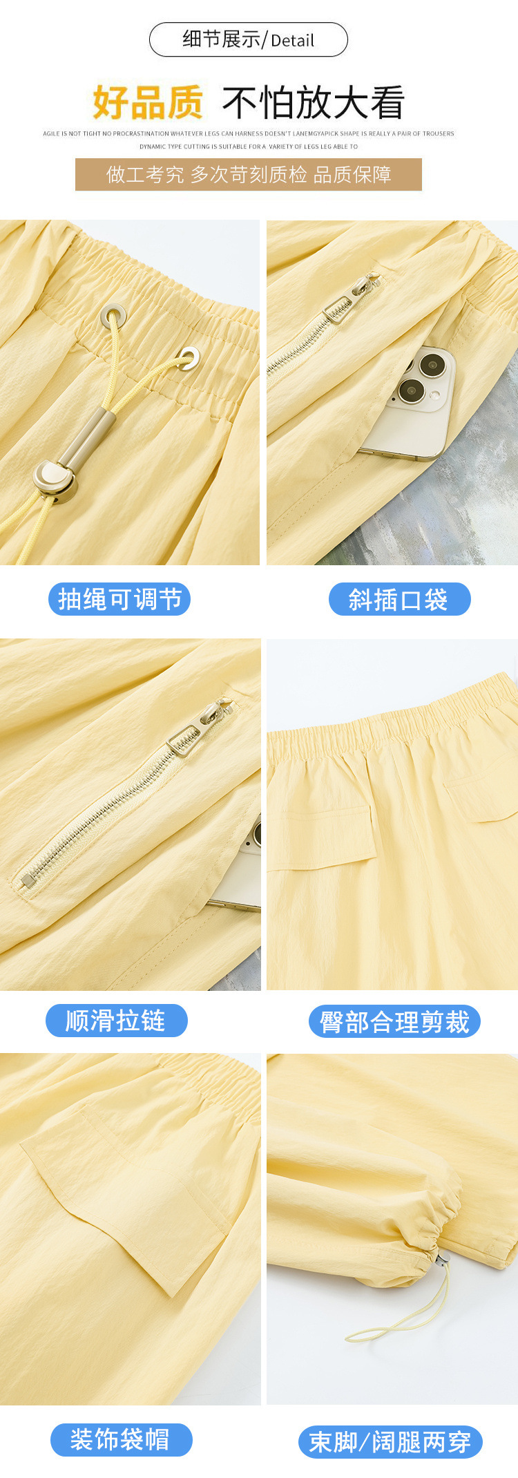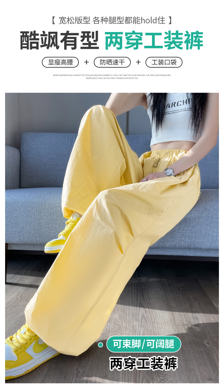 밀크 옐로우 아메리칸 스타일 툴링 바지 여성용 여름 얇은 짧은 충전 스포츠 빠른 건조 와이드 레그 등산 바지스토어 가기