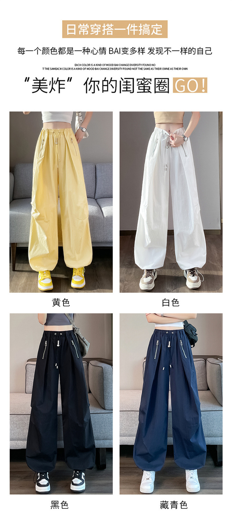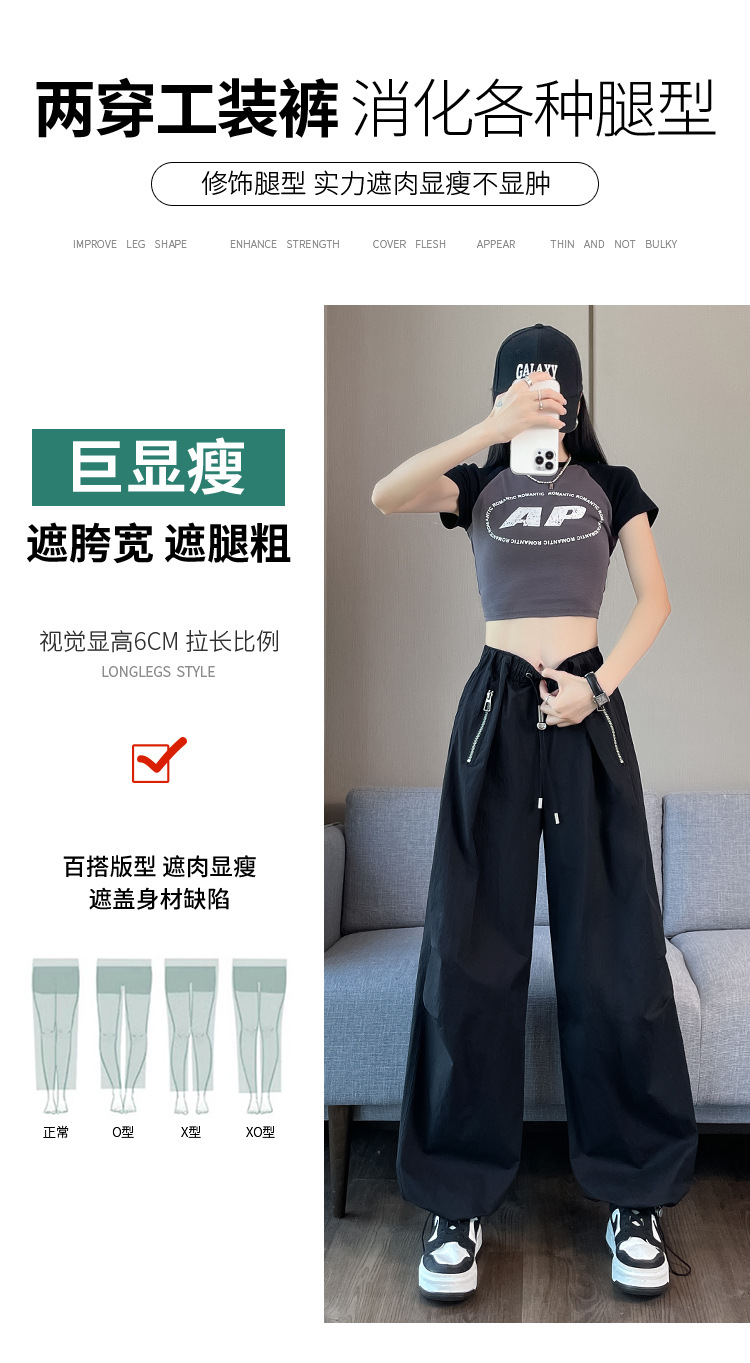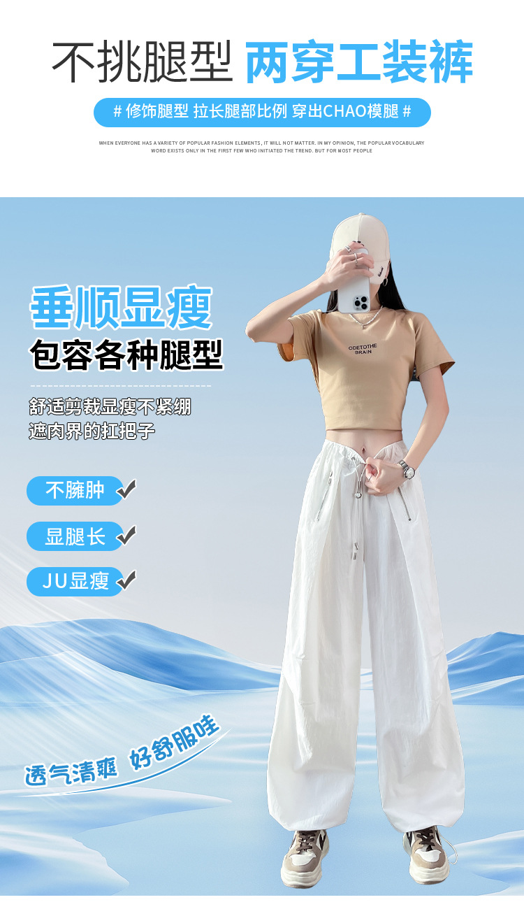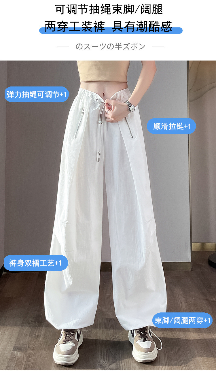 밀크 옐로우 아메리칸 스타일 툴링 바지 여성용 여름 얇은 짧은 충전 스포츠 빠른 건조 와이드 레그 등산 바지스토어 가기