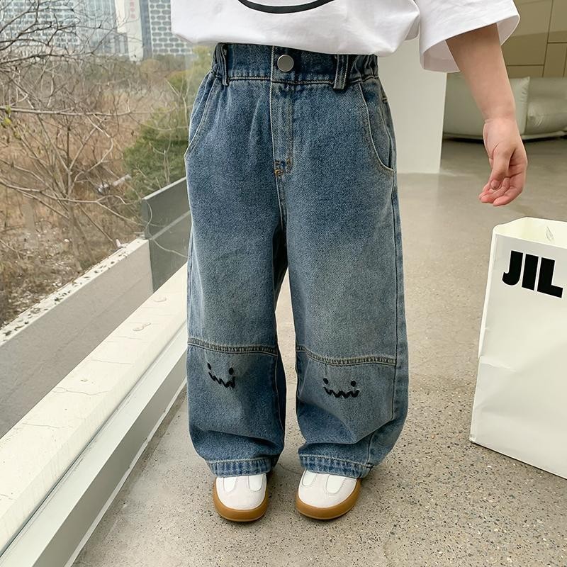 여아 스타일 데님 와이드 팬츠 2024 봄 가을 새로운 스타일 한국식 루즈 캐주얼 스트레이트 팬츠 중소형 여아용스토어 가기
