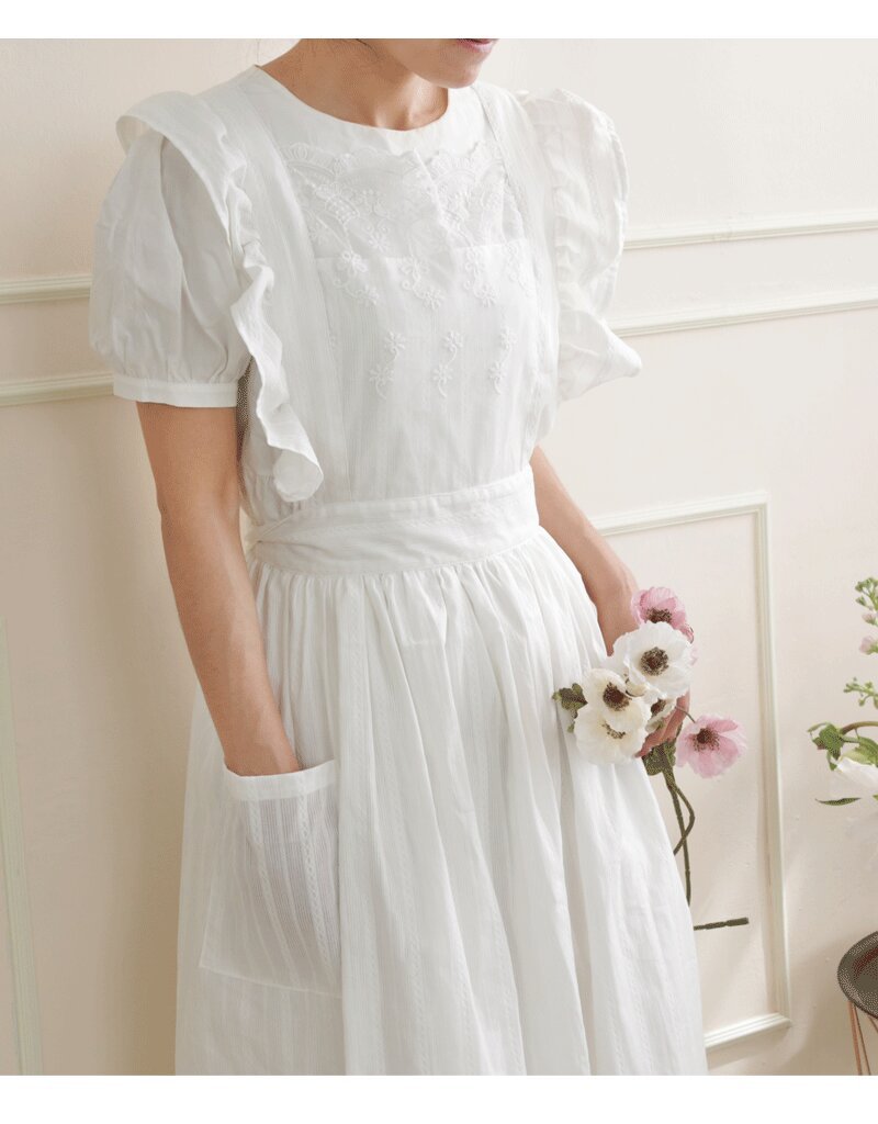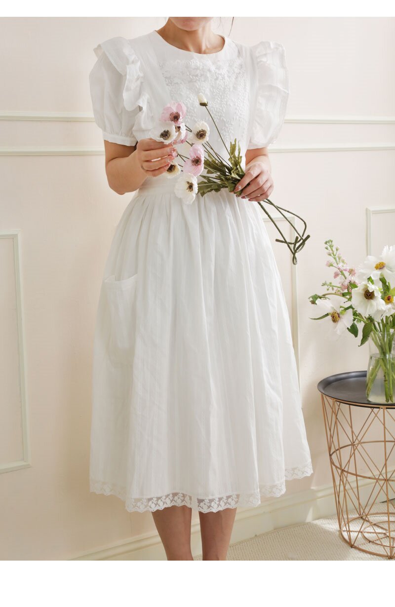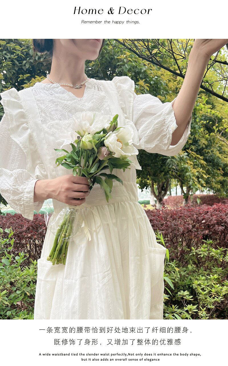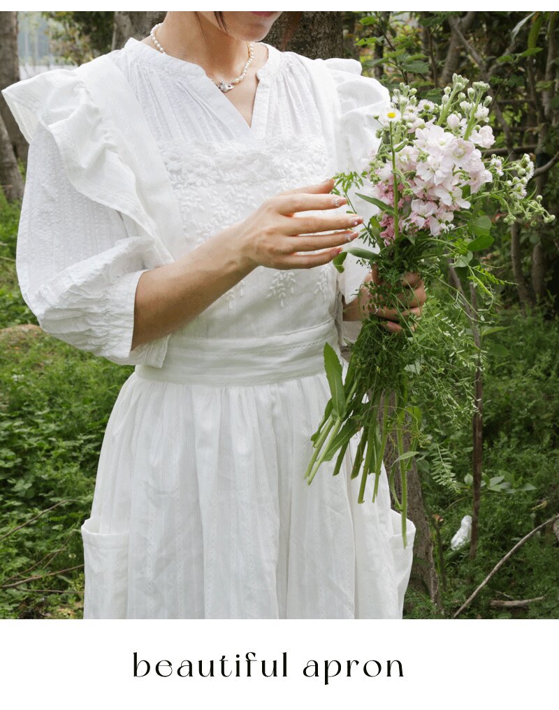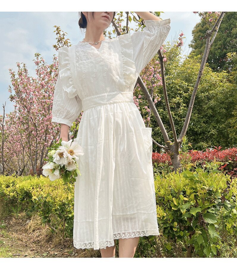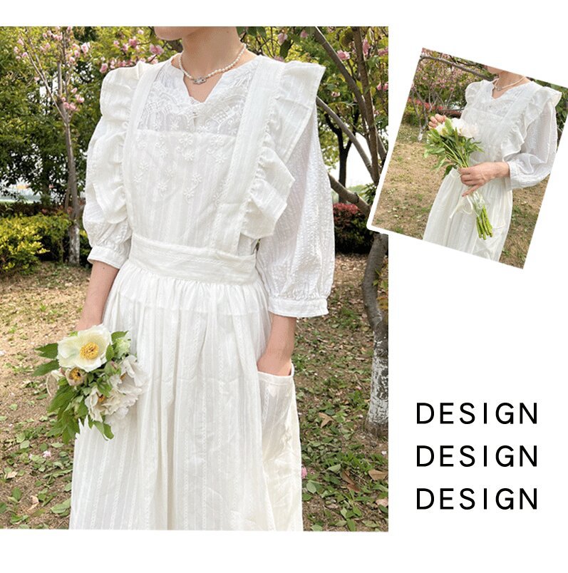 코튼 프렌치 스타일 빈티지 Ins 러플 레이스 에이프론 로리타 롱 레이스 커버 원피스 식물 재배 커피 숍 와이