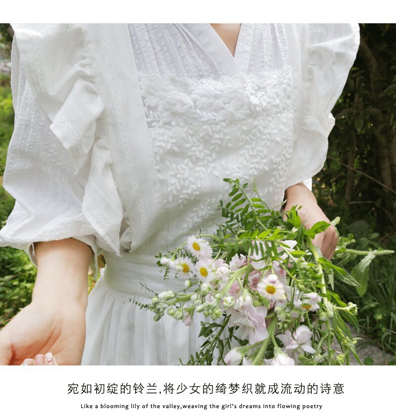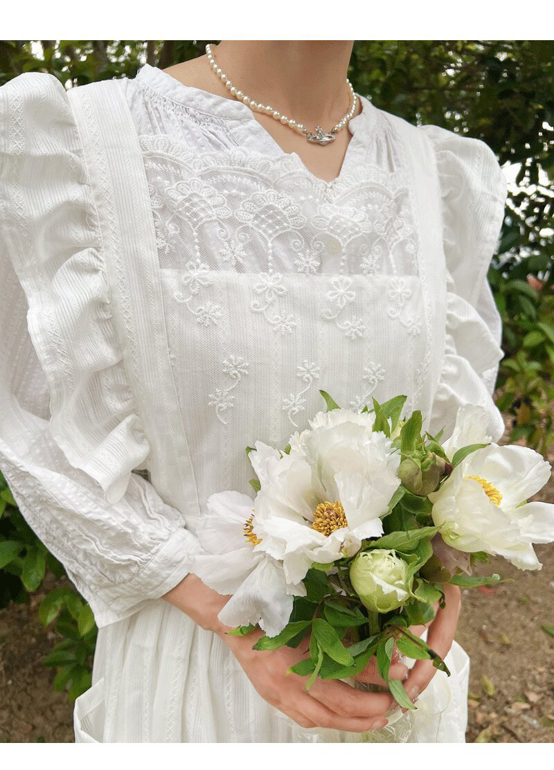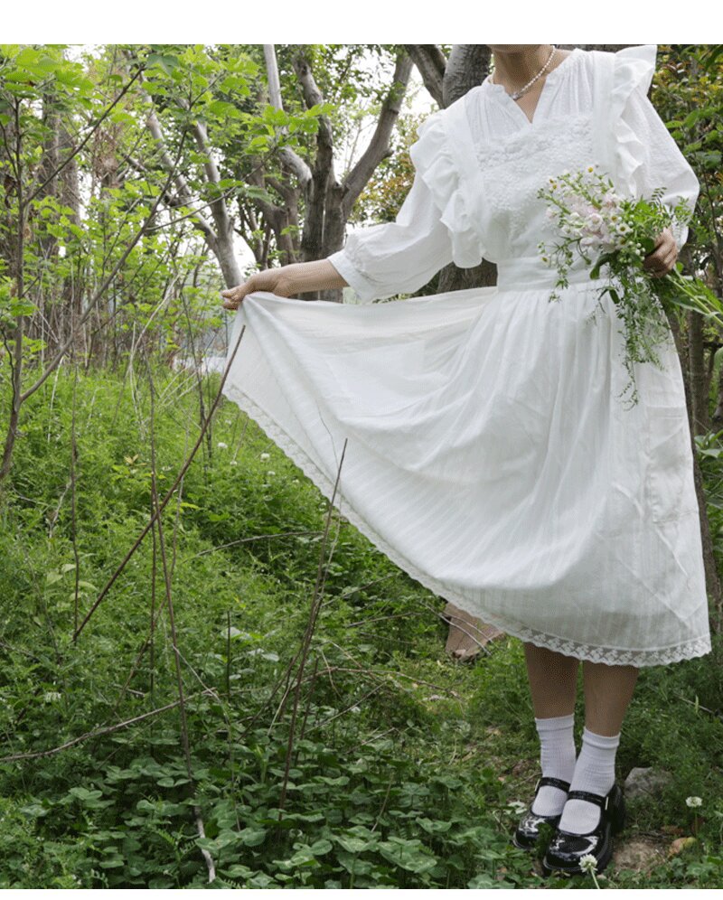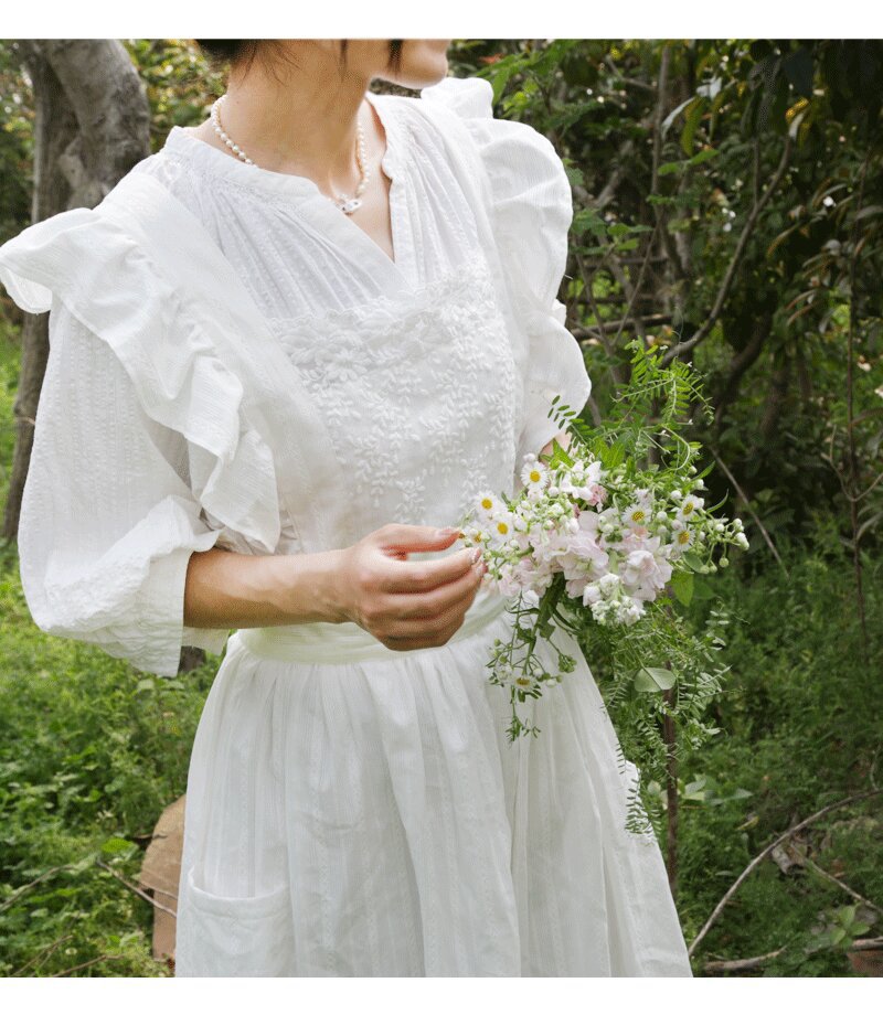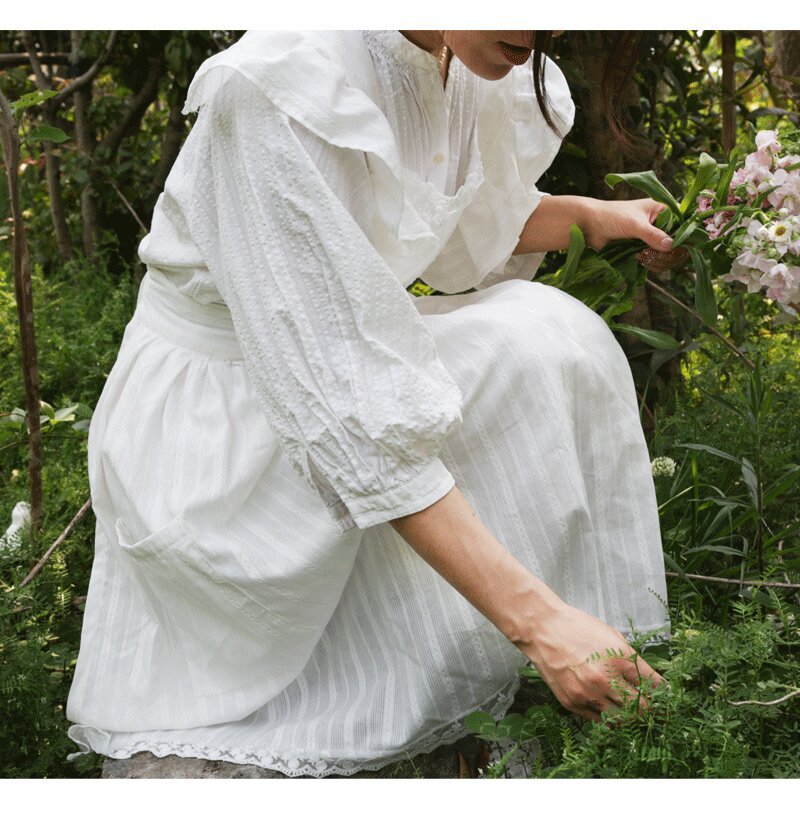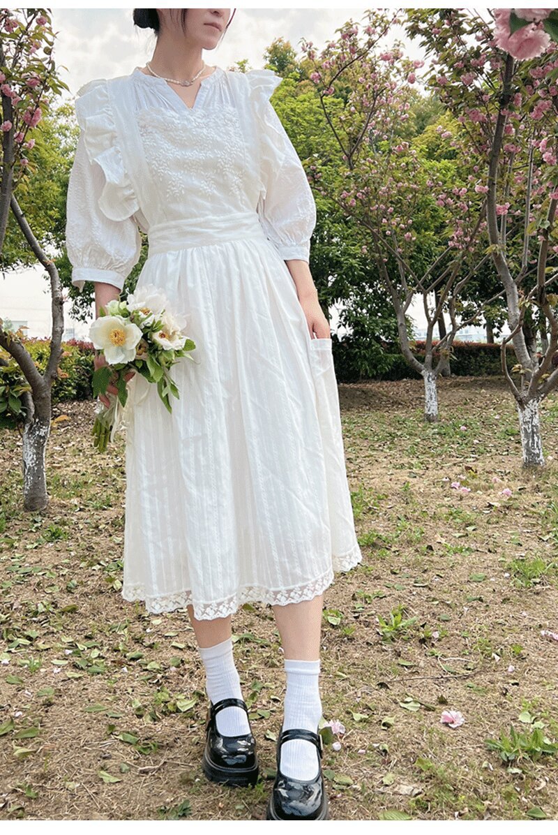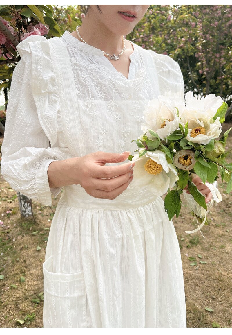 코튼 프렌치 스타일 빈티지 Ins 러플 레이스 에이프론 로리타 롱 레이스 커버 원피스 식물 재배 커피 숍 와이