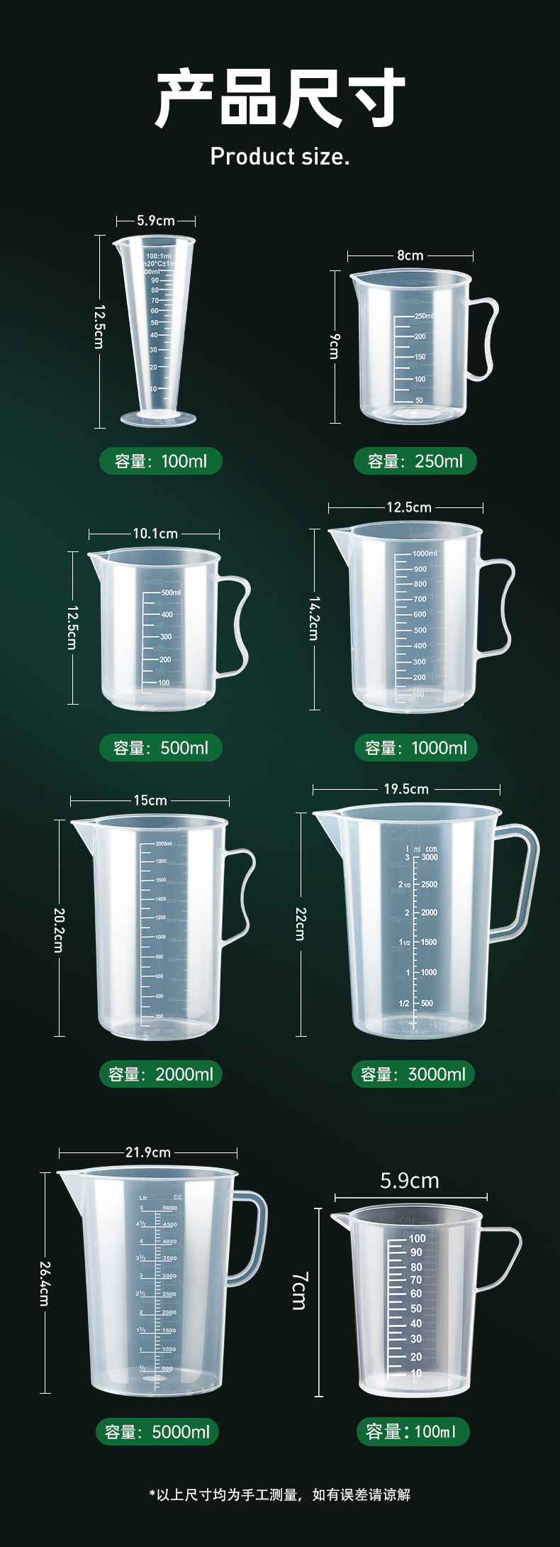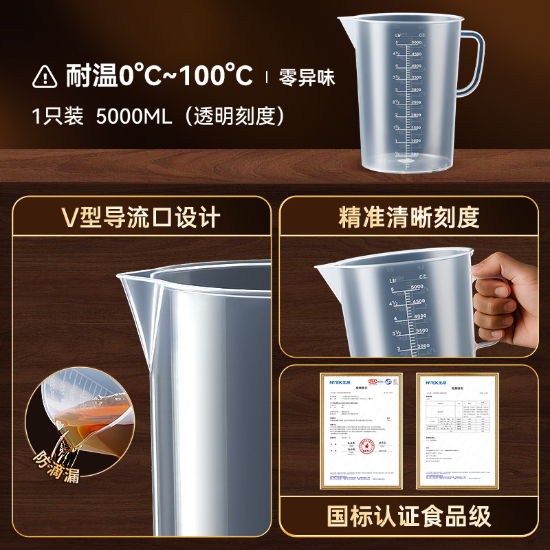 소형 측정 컵이있는 플라스틱 측정 컵 핸들 식품 등급 측정 배럴 대용량 5000 컵 규모 플라스틱 컵스토어 가기