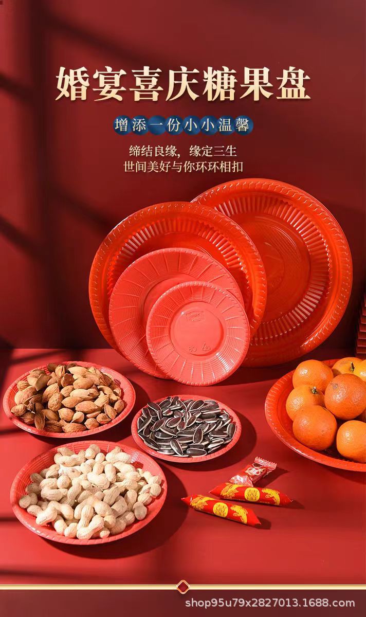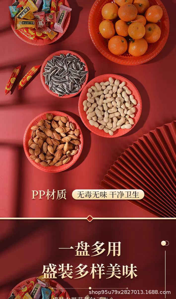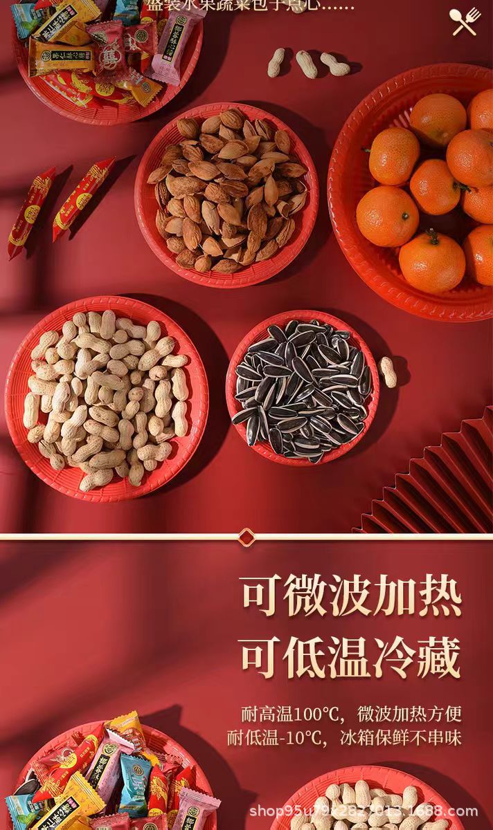 새해 견과류 대량 사탕 멜론 씨앗 디너 일회용 접시 빨간색 결혼식 축하 과일 접시스토어 가기