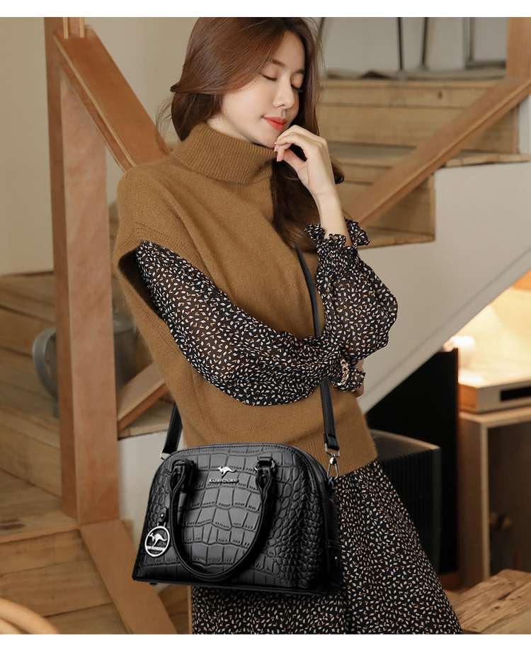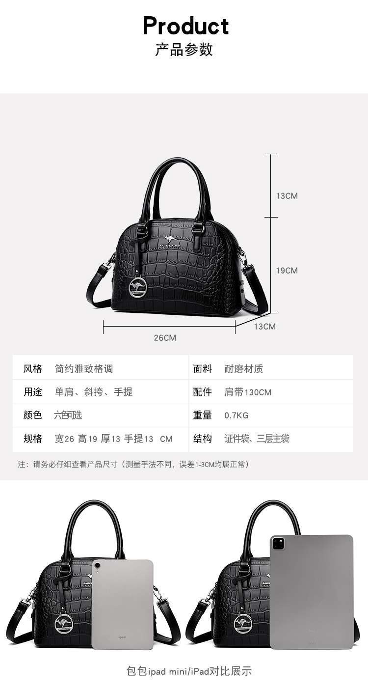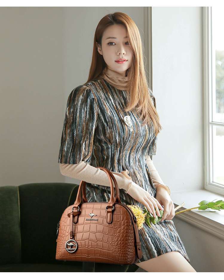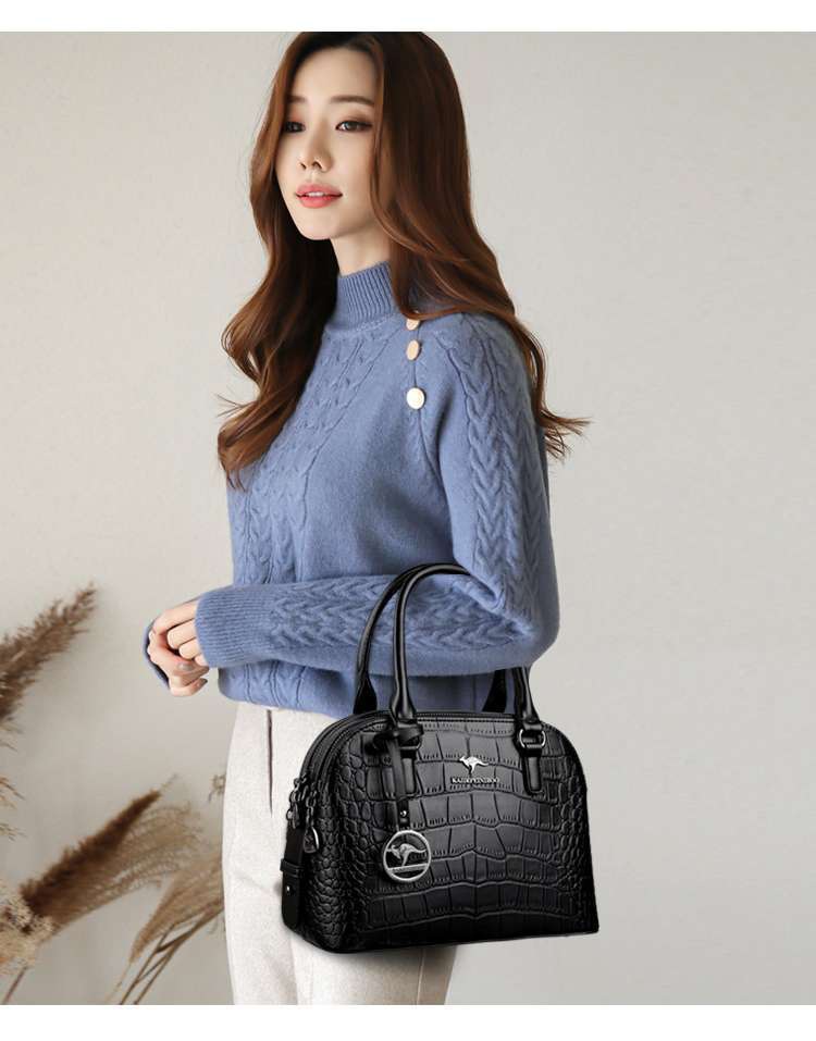 질감 있는 악어 패턴 핸드백 2024 새로운 유럽과 미국의 패션 보스턴 여성 가방 다층 싱글 숄더 크로스 바디 백스토어 가기