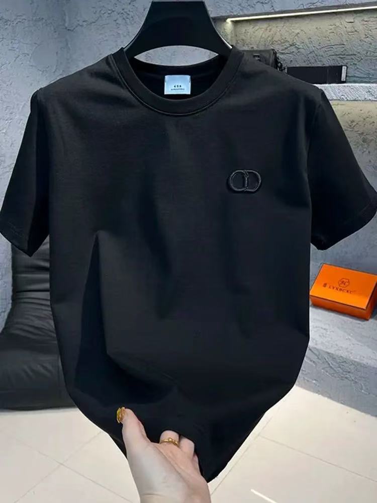 여름 뉴 남성 티셔츠 네트 에디션 스몰 라벨 패셔너블 반팔 크루 넥 자수 티셔츠 올 매치 솔리드 컬러 남성 반팔 티셔츠